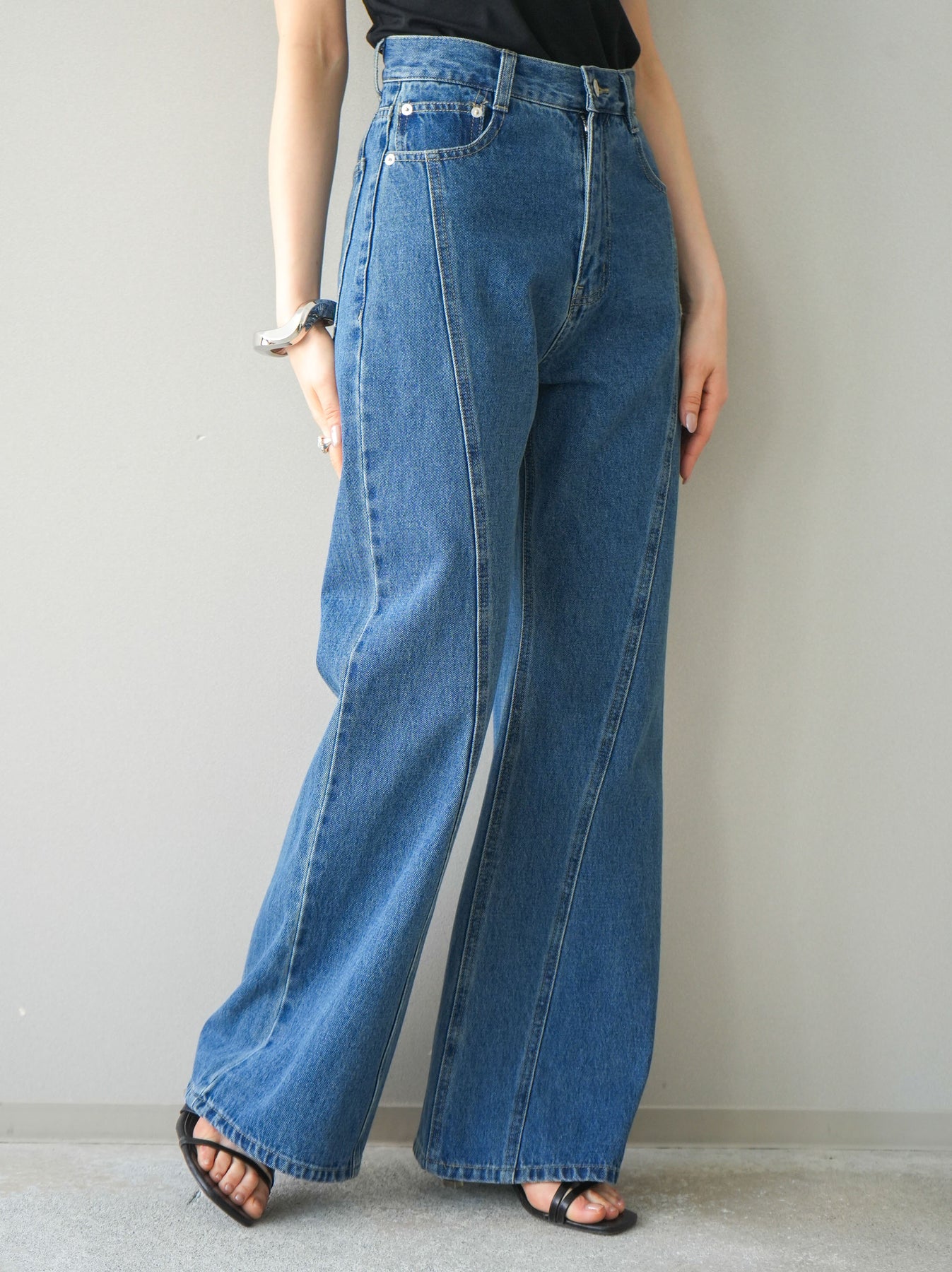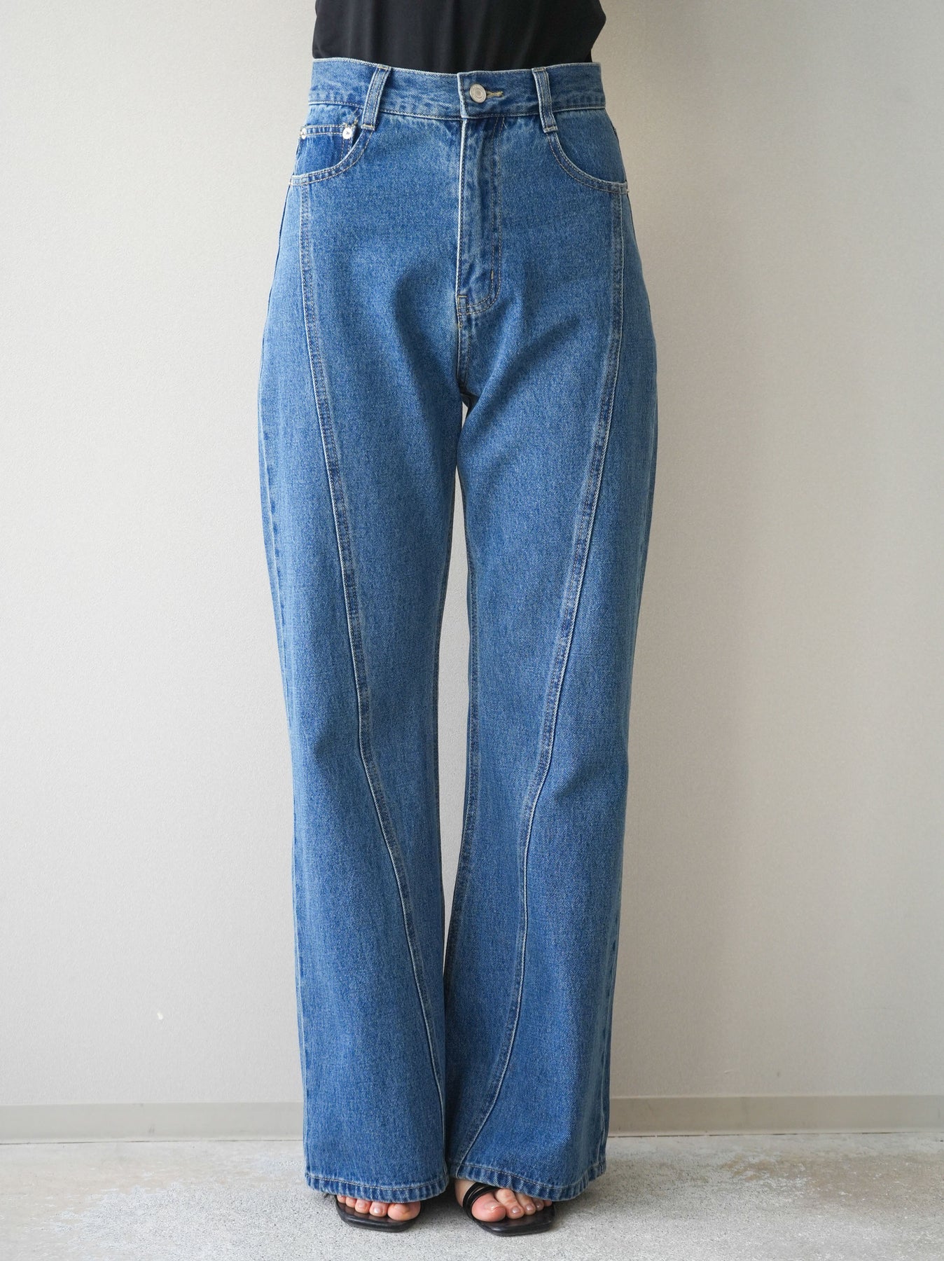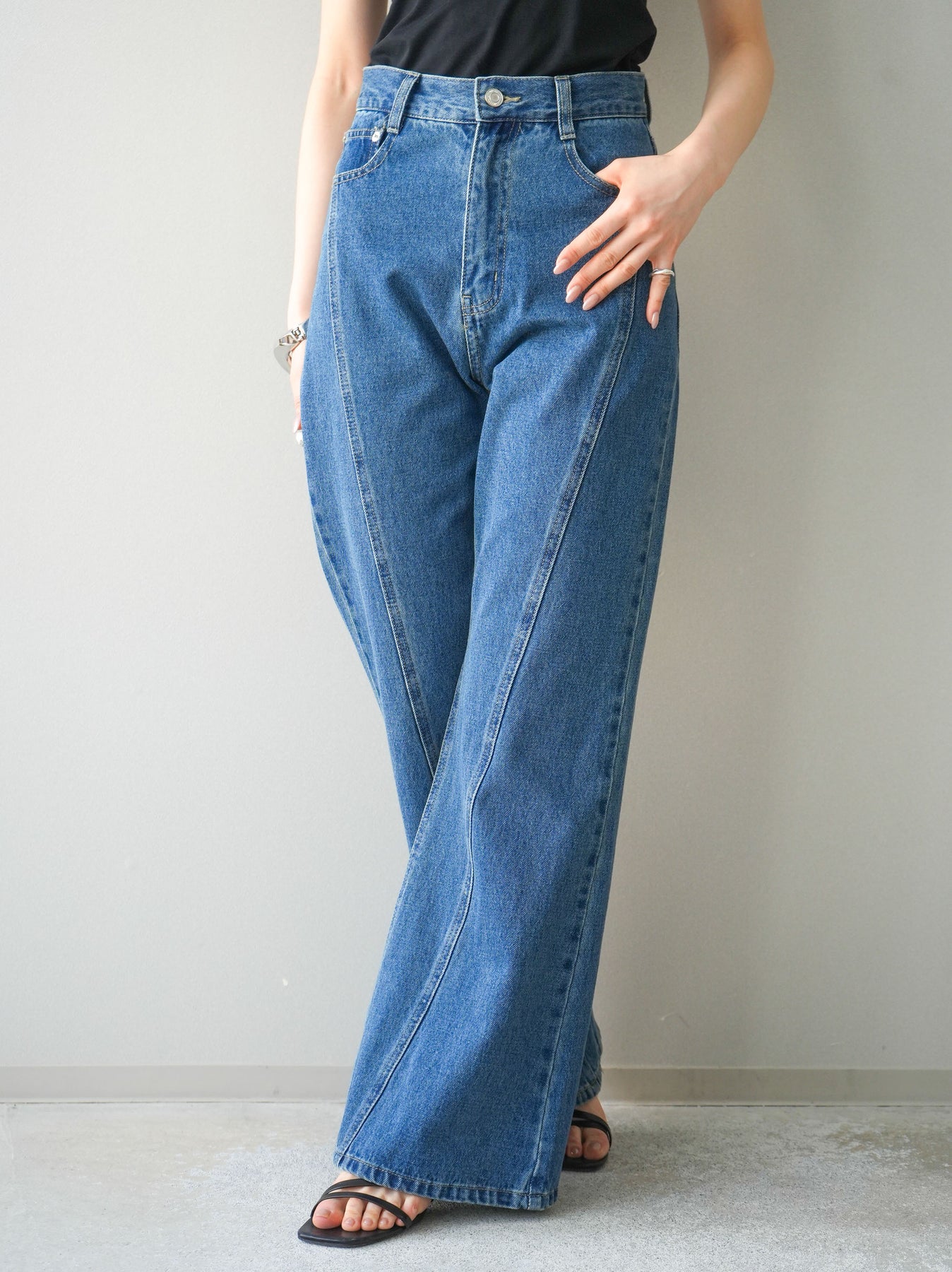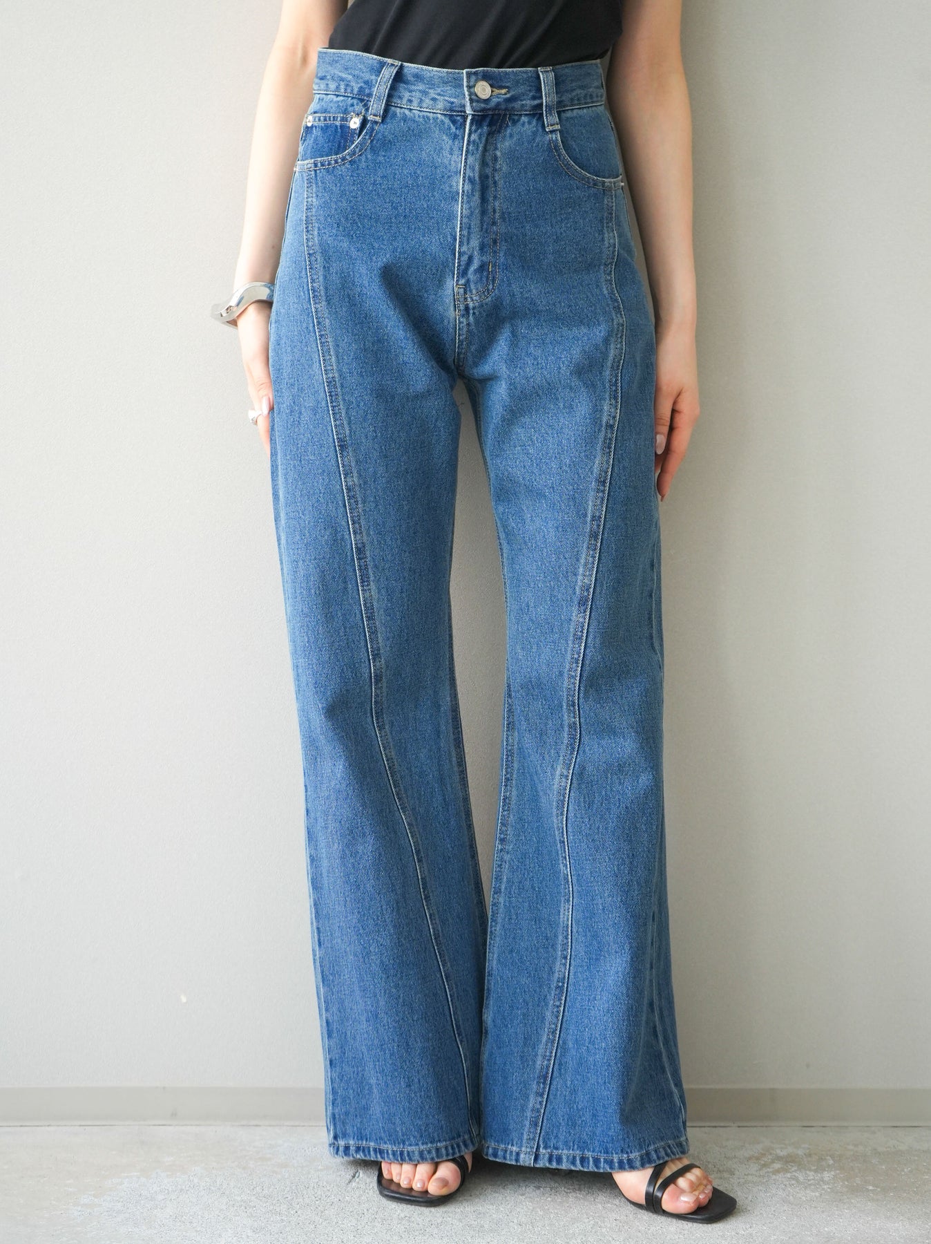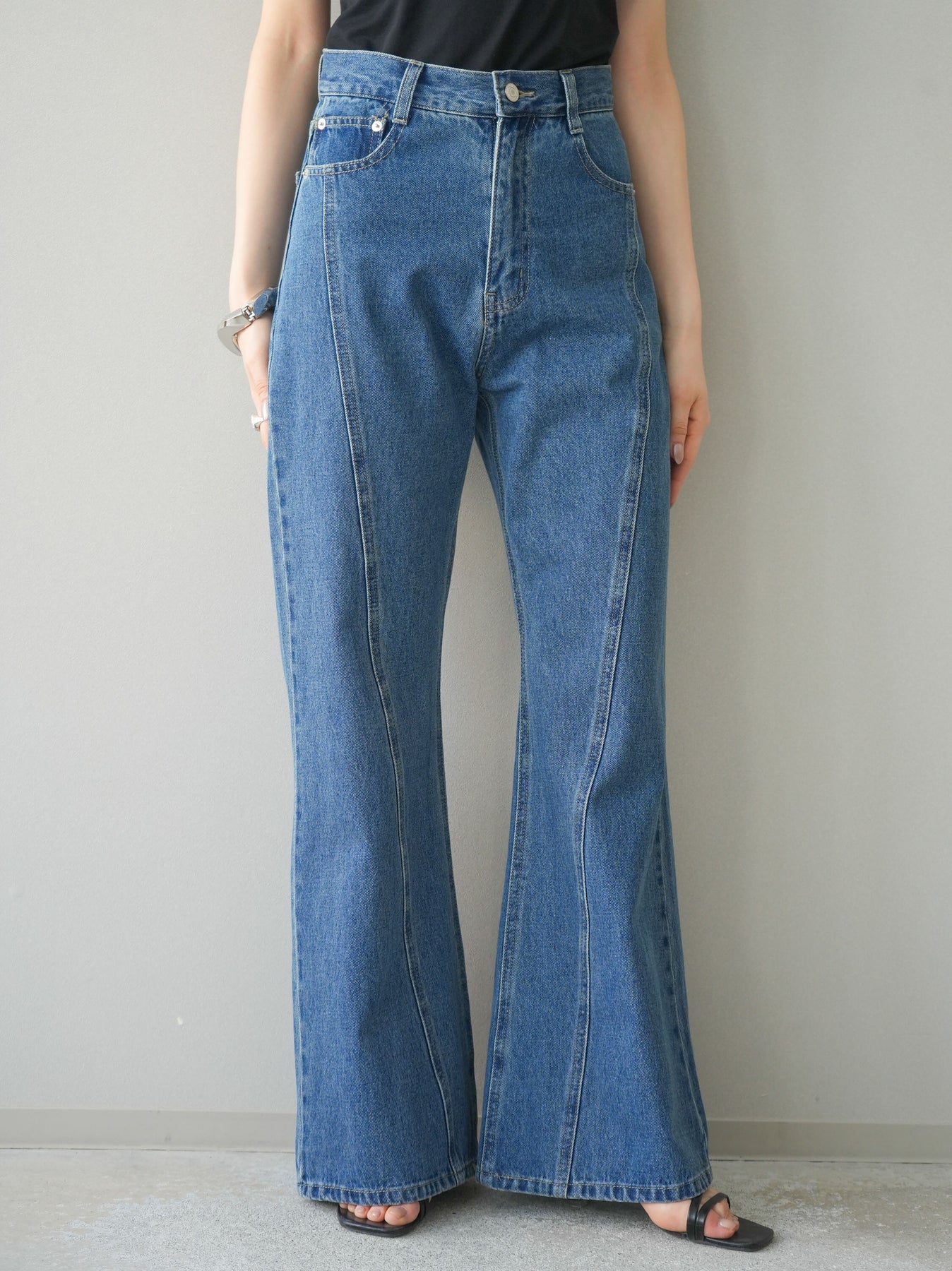 [予約]サイドラインフレアデニムパンツ/blue