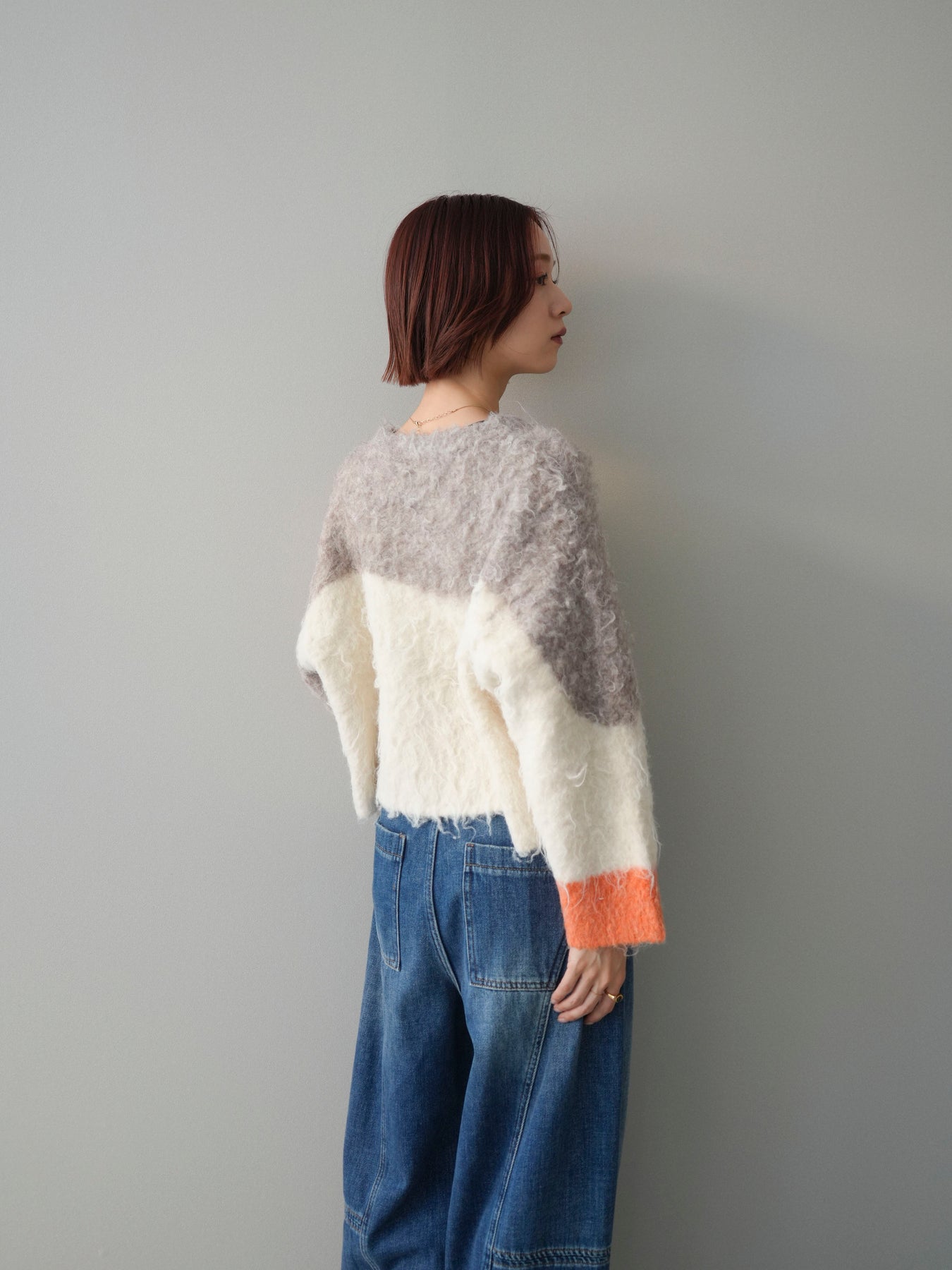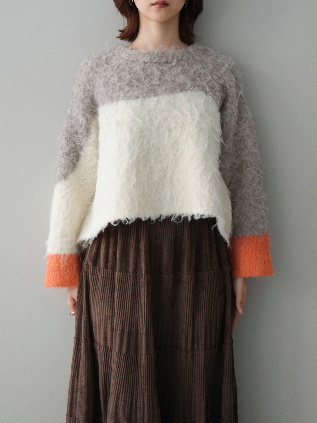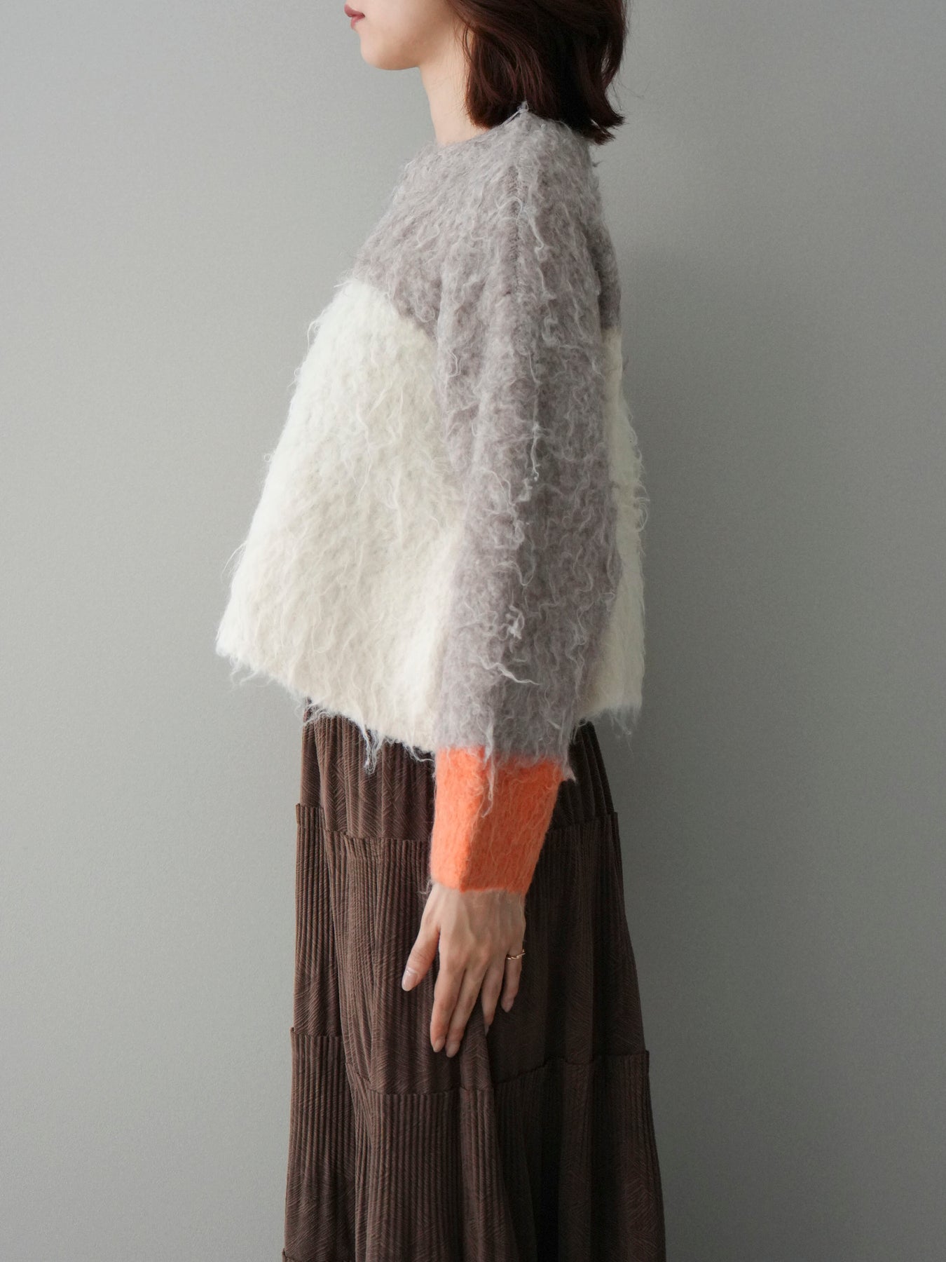 [予約]バイカラーモヘアタッチニットプルオーバー/mocha