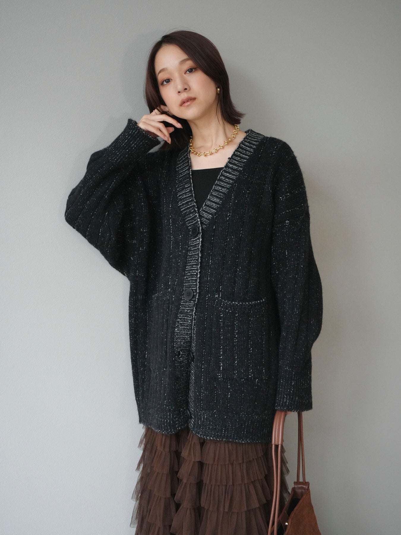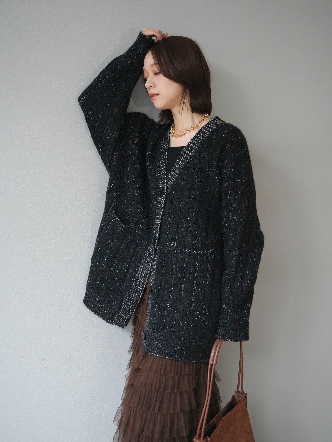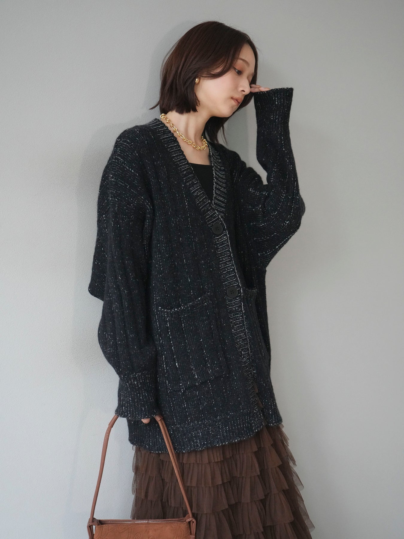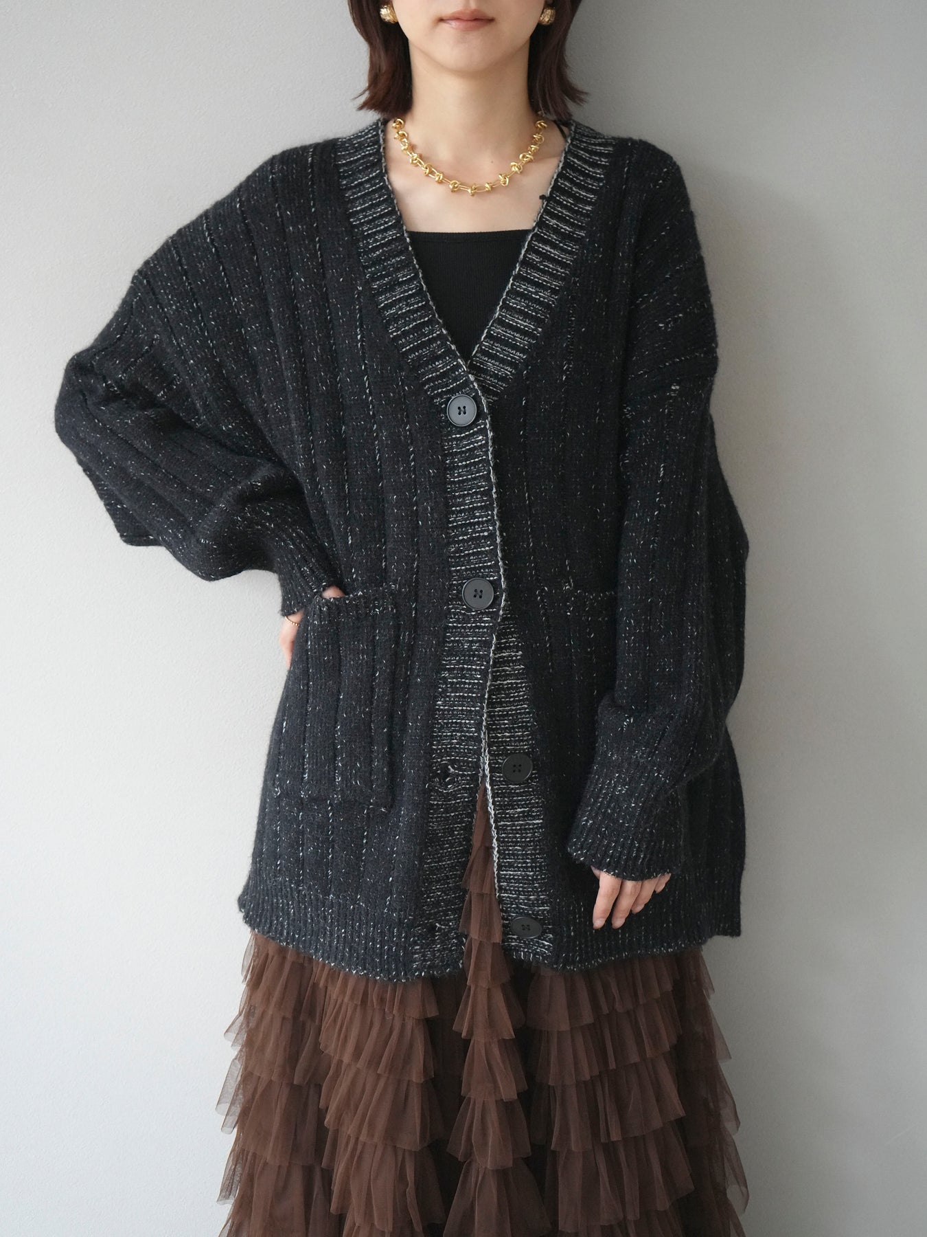 [予約]プレーティングオーバーニットカーディガン/black