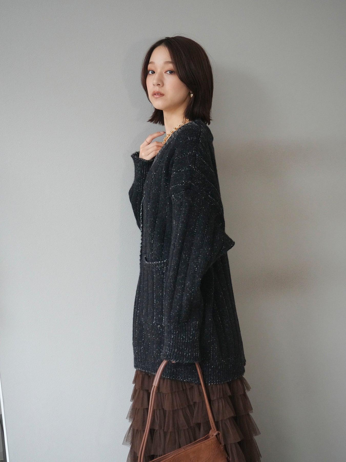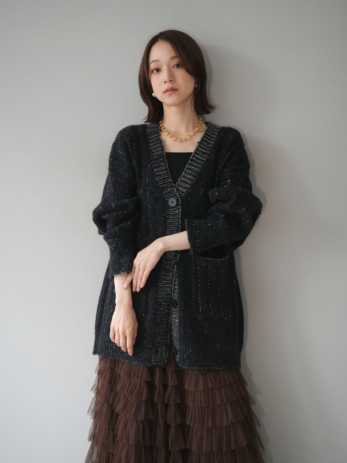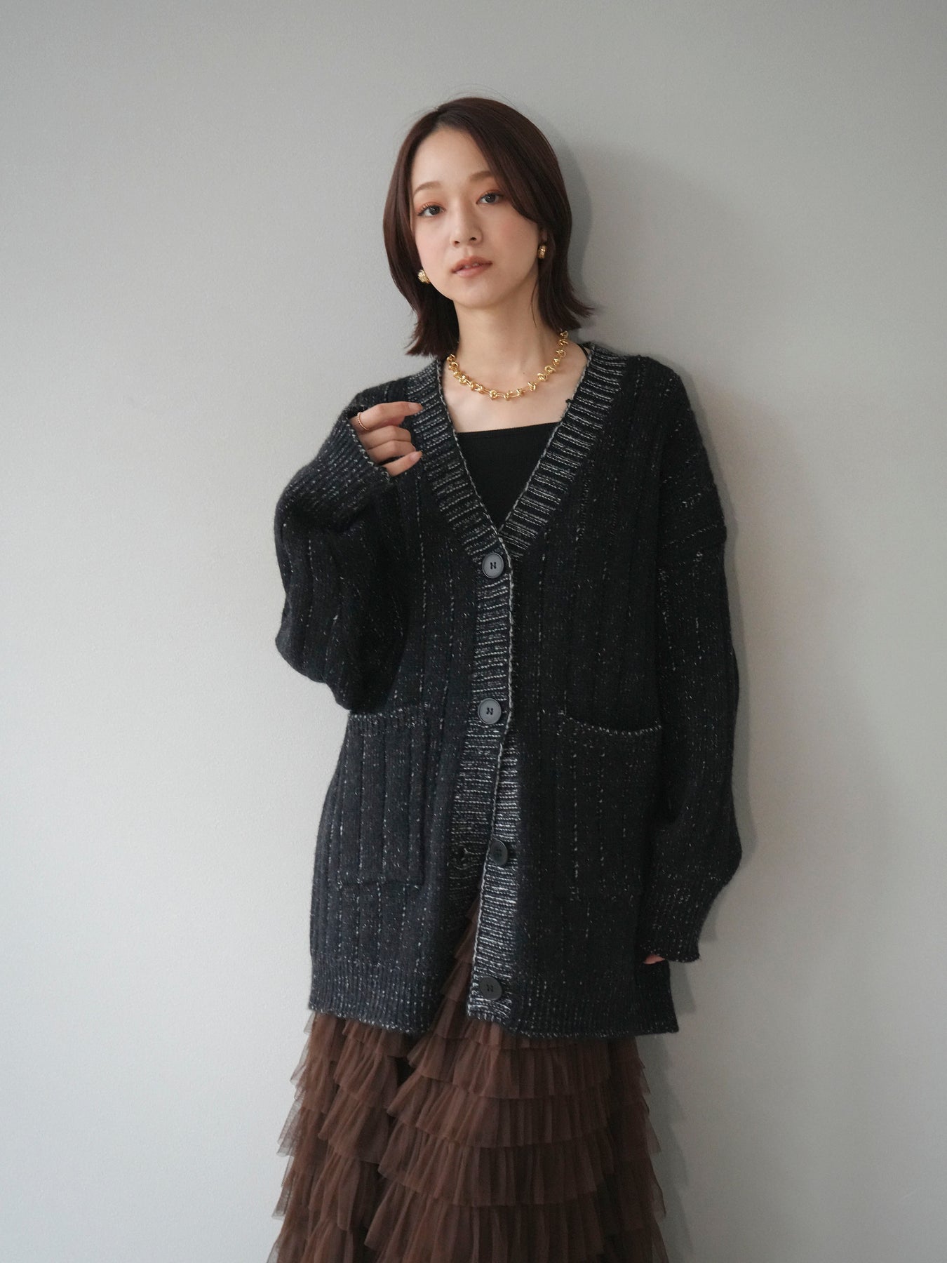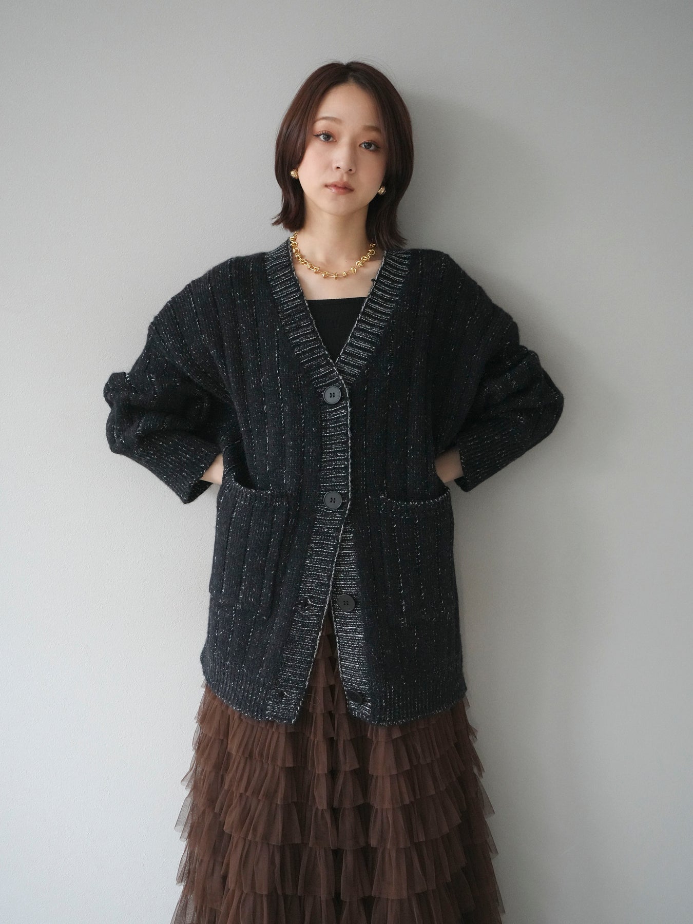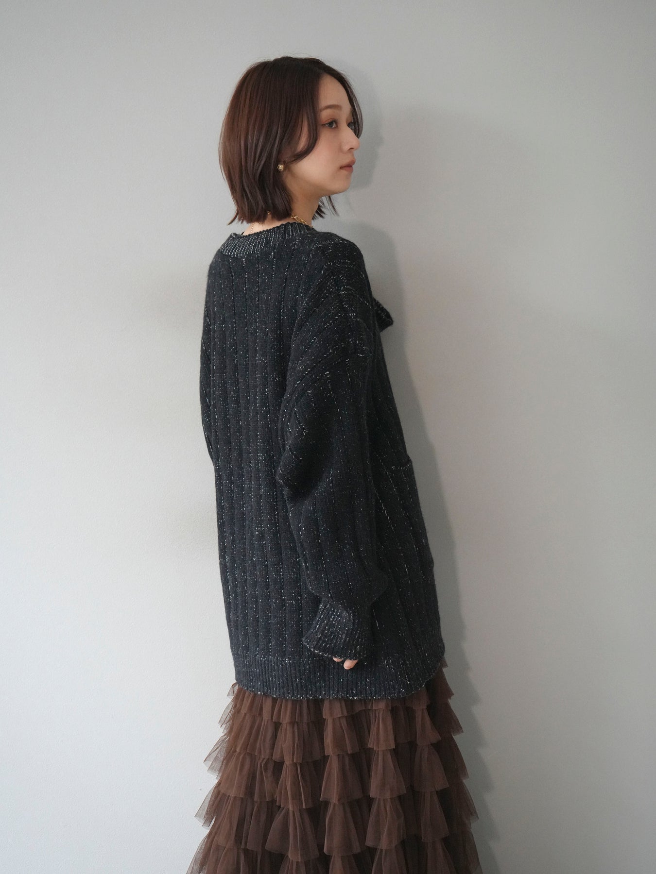 [予約]プレーティングオーバーニットカーディガン/black