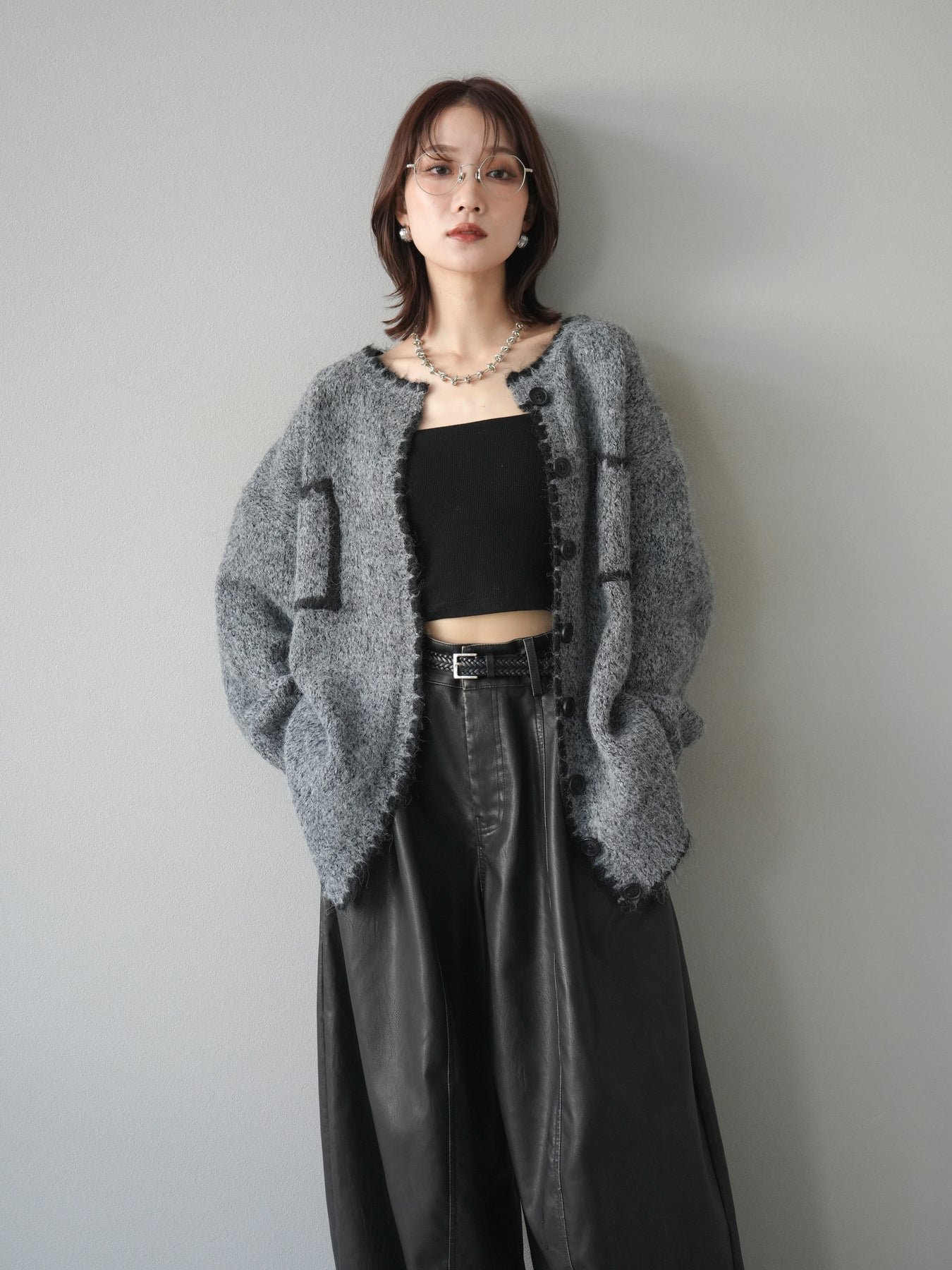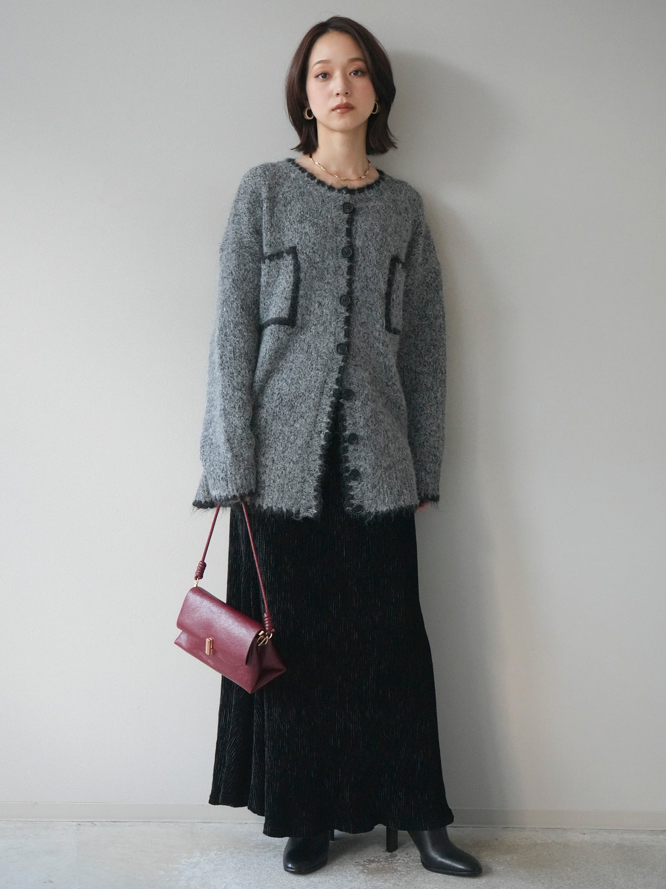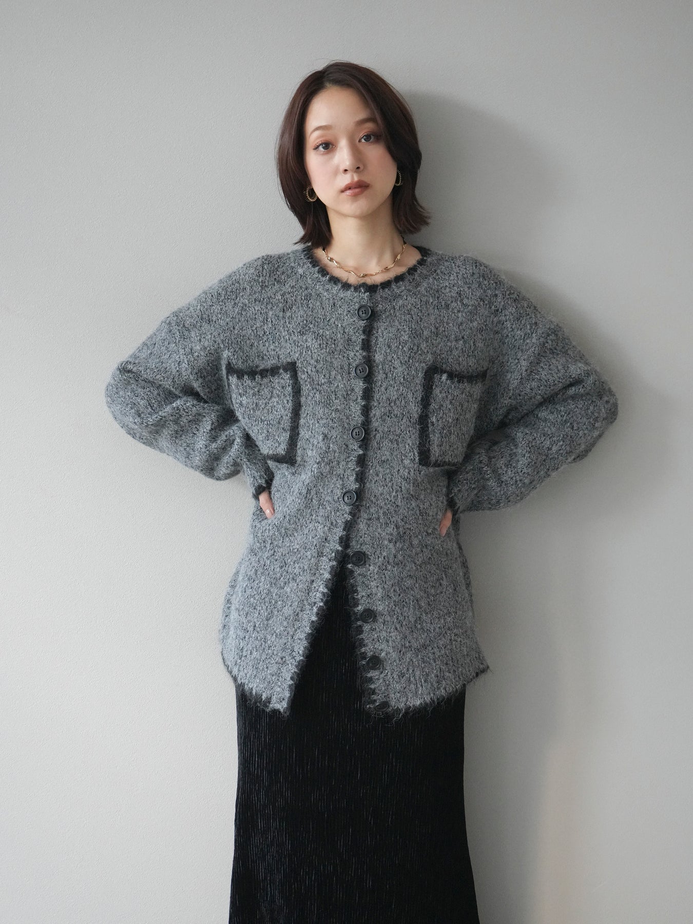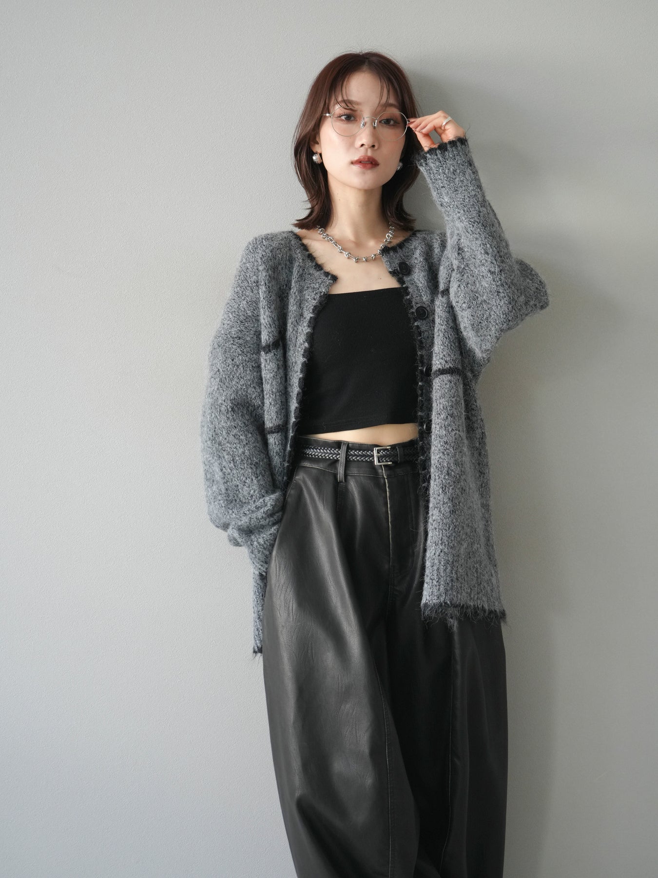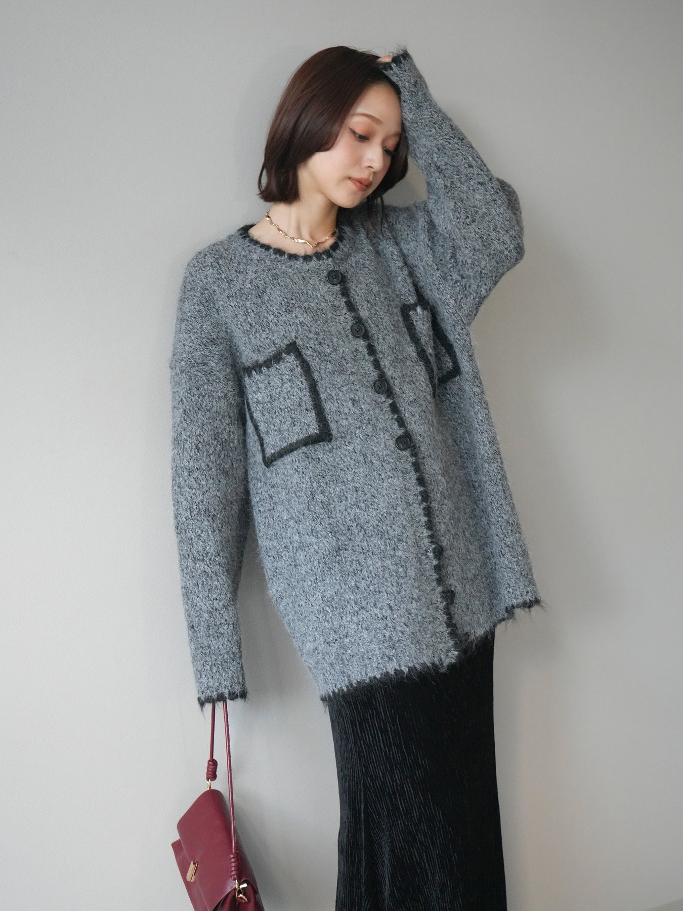 ふんわりとした素材感にハンドステッチ風のラインをあしらったニットカーディガン。 優しい風合いと大きめのポケットデザインが、リラックス感の中にも温もりを感じさせます。 裾や袖口に施されたステッチがアクセントになり、シンプルなコーディネートにも立体感をプラス。 ゆったりとしたシルエットで、ニットやシャツの上からもさらっと羽織れるバランス感。 デイリーに取り入れやすく、季節の変わり目のアウターとしても活躍する一枚です。 ※ボトムス、キャミソール(インナー)以外の商品は一律でインナーは付属していません。