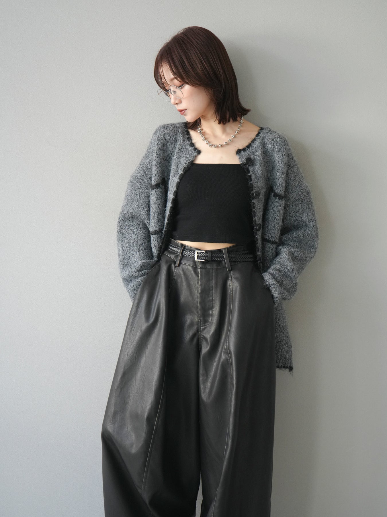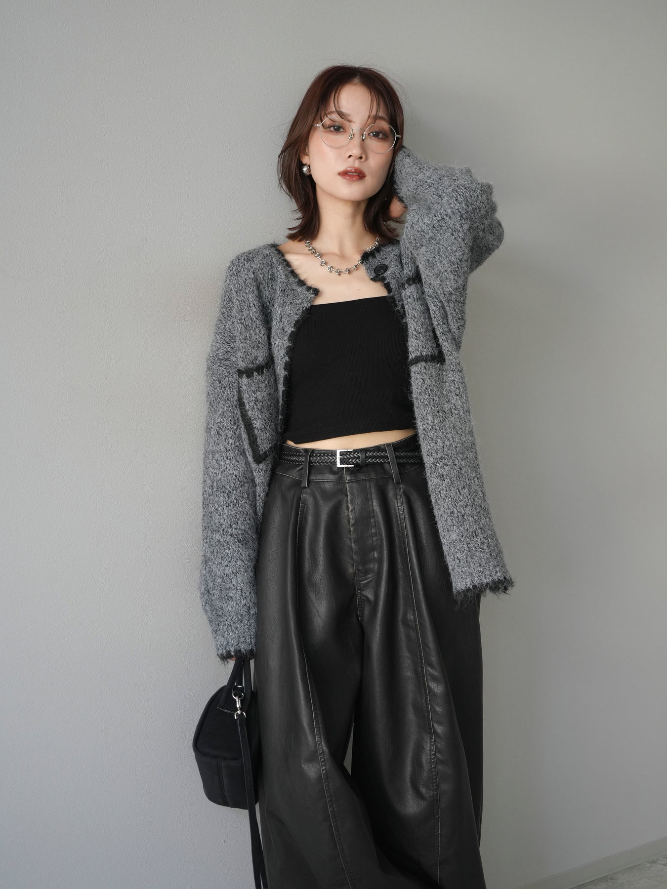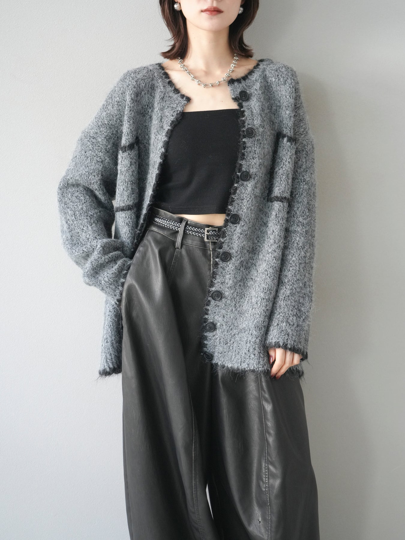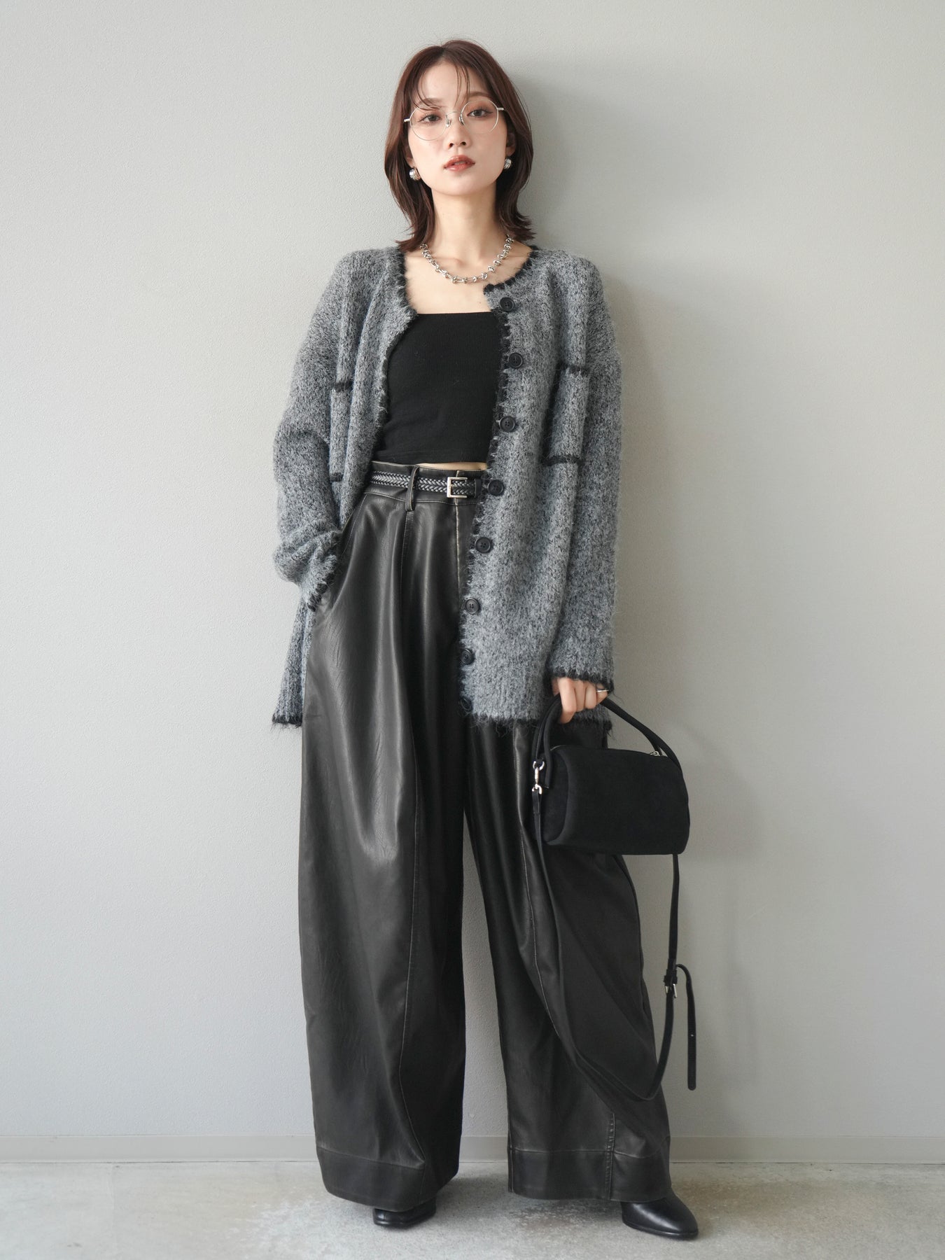 ふんわりとした素材感にハンドステッチ風のラインをあしらったニットカーディガン。 優しい風合いと大きめのポケットデザインが、リラックス感の中にも温もりを感じさせます。 裾や袖口に施されたステッチがアクセントになり、シンプルなコーディネートにも立体感をプラス。 ゆったりとしたシルエットで、ニットやシャツの上からもさらっと羽織れるバランス感。 デイリーに取り入れやすく、季節の変わり目のアウターとしても活躍する一枚です。 ※ボトムス、キャミソール(インナー)以外の商品は一律でインナーは付属していません。
