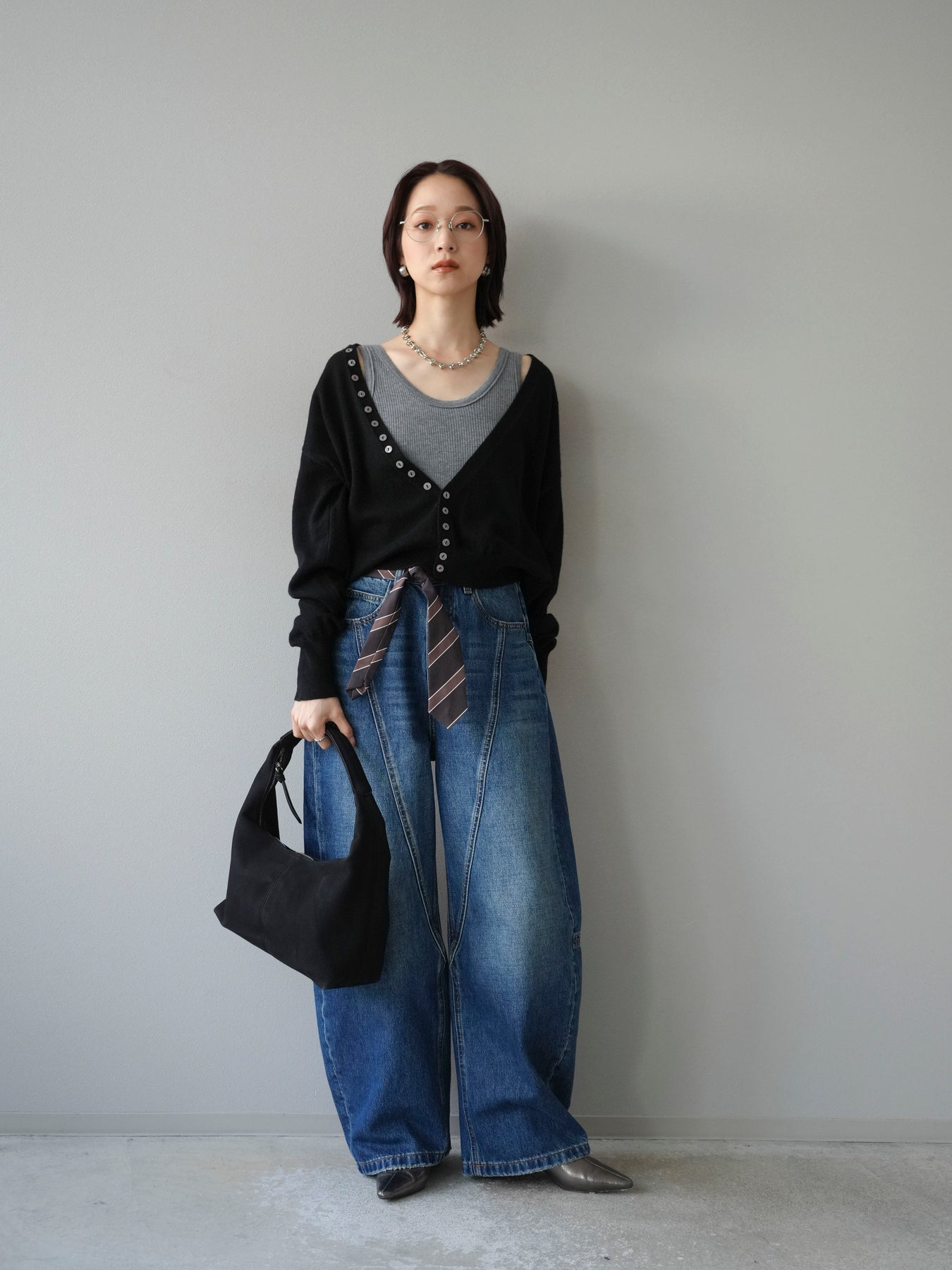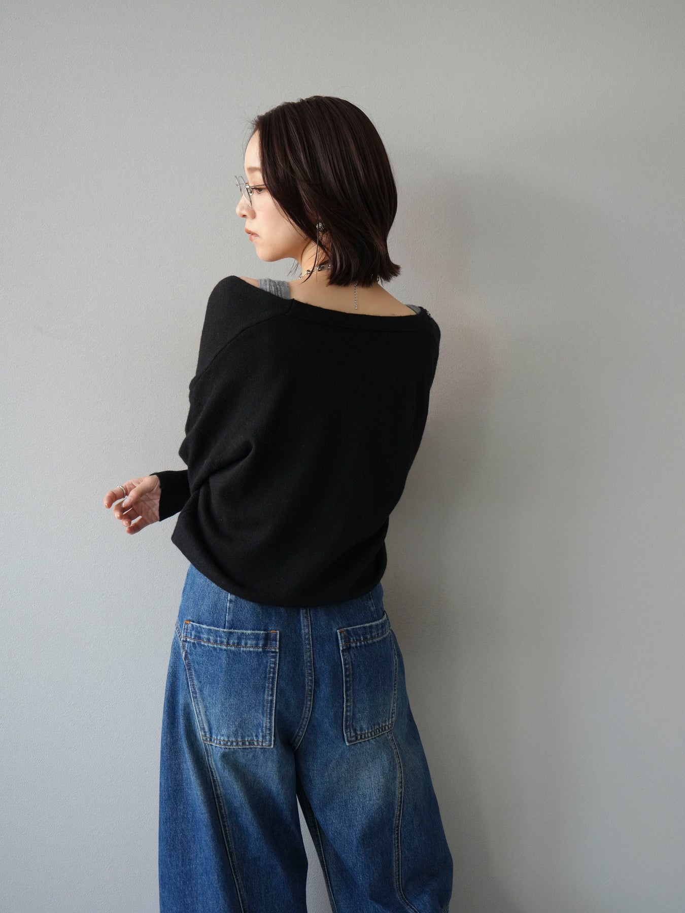 ・お手入れ方法:水温30℃以下手洗い優しく押し洗いでのお洗濯をお薦めします。素材の特性上、洗濯の際に色落ち・縮みが生じる恐れがありますので単独で・短時間でのお洗濯をお薦めします。裏返してネットに入れ手洗いコースで洗濯、洗濯後は形を整えてから干してください。※タンブラー乾燥は控え、アイロンは当て布使用ください。 濡れたままの状態で擦れると、色落ち色移りすることがあります。つけ置き洗いや雨や汗で濡れたまま放置は避け、速やかに処理してください。着用中の摩擦や汗、水濡れ、濃淡差があるものとの重ね着にご注意ください。 また、素材の特性上伸びやすい為ハンガーの使用はお控えいただき畳んで保管ください。