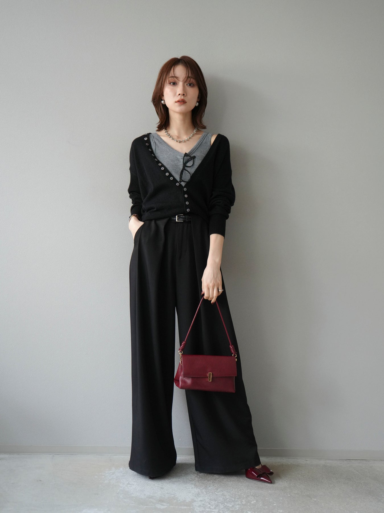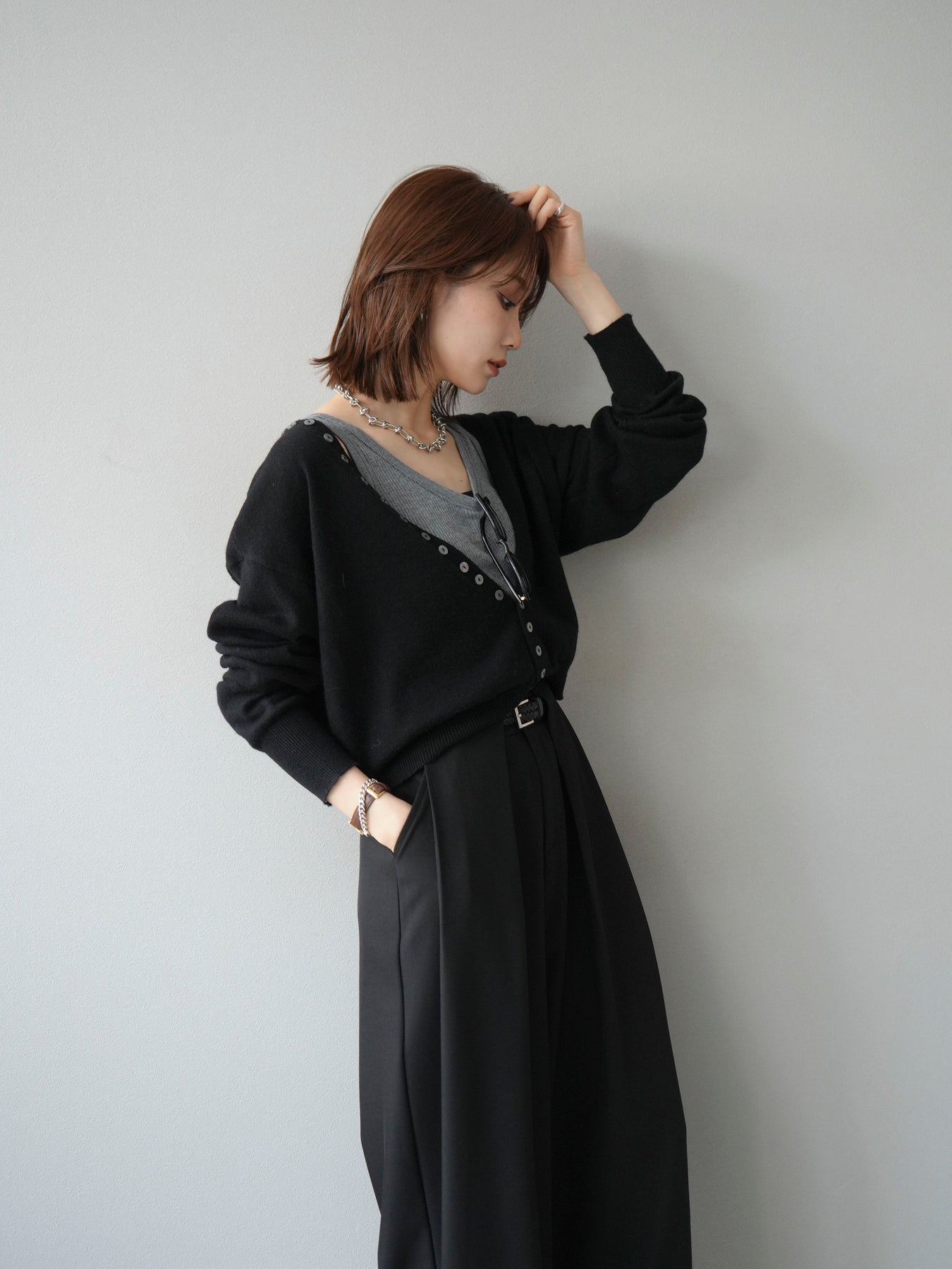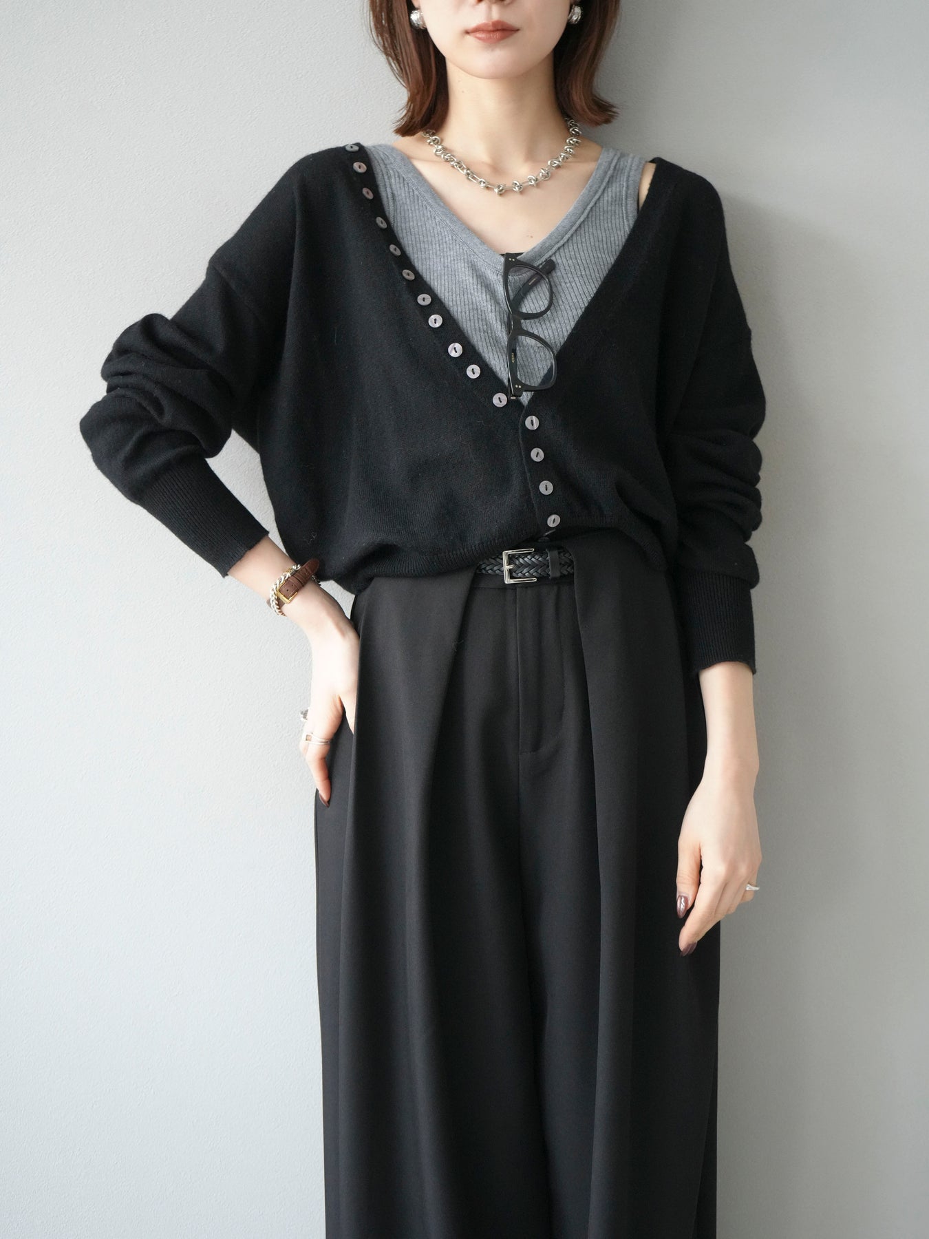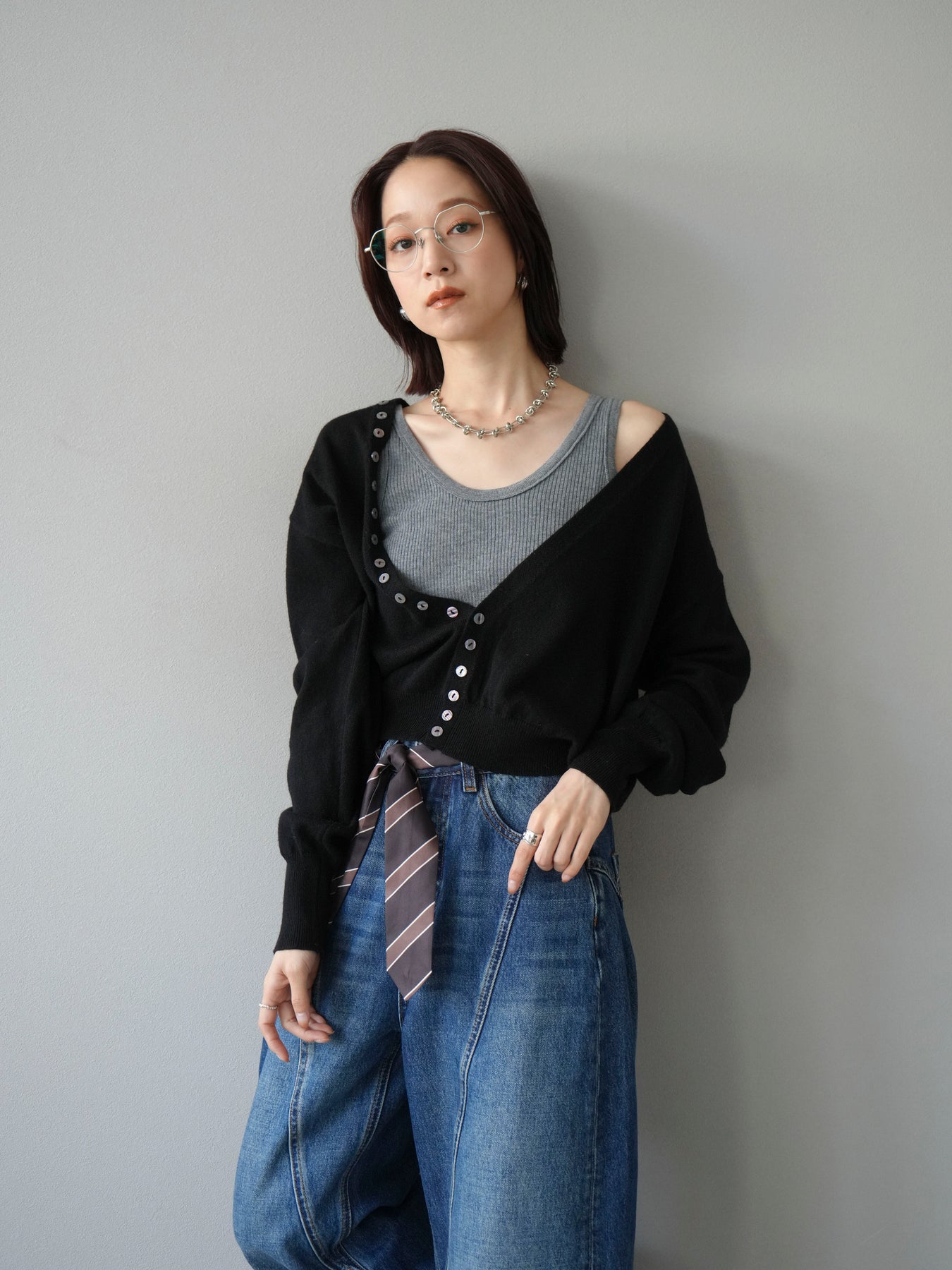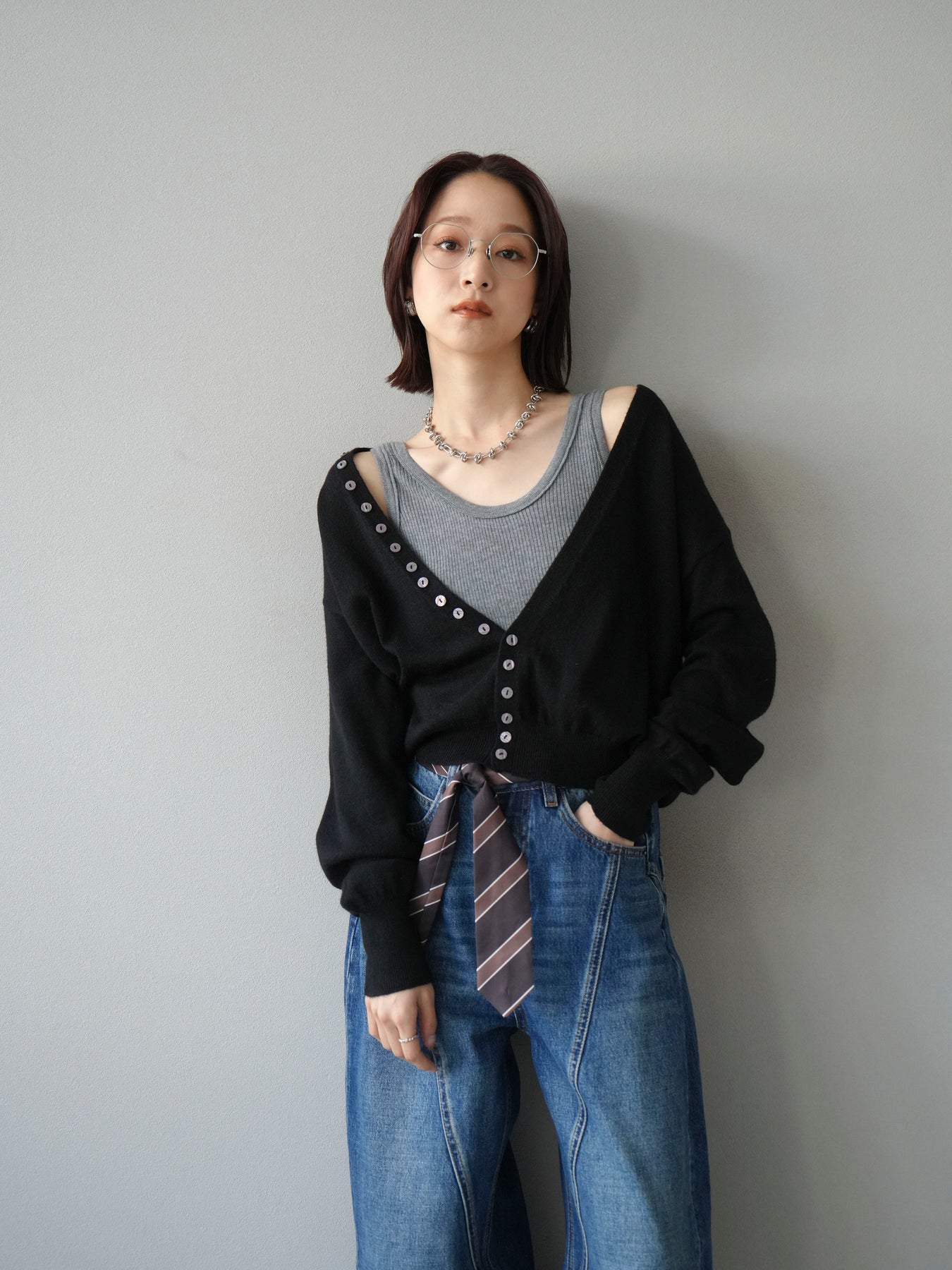 [予約]デザインボタンニットカーディガン&タンクトップSET/ブラック