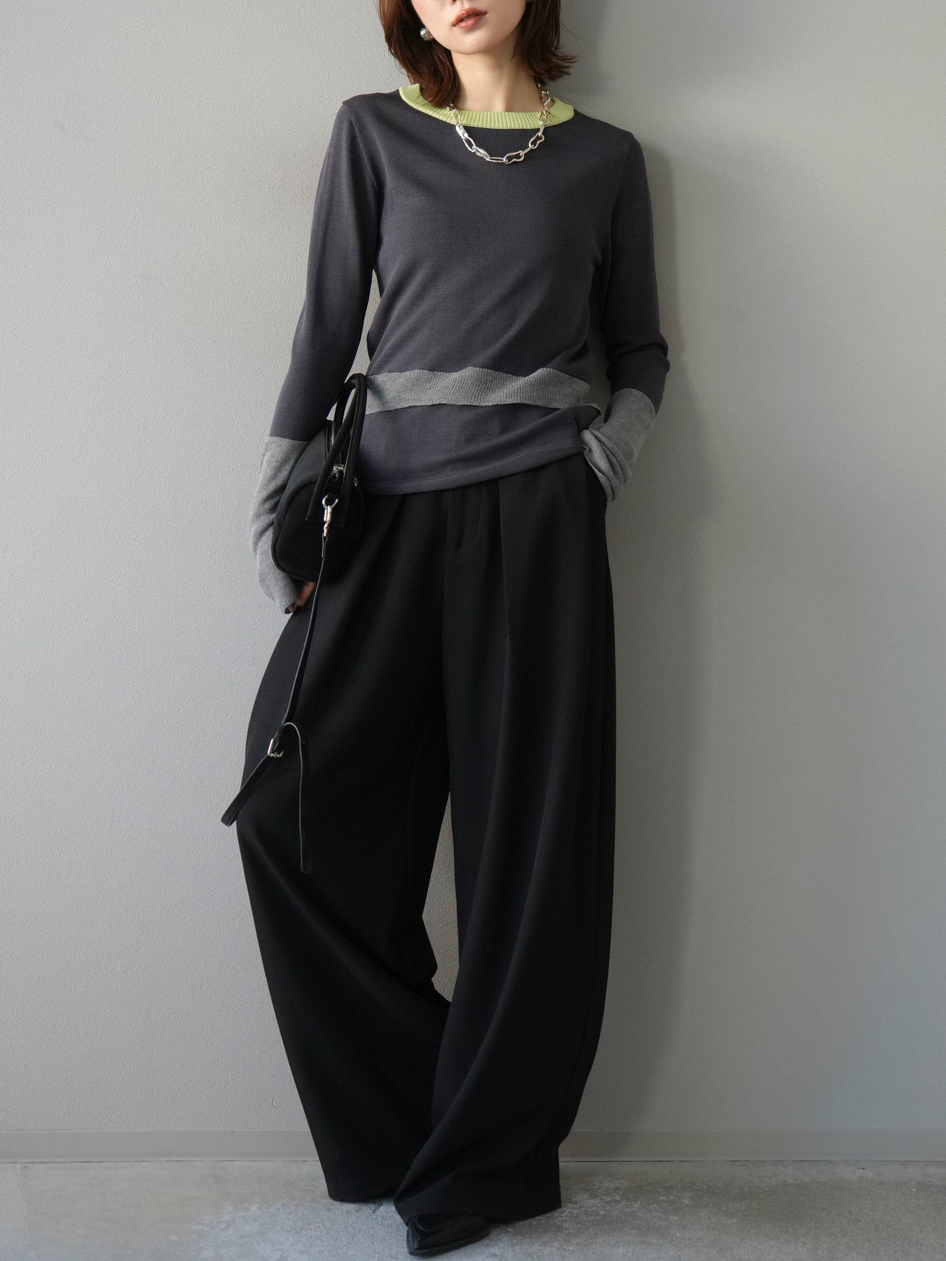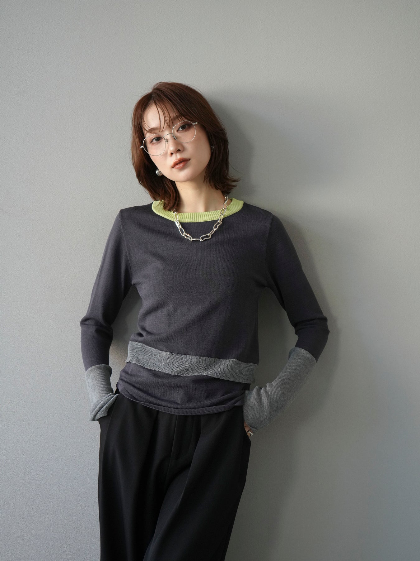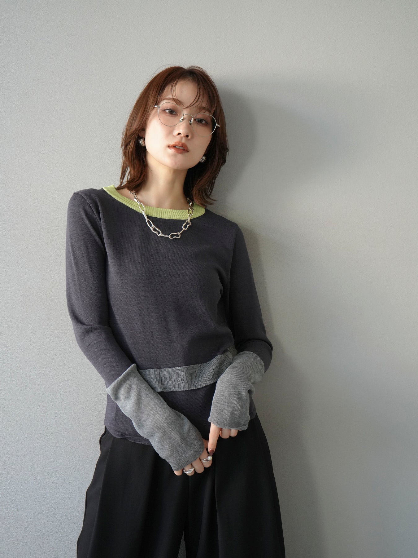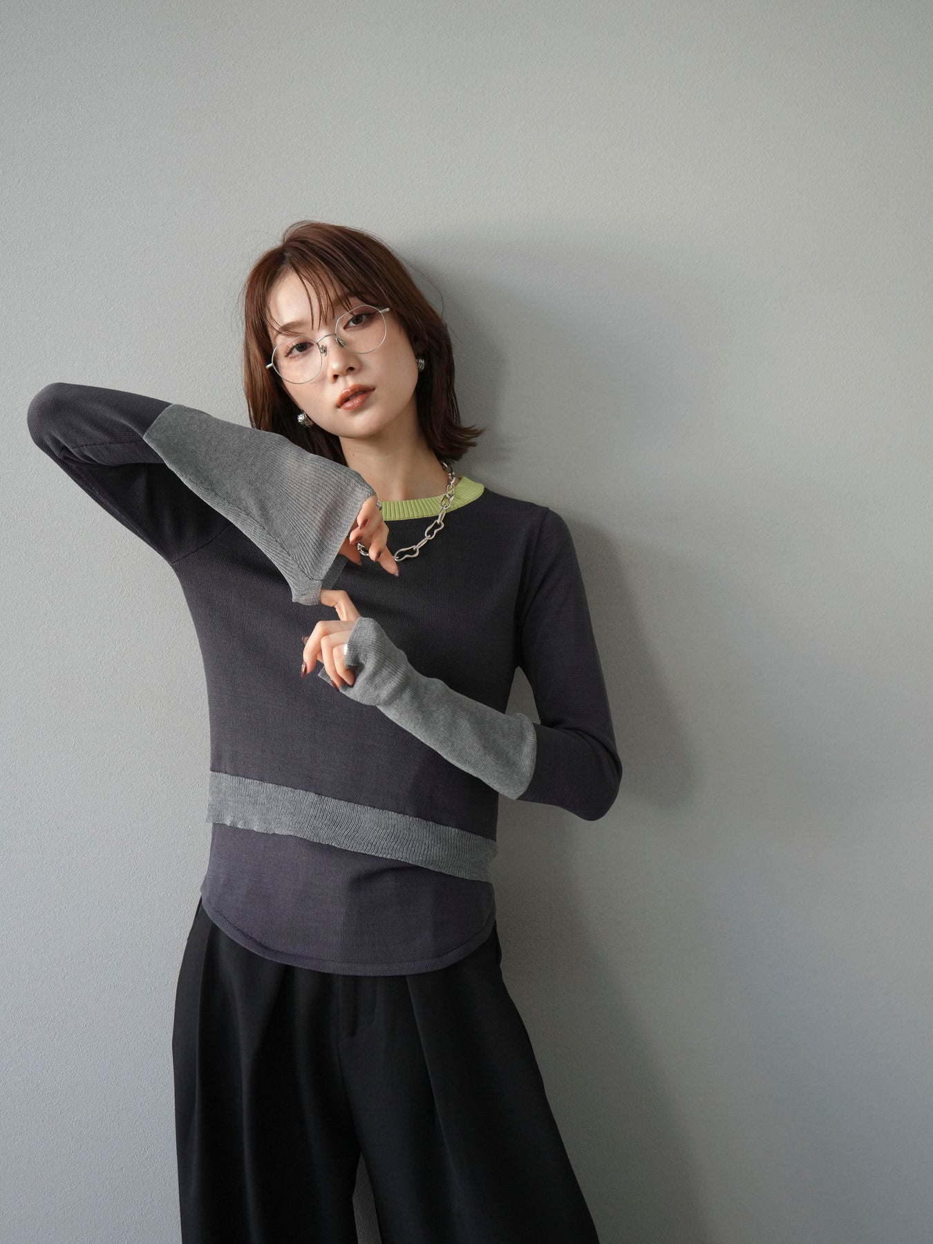 異素材の切り替えと配色デザインが目を引くニットトップス。シンプルなシルエットにさりげないアクセントを加え、1枚で着映えする仕上がりになっています。柔らかなニット素材とさらりとした異素材の組み合わせで快適な着心地を実現。程よくゆとりのあるシルエットは、パンツにもスカートにも合わせやすく、デイリーからオフィスカジュアルまで幅広く活躍します。ベーシックながらもモード感を取り入れられる万能な一着です。 ※ボトムス、キャミソール(インナー)以外の商品は一律でインナーは付属していません。