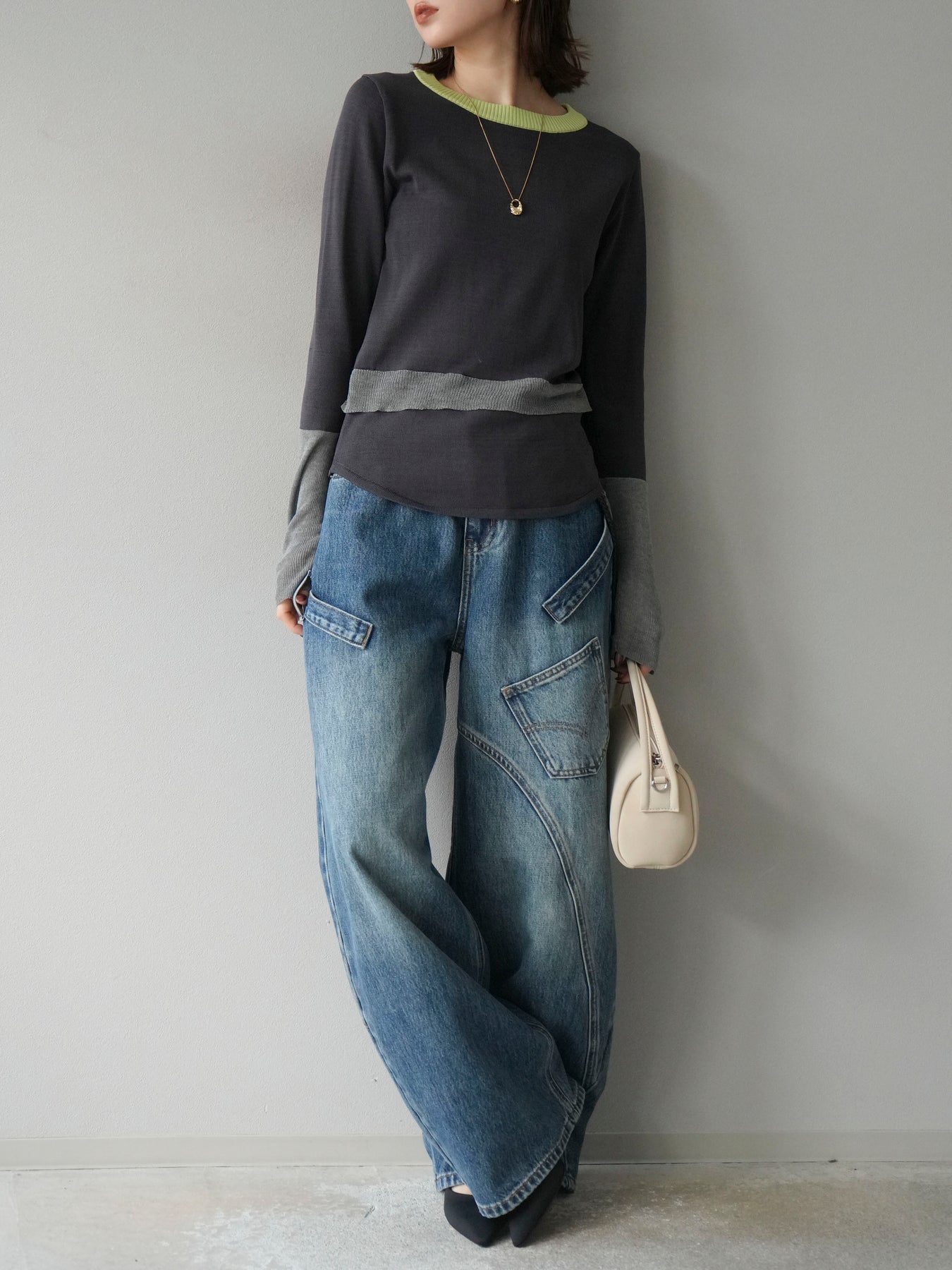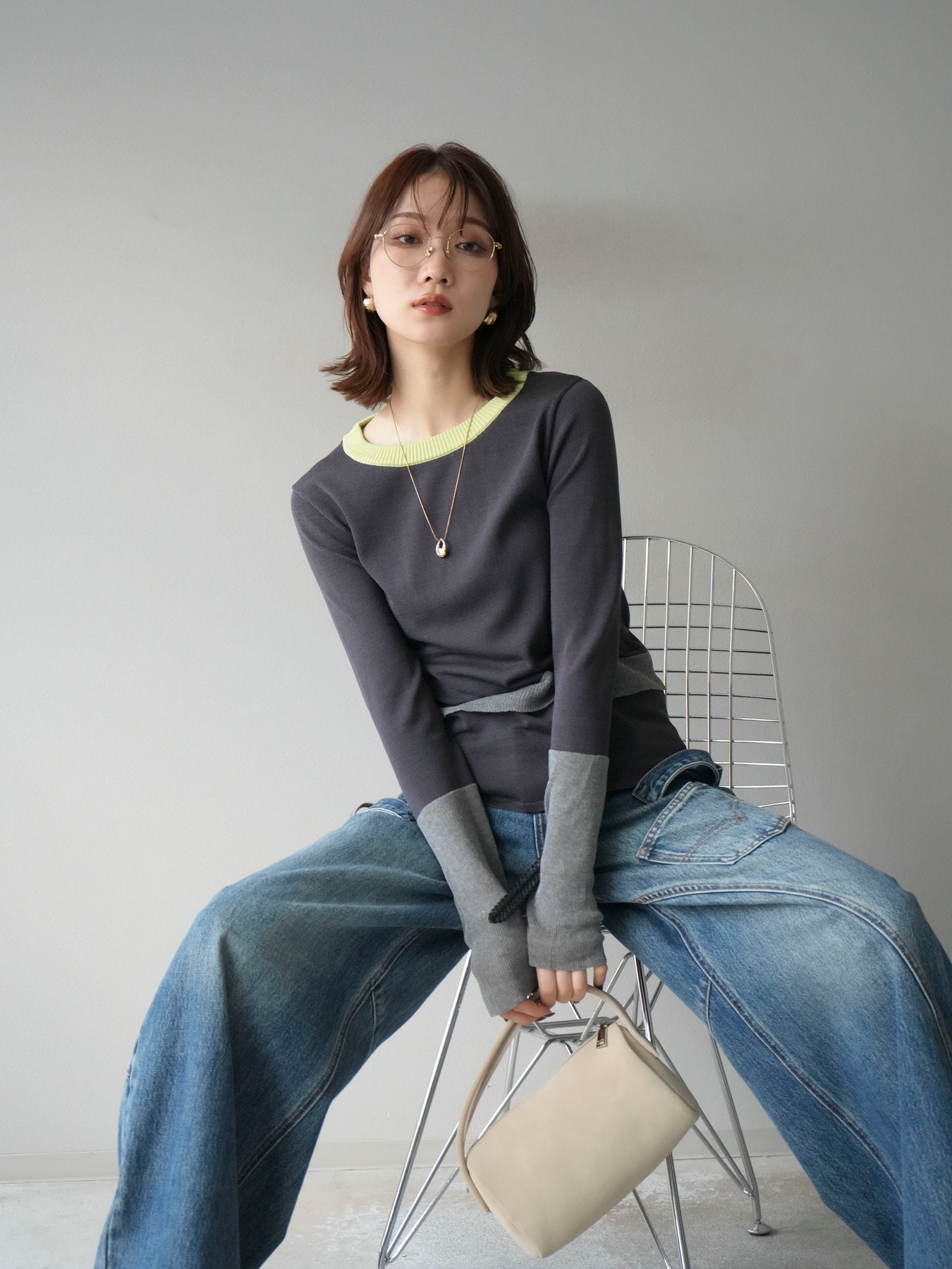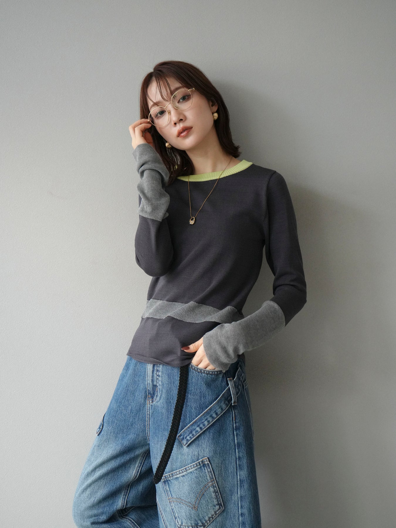 [予約]異素材配色デザインニットトップスに関連する商品を探す↓