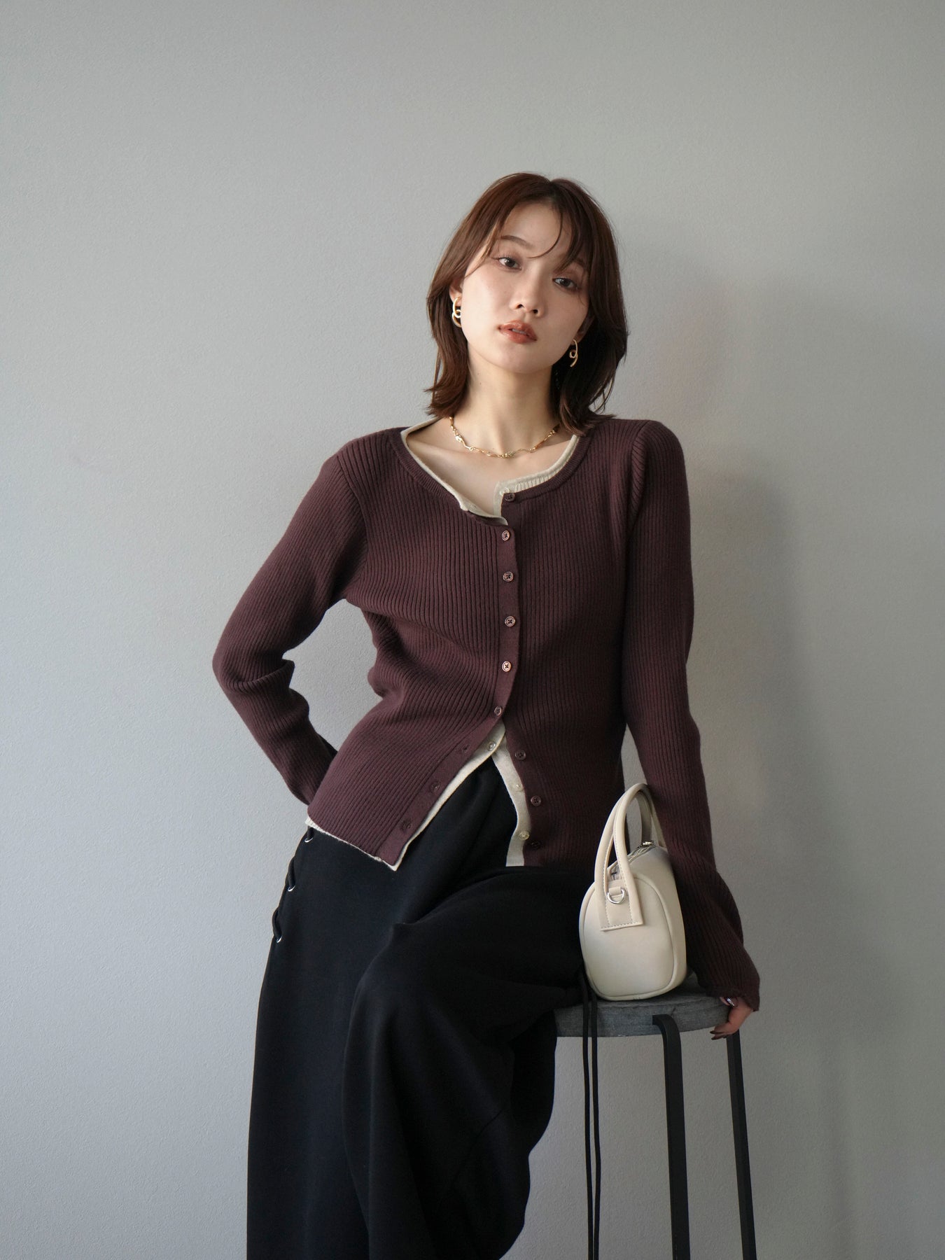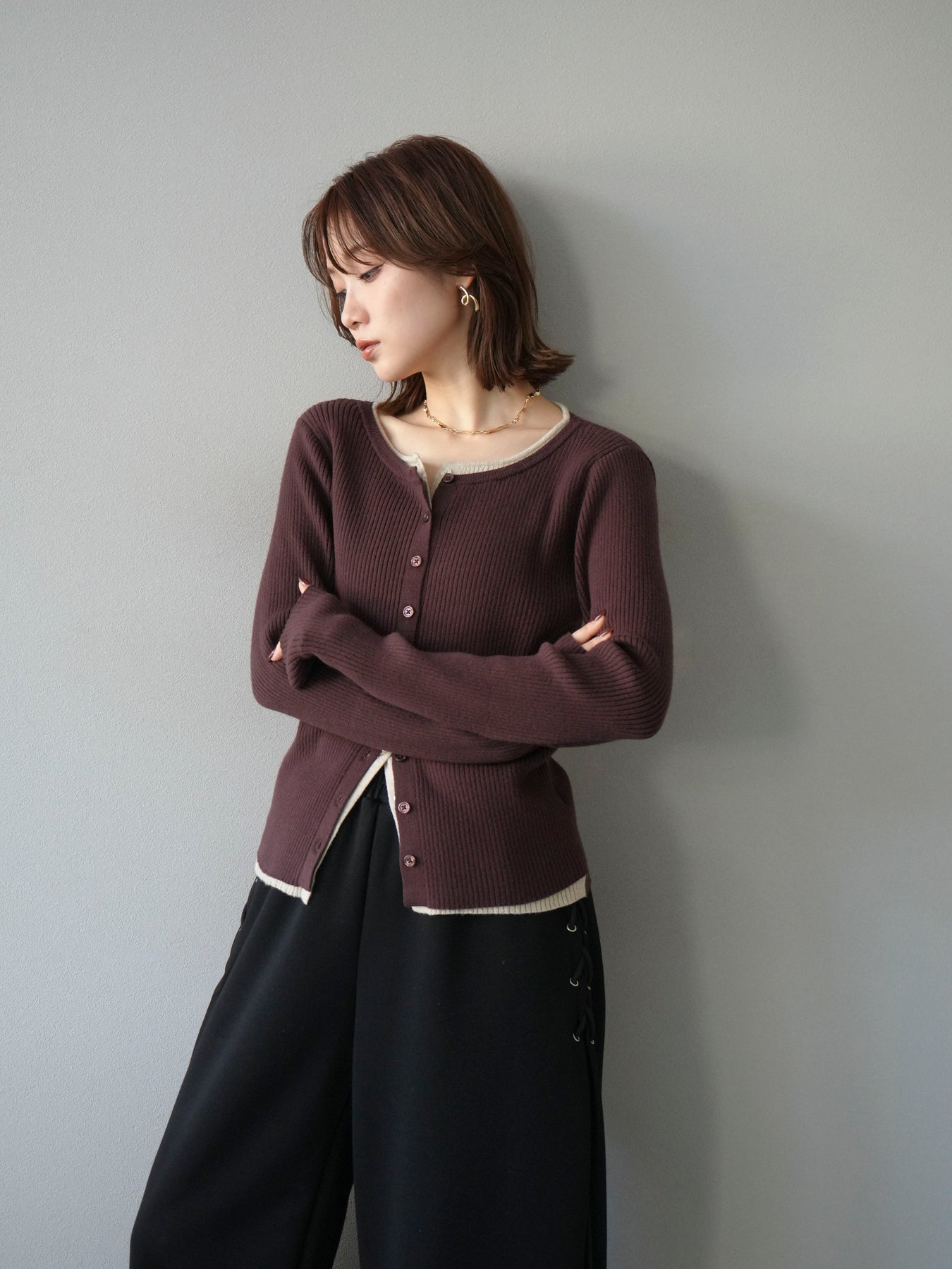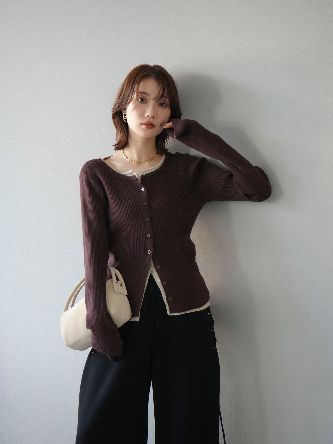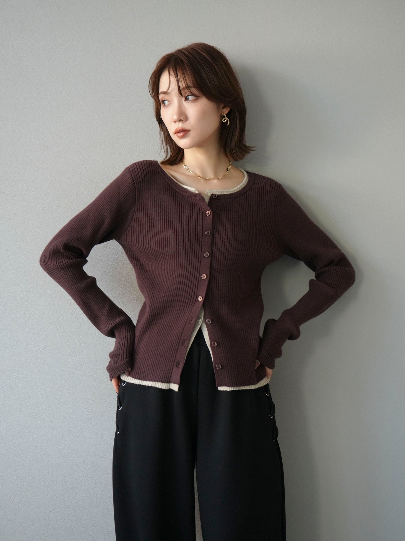 [予約]レイヤード配色ニットカーディガン/ブラウン