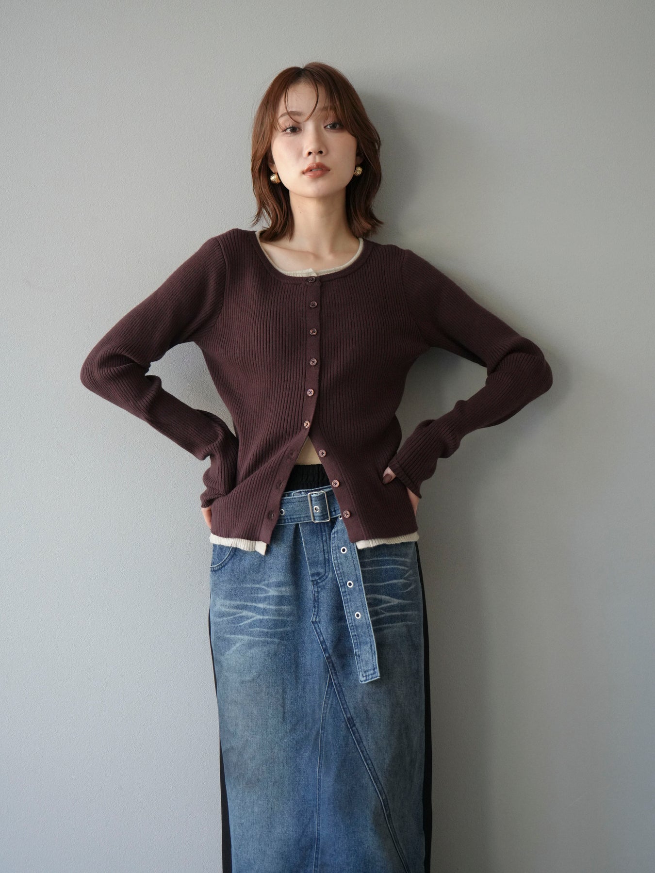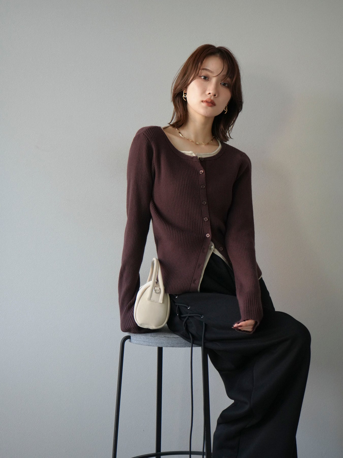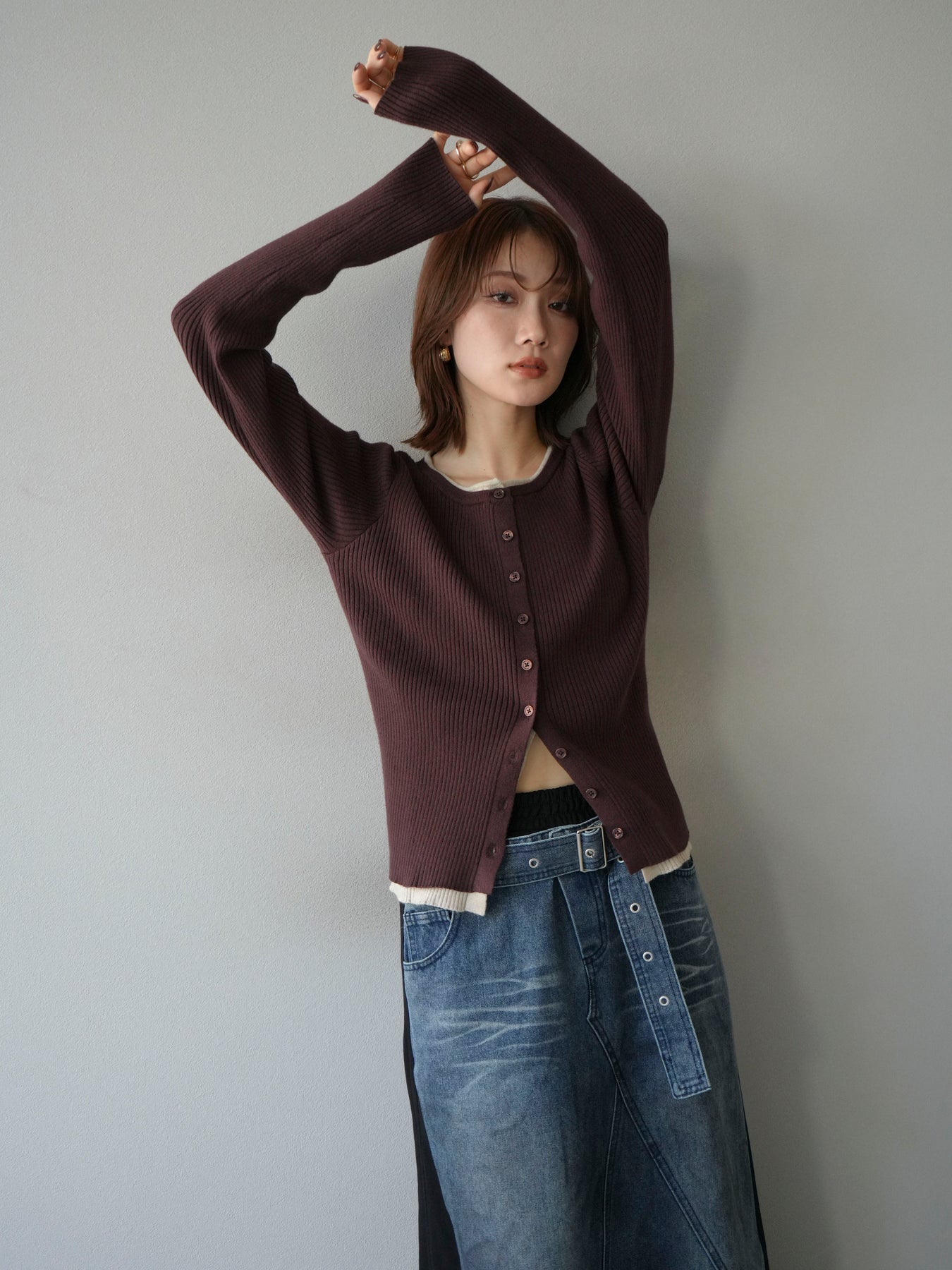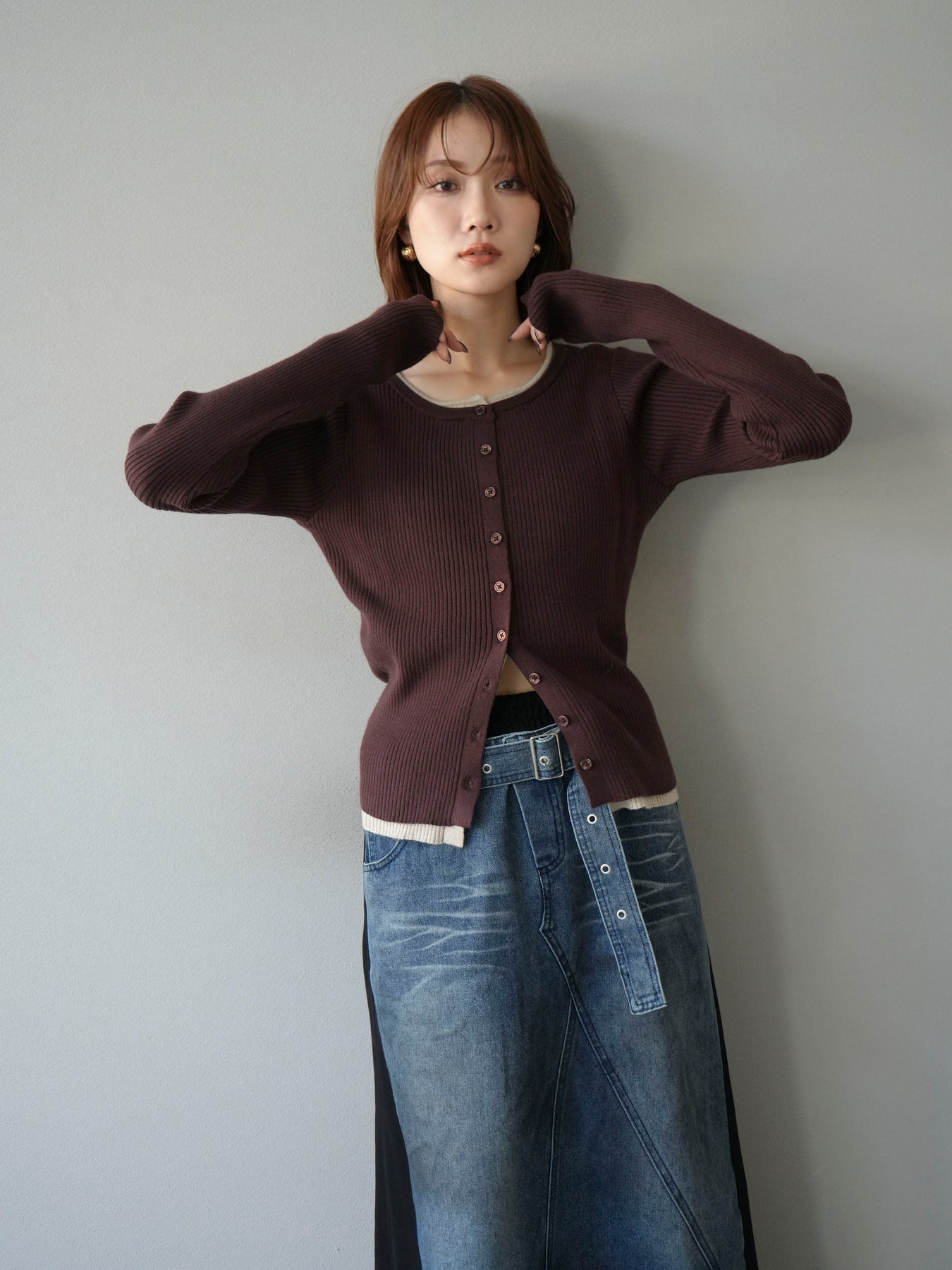 [予約]レイヤード配色ニットカーディガン/ブラウン