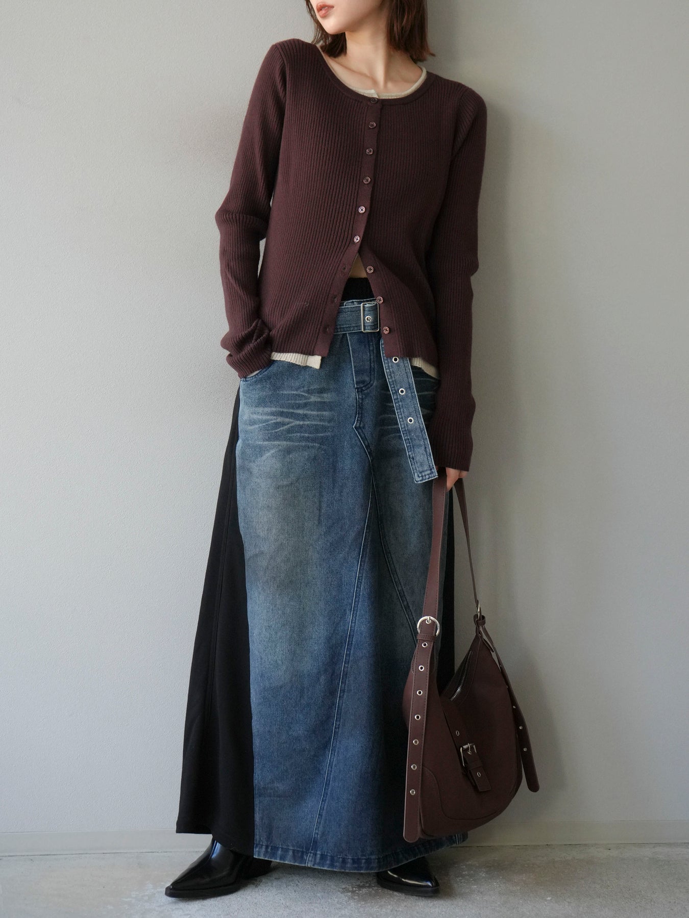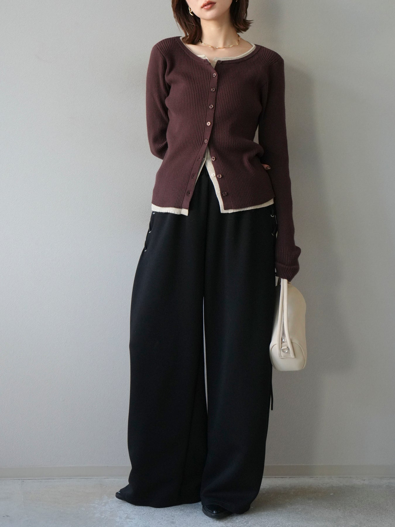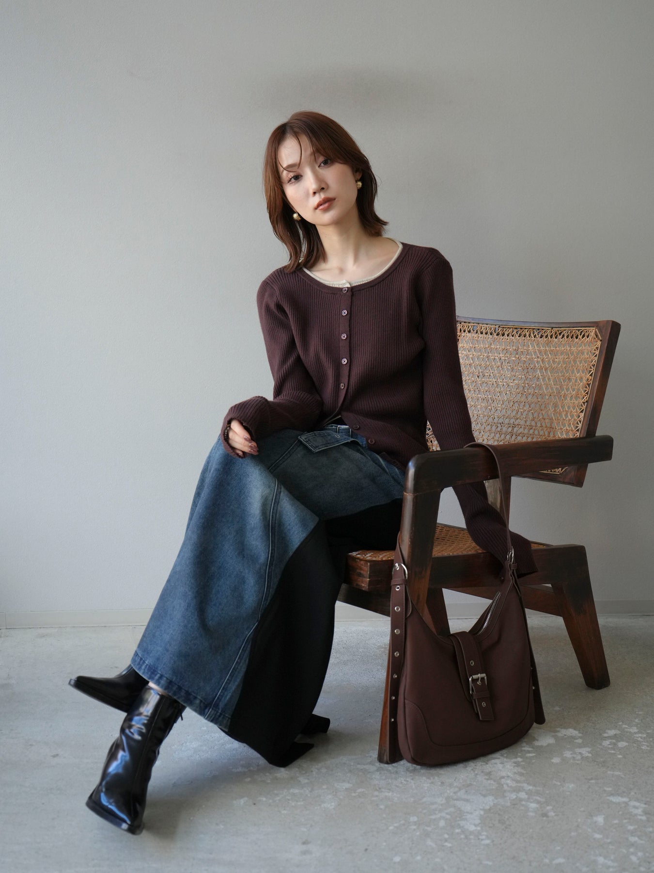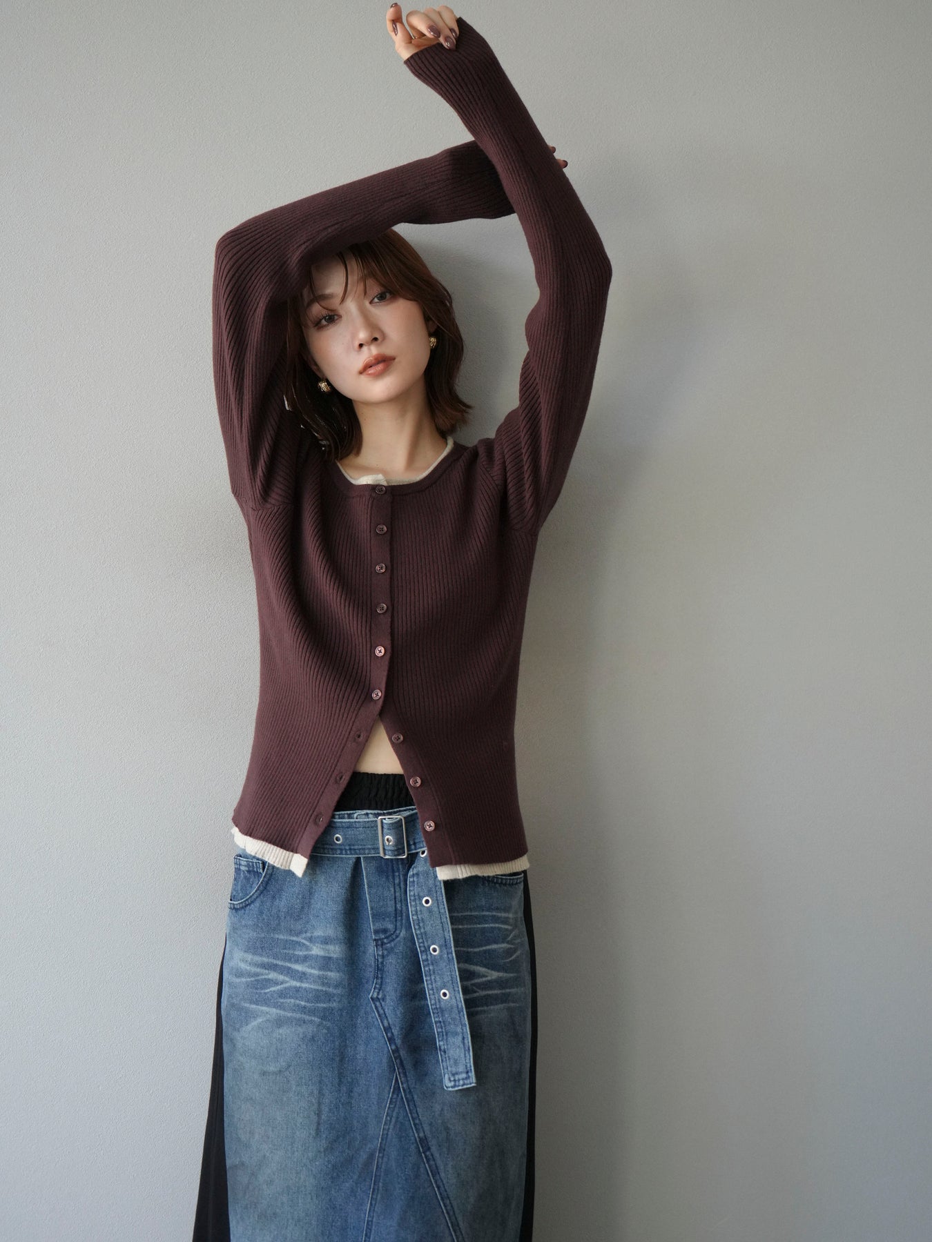 [予約]レイヤード配色ニットカーディガン/ブラウン