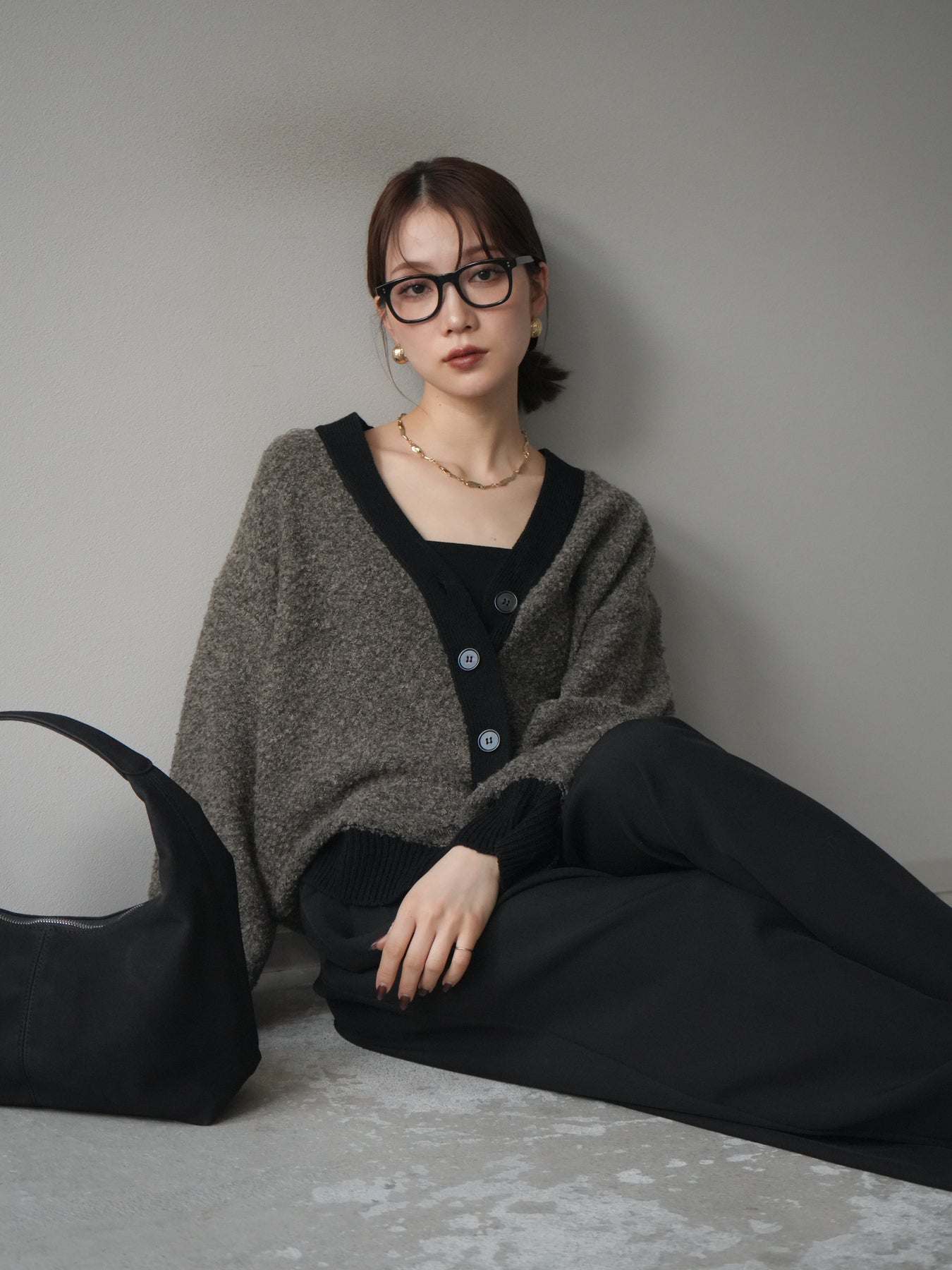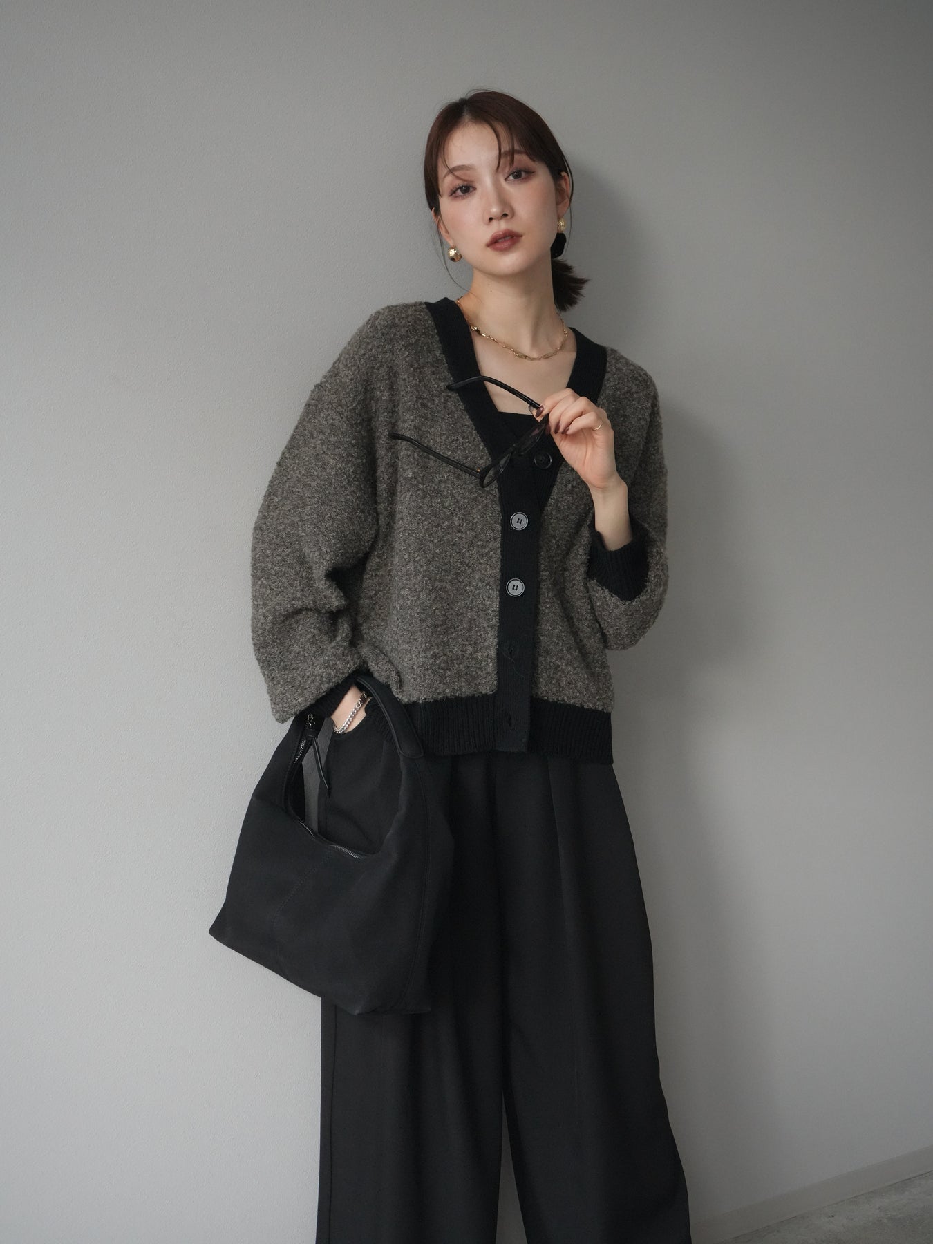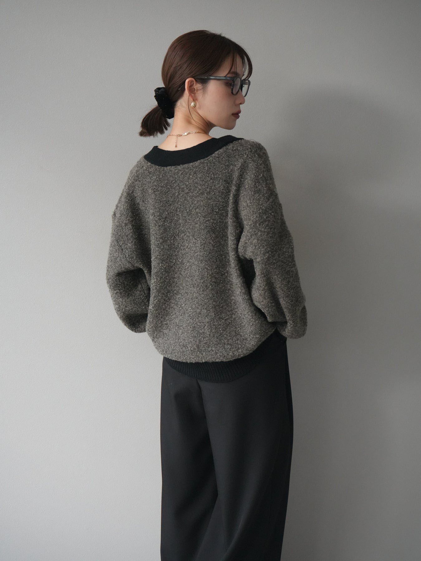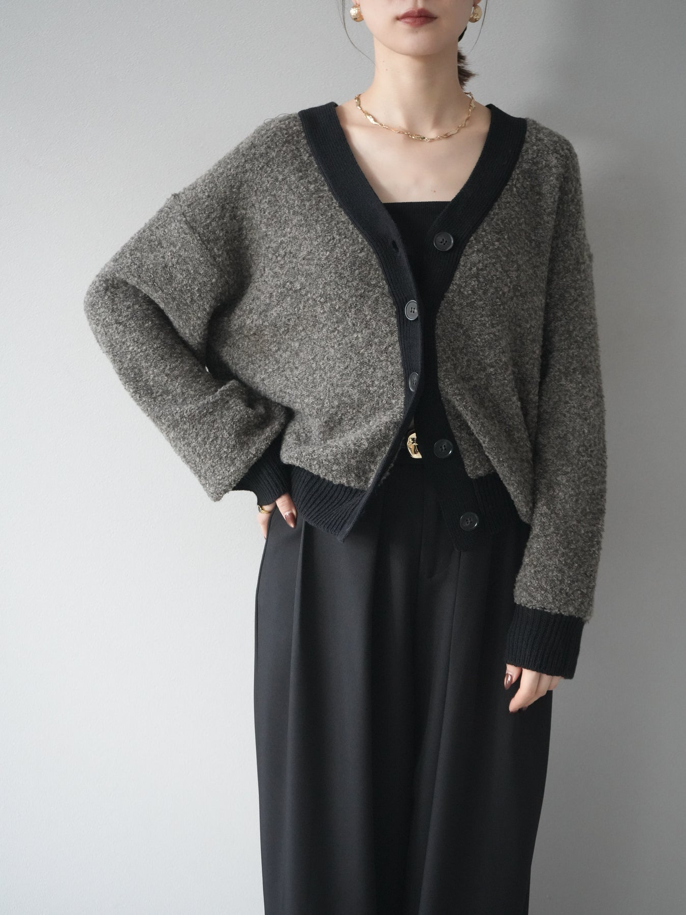 [予約]ブークレバイカラーニットカーディガン/charcoal