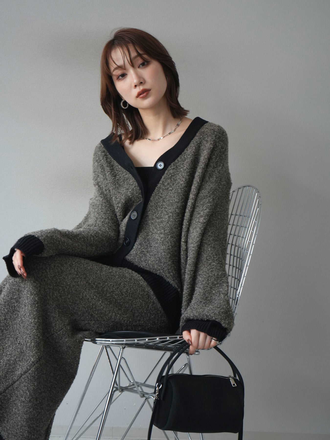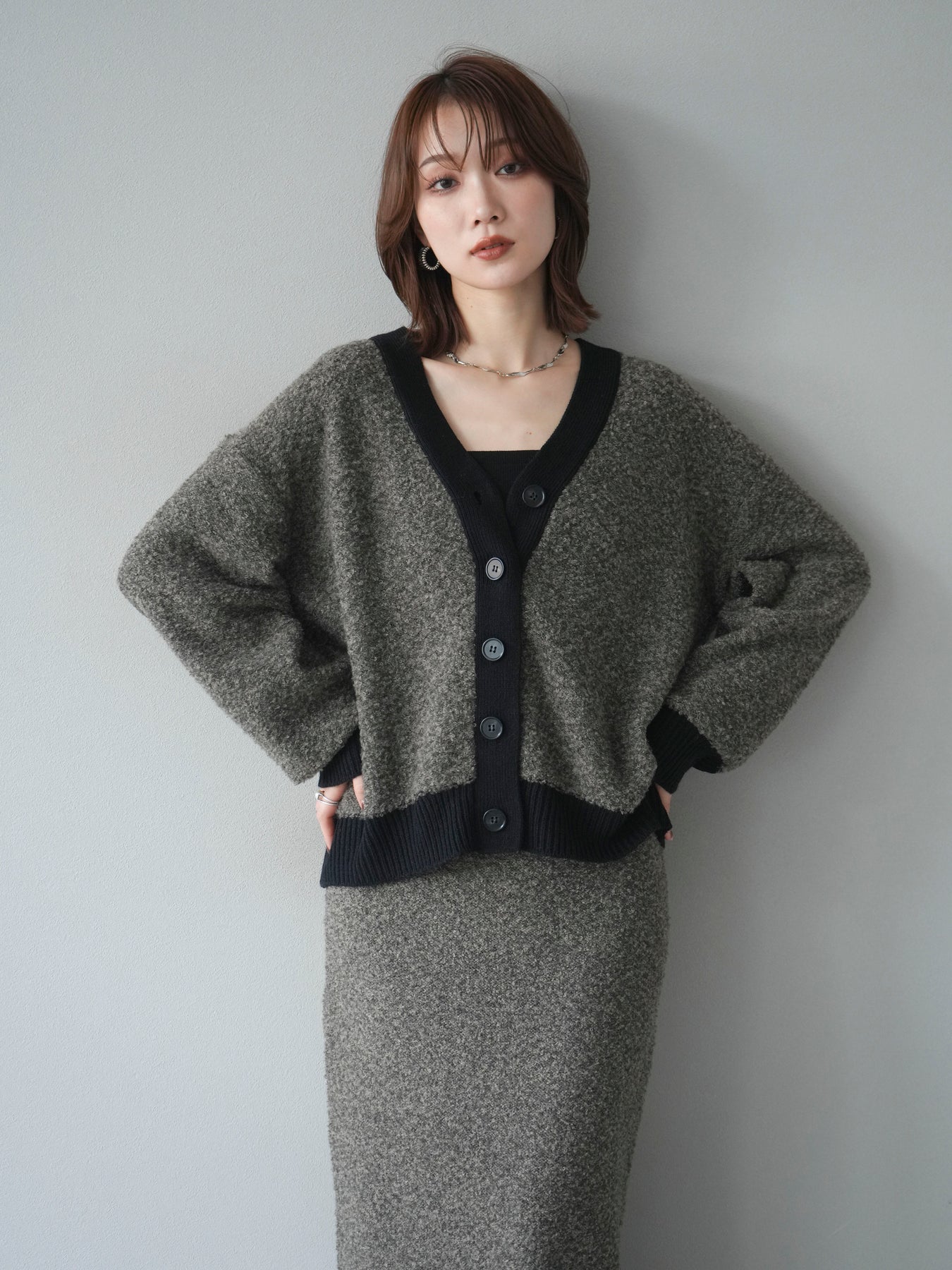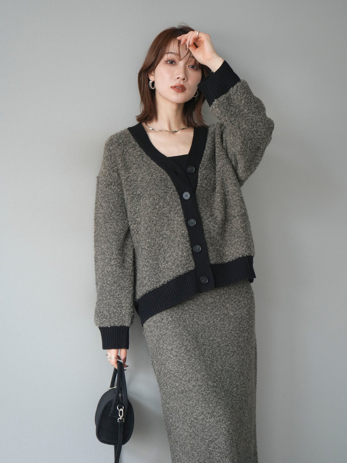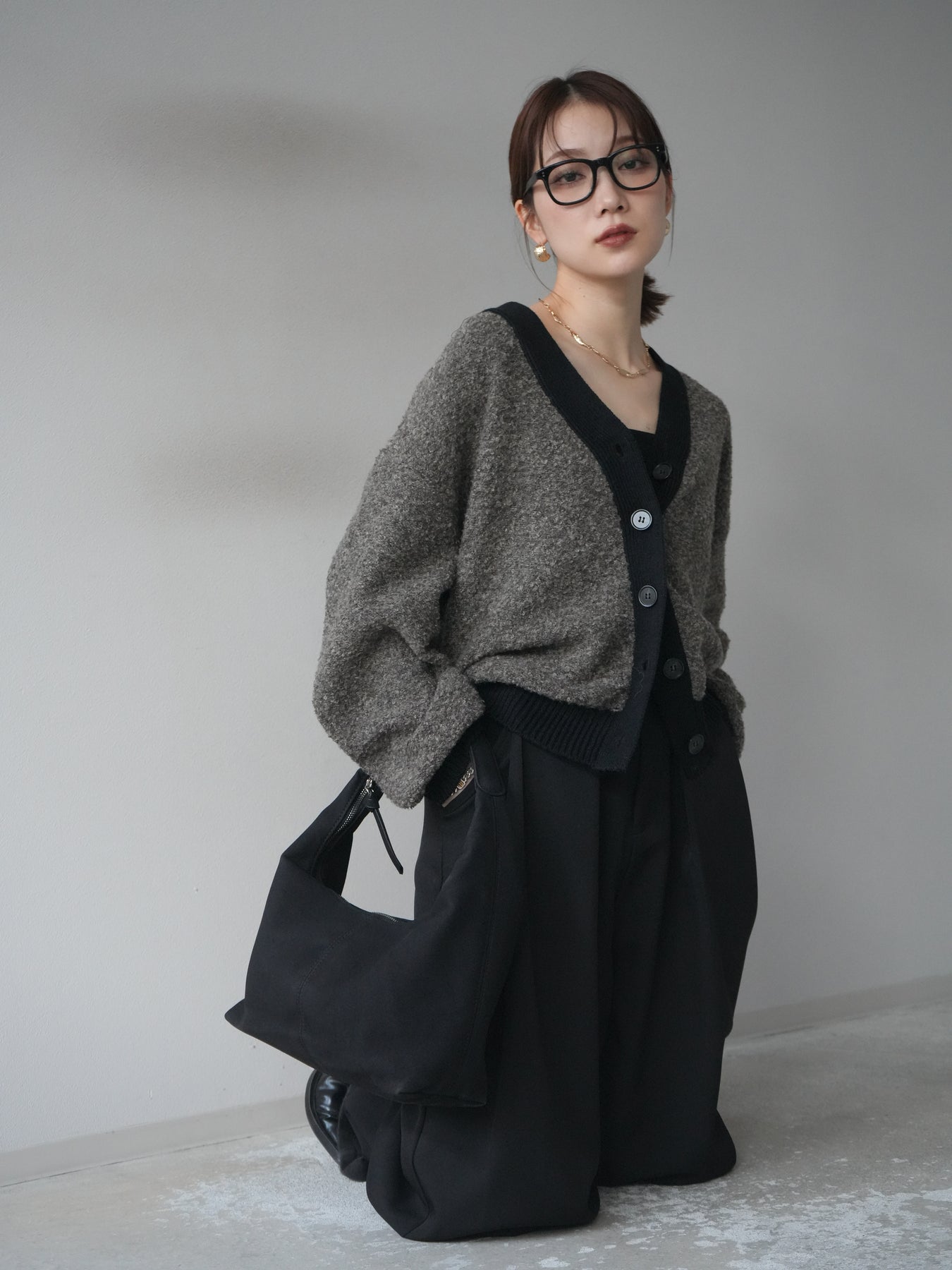 [予約]ブークレバイカラーニットカーディガン/charcoal