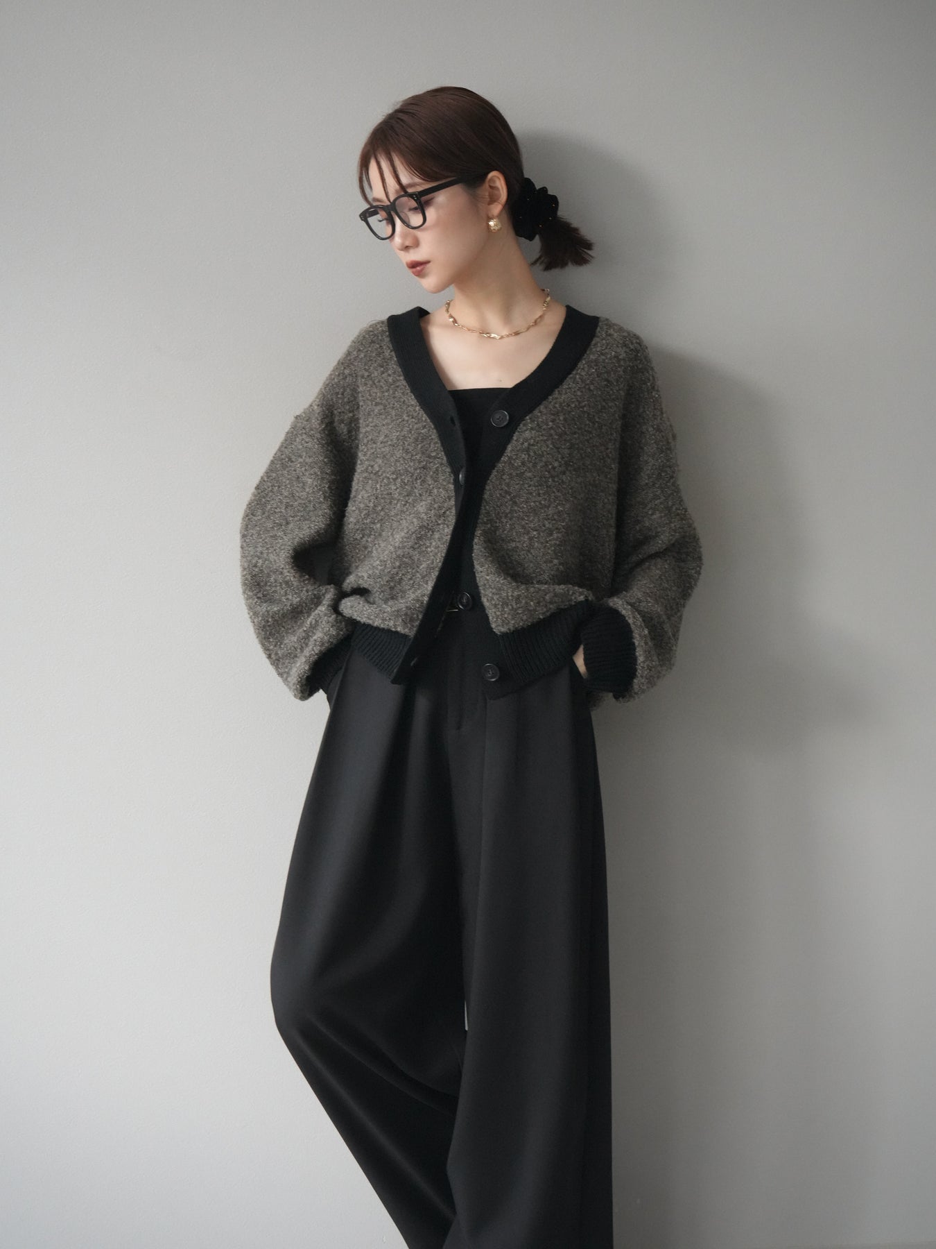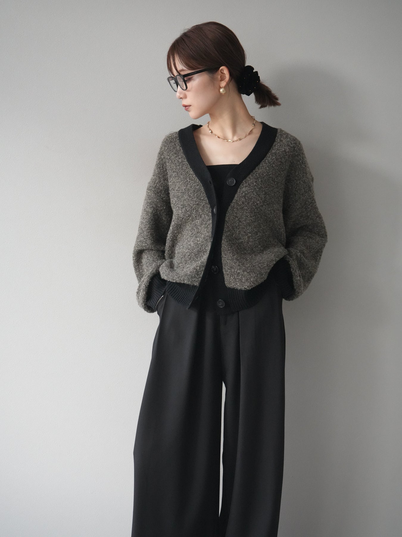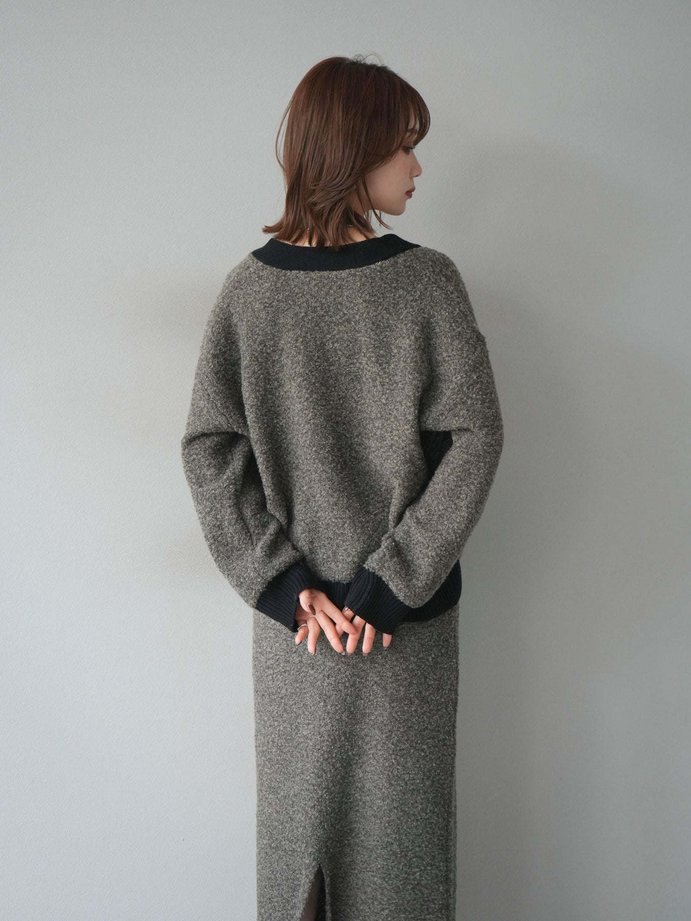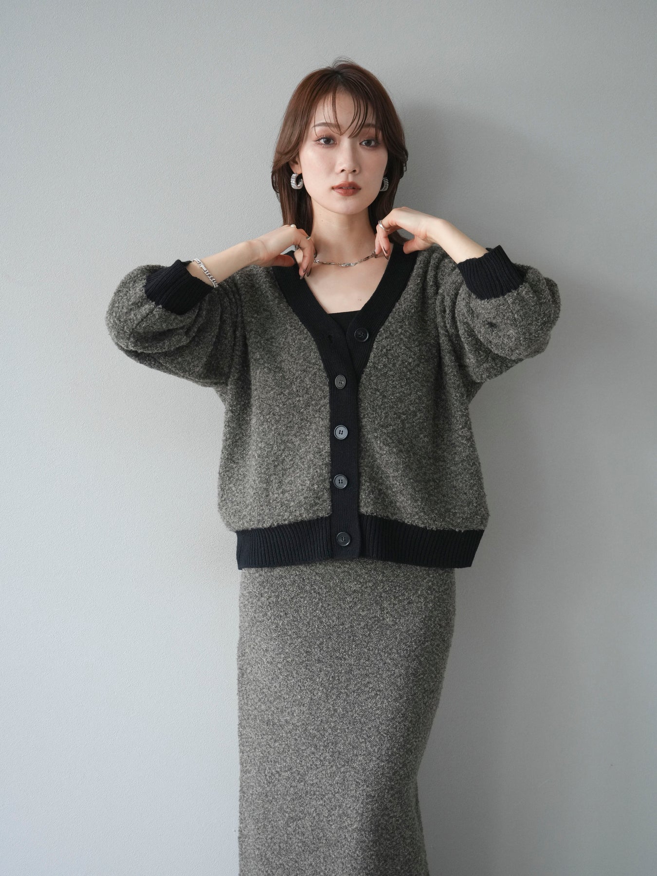 [予約]ブークレバイカラーニットカーディガン/charcoal