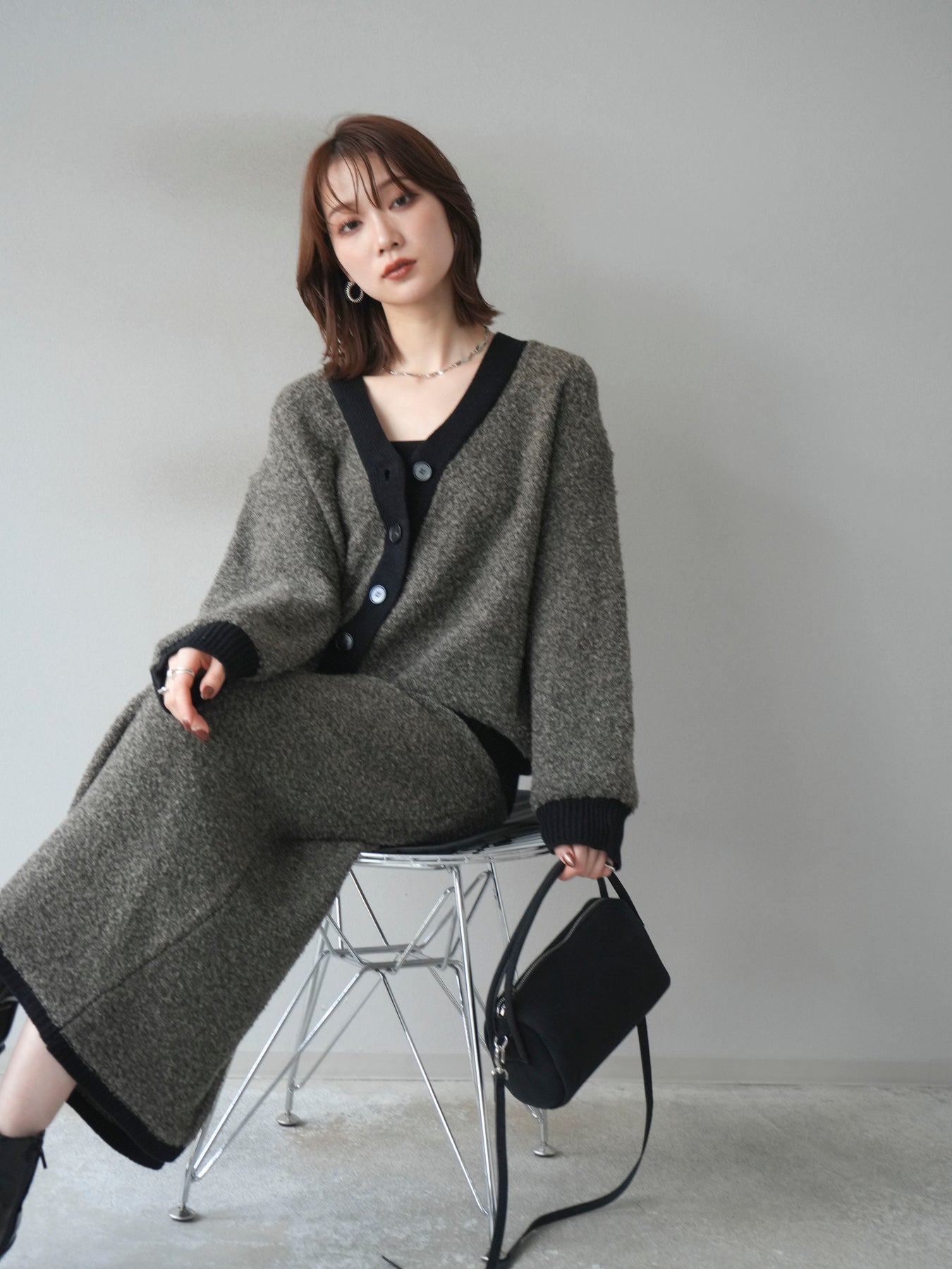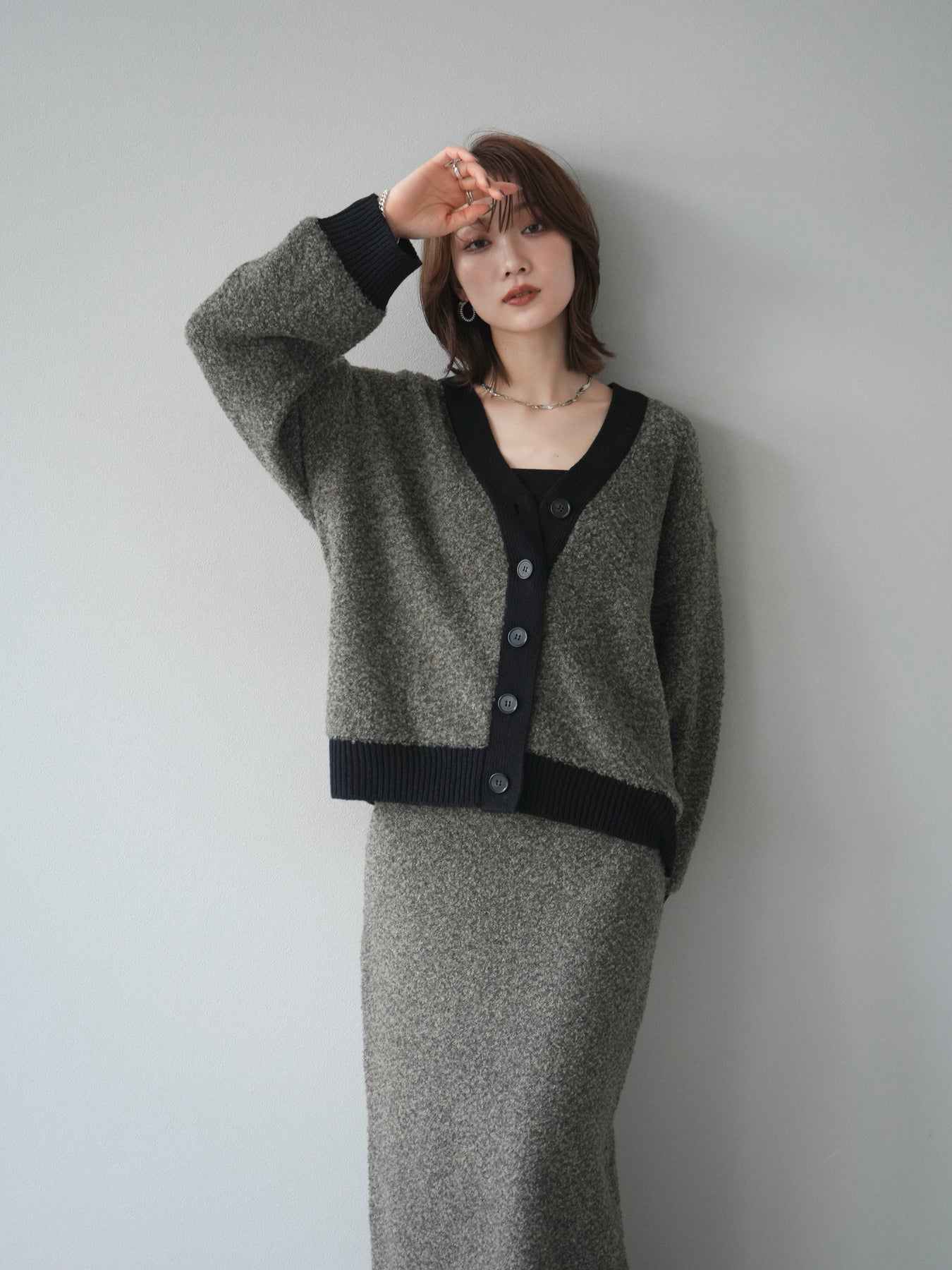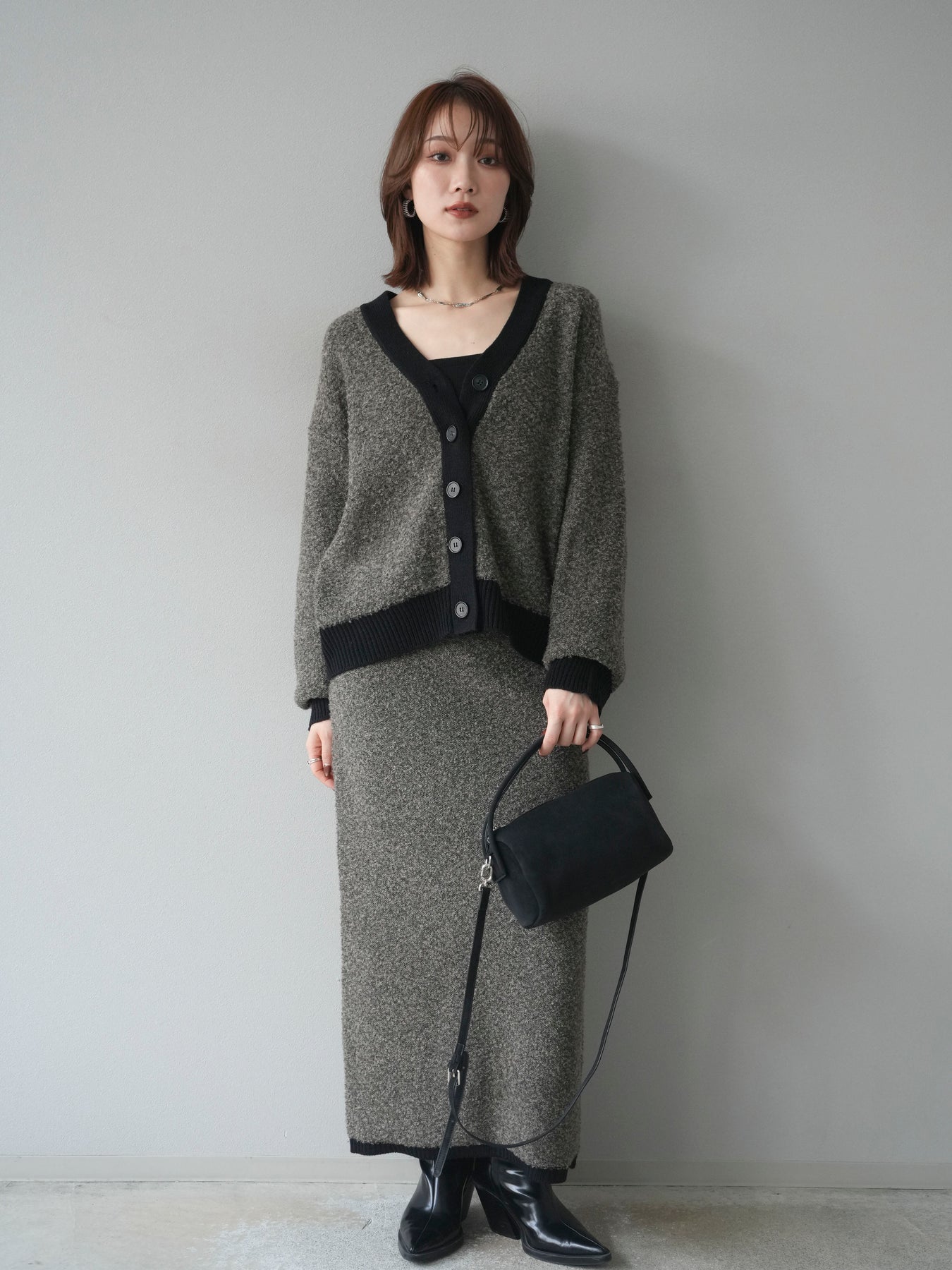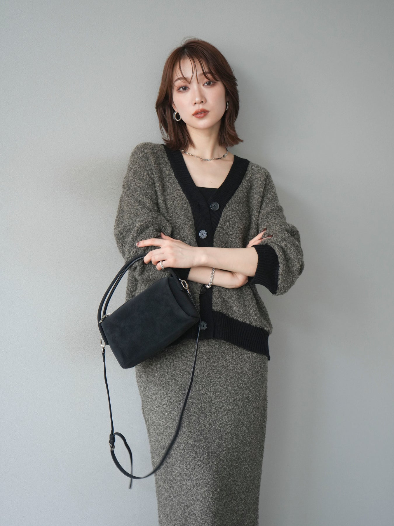 [予約]ブークレバイカラーニットカーディガン/charcoal