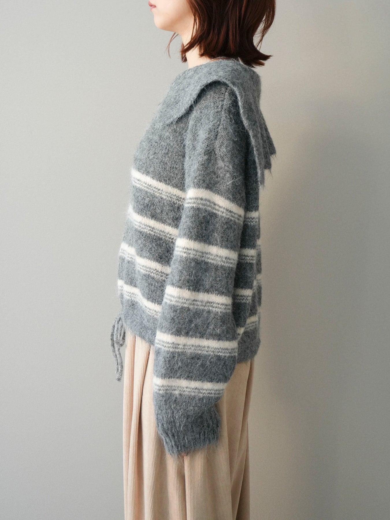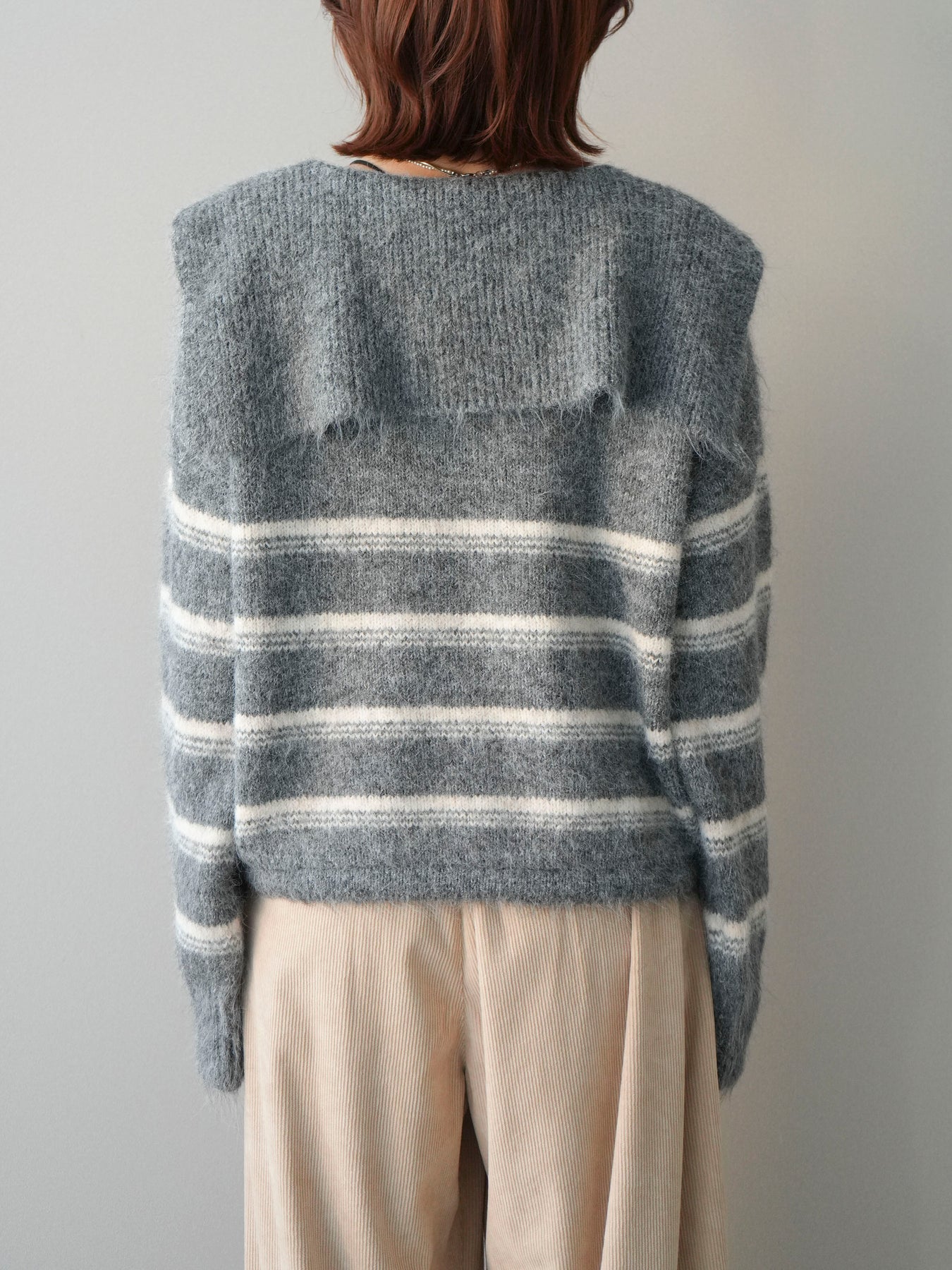 [予約]ハーフジップボーダーニットプルオーバー/gray