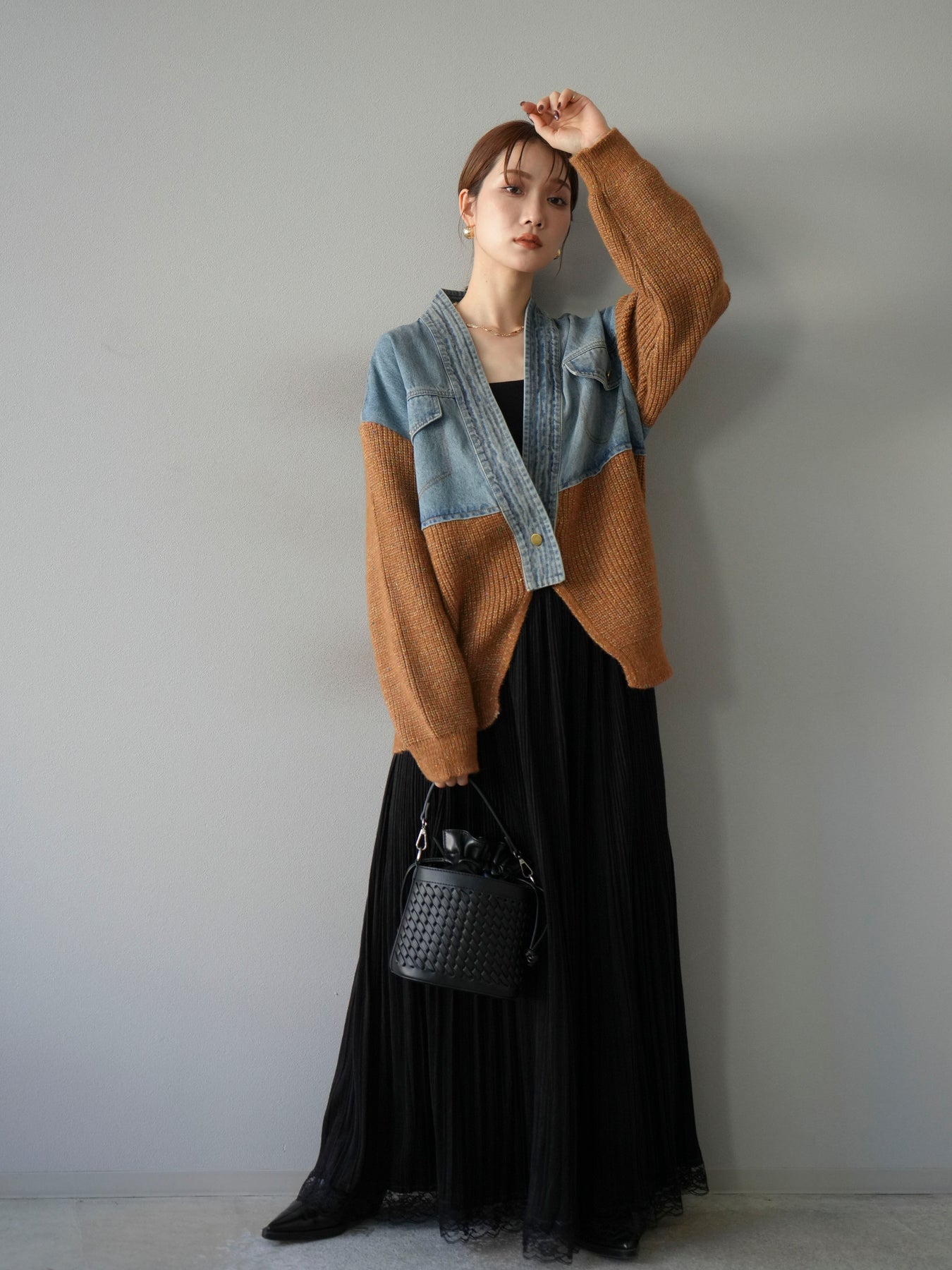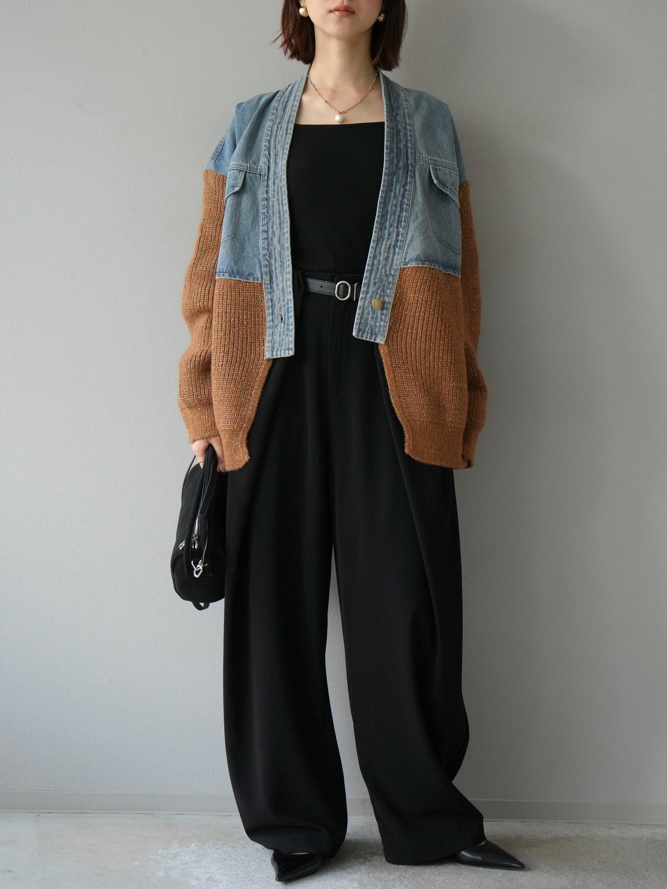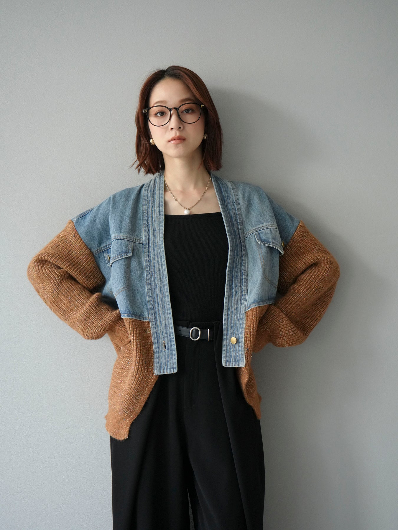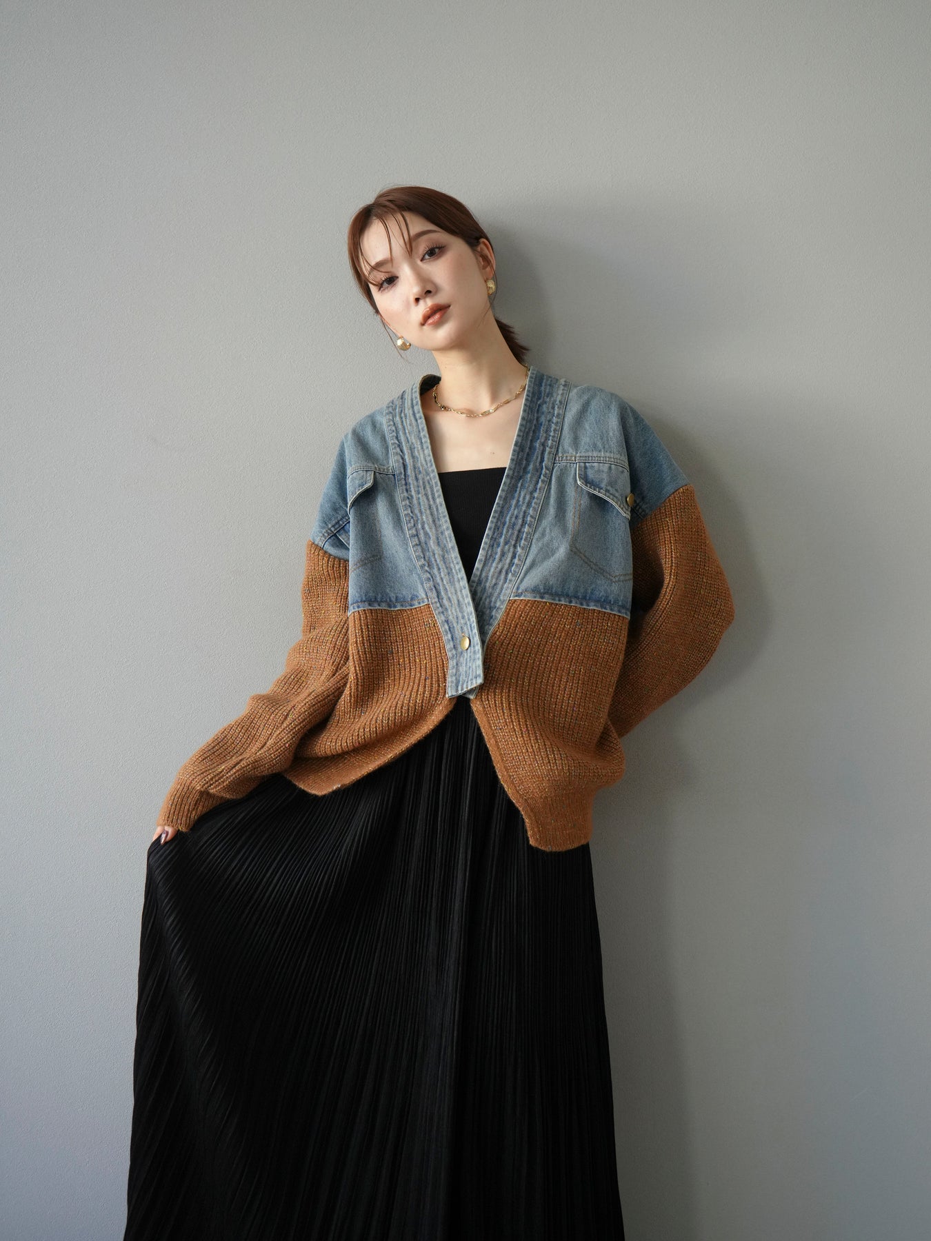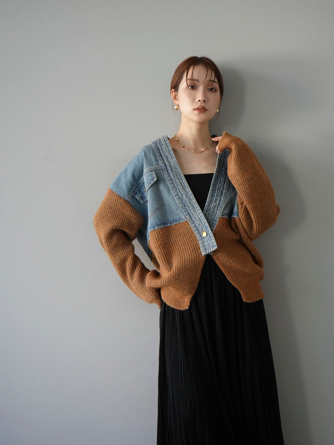 デニムとネップニットを組み合わせた異素材切替デザインが魅力のカーディガン。カジュアルなデニムの風合いと、ネップ糸ならではの温かみのある表情が一枚に凝縮された存在感のあるアイテムです。ゆったりとしたシルエットでリラックス感がありつつ、羽織るだけでコーディネートがぐっとこなれた印象に。パンツと合わせてラフに、スカートやワンピースに羽織ってもバランス良くまとまります。デイリーから休日のお出かけまで幅広く活躍する主役級の一着です。 ※ボトムス、キャミソール(インナー)以外の商品は一律でインナーは付属していません。