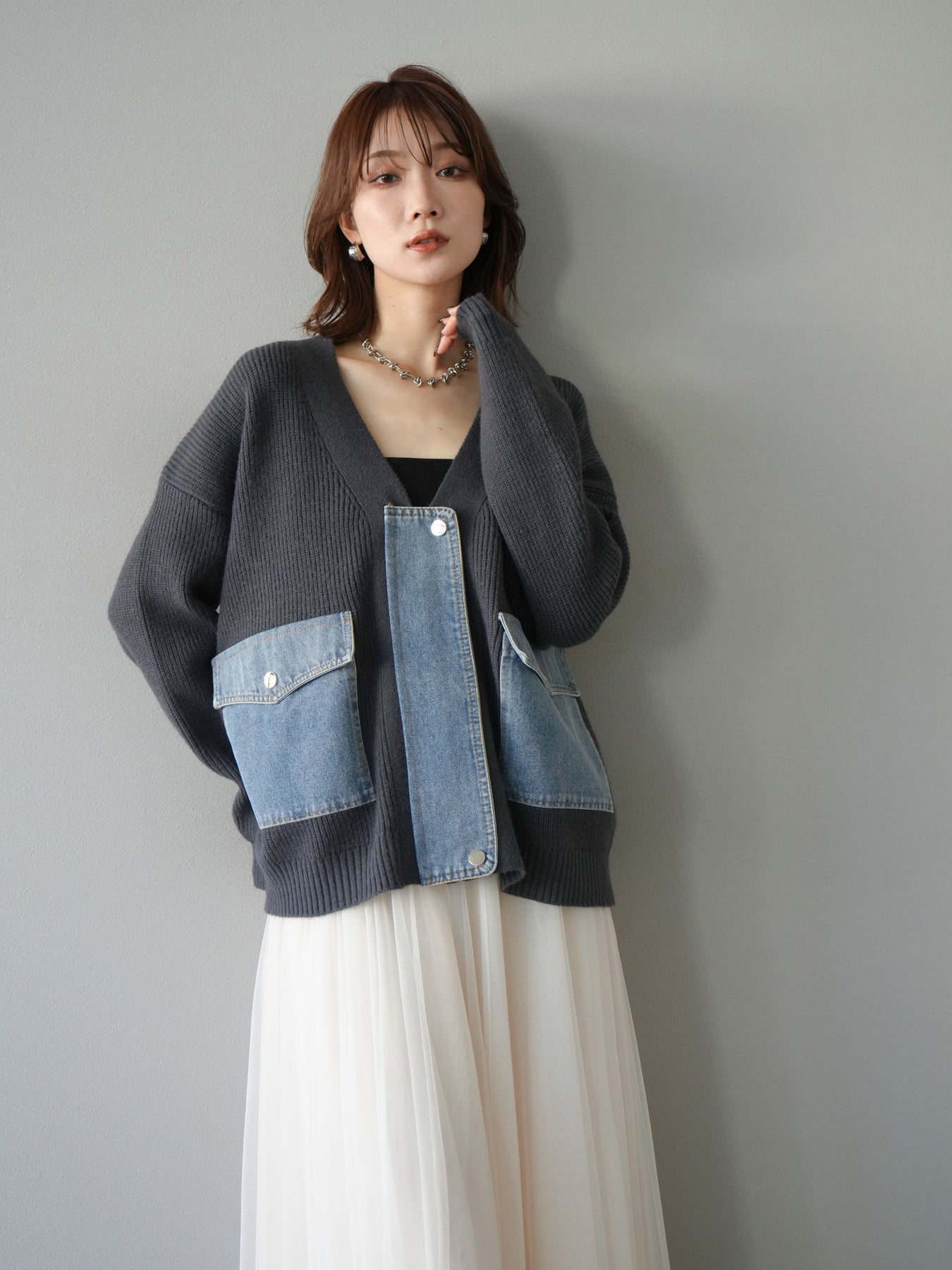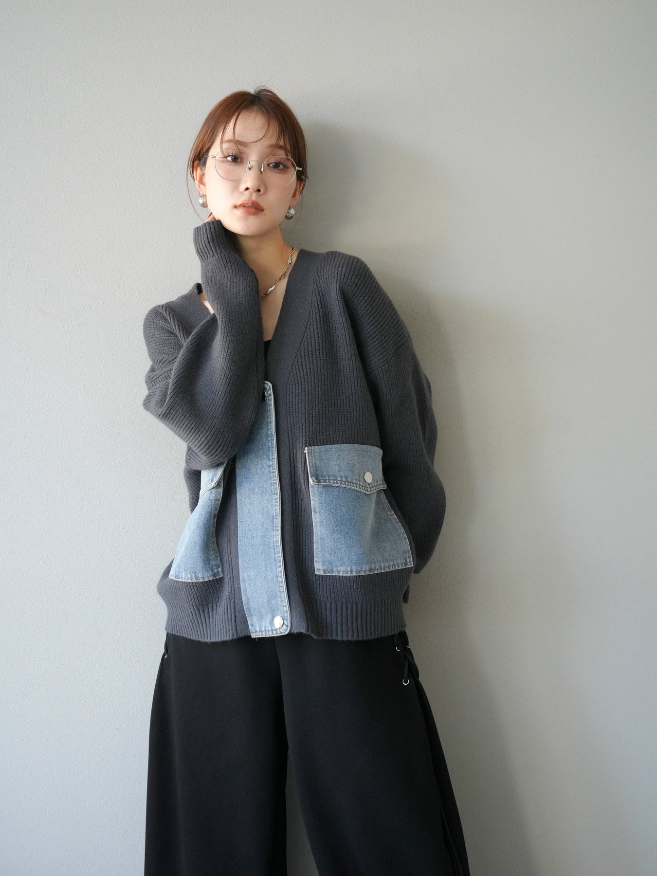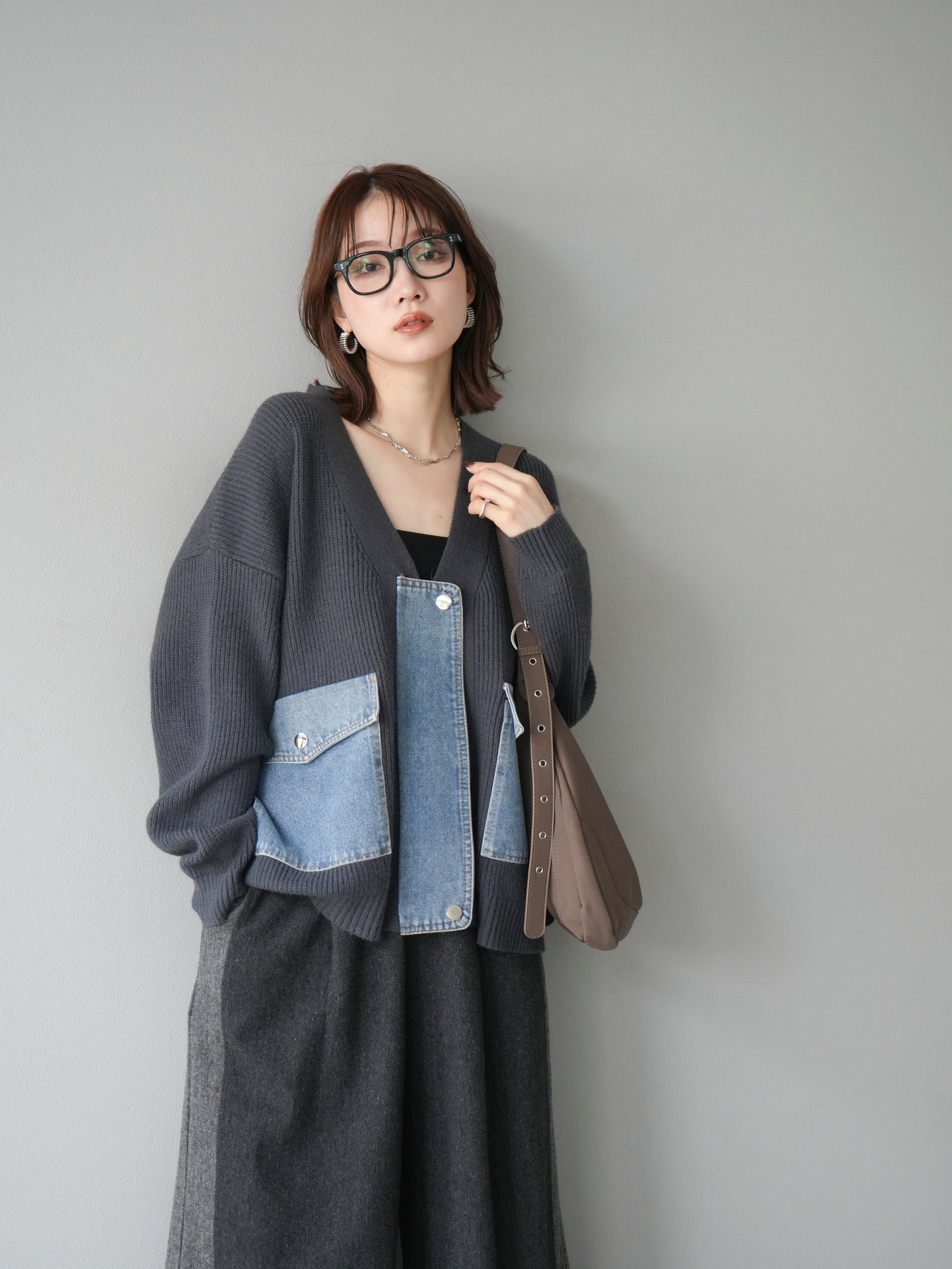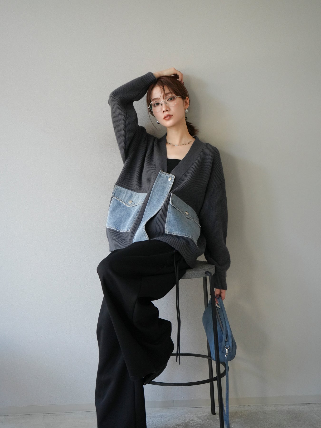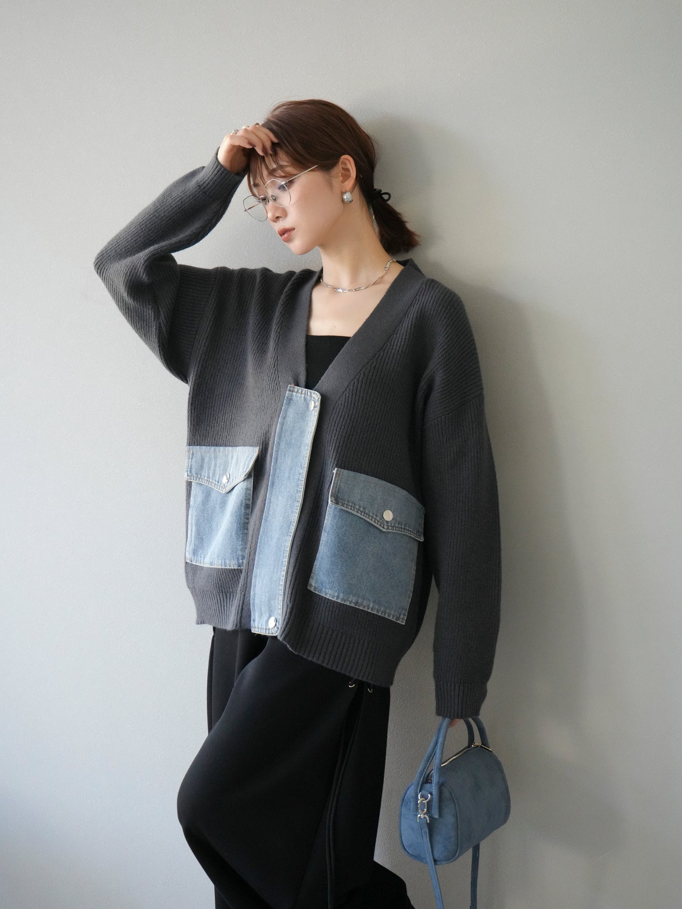 [予約]デニムポケットデザインニットカーディガン/チャコール