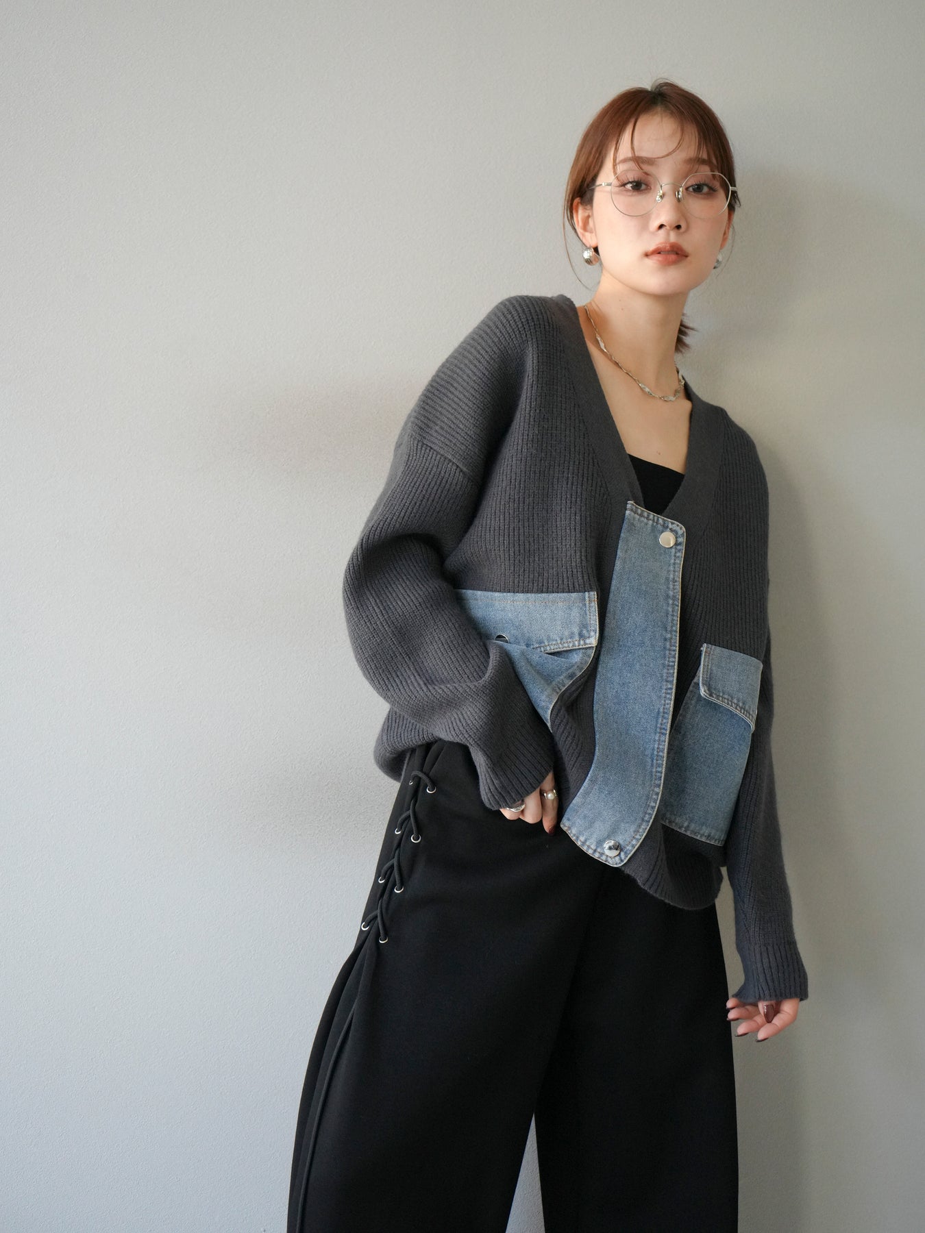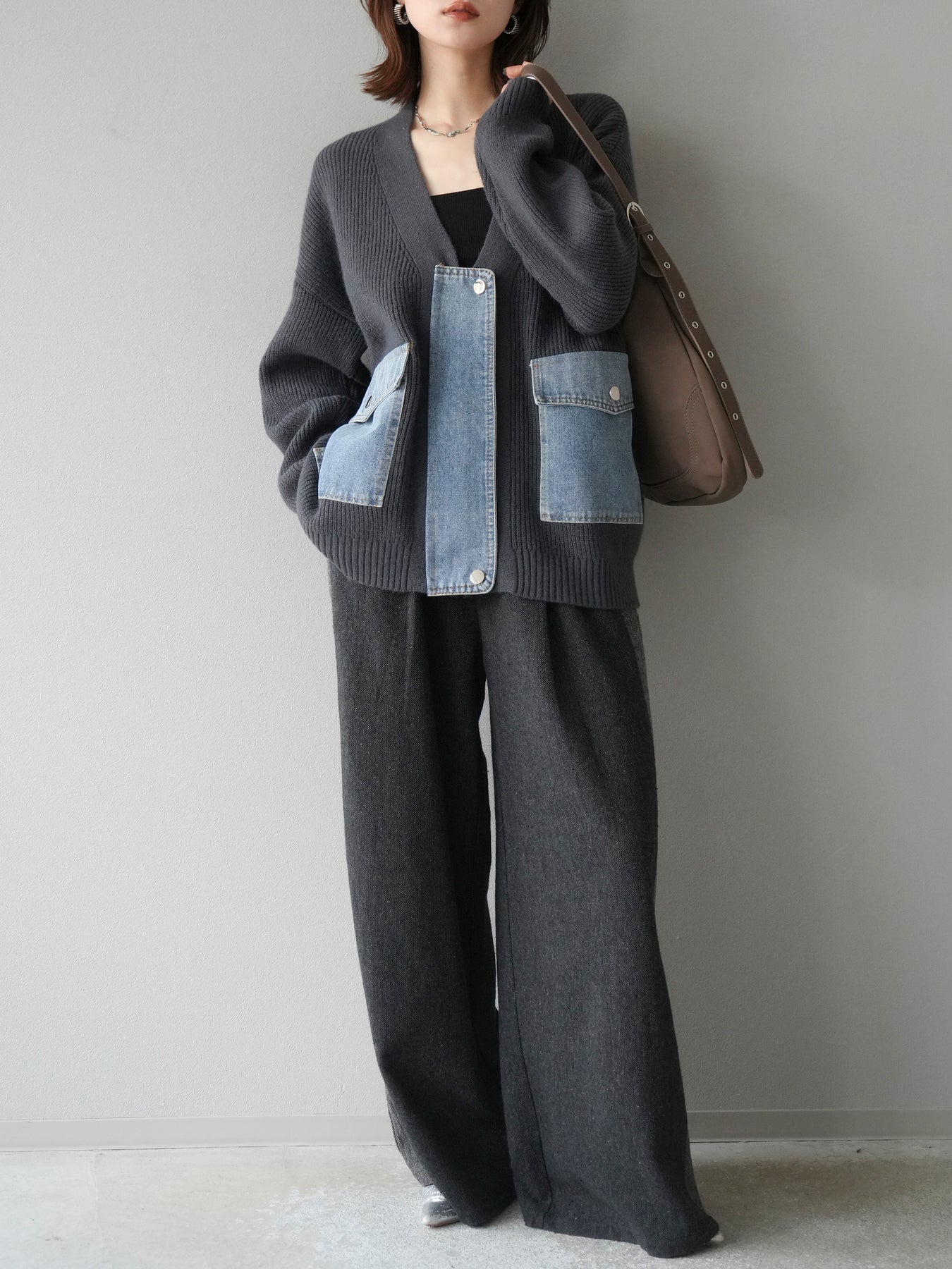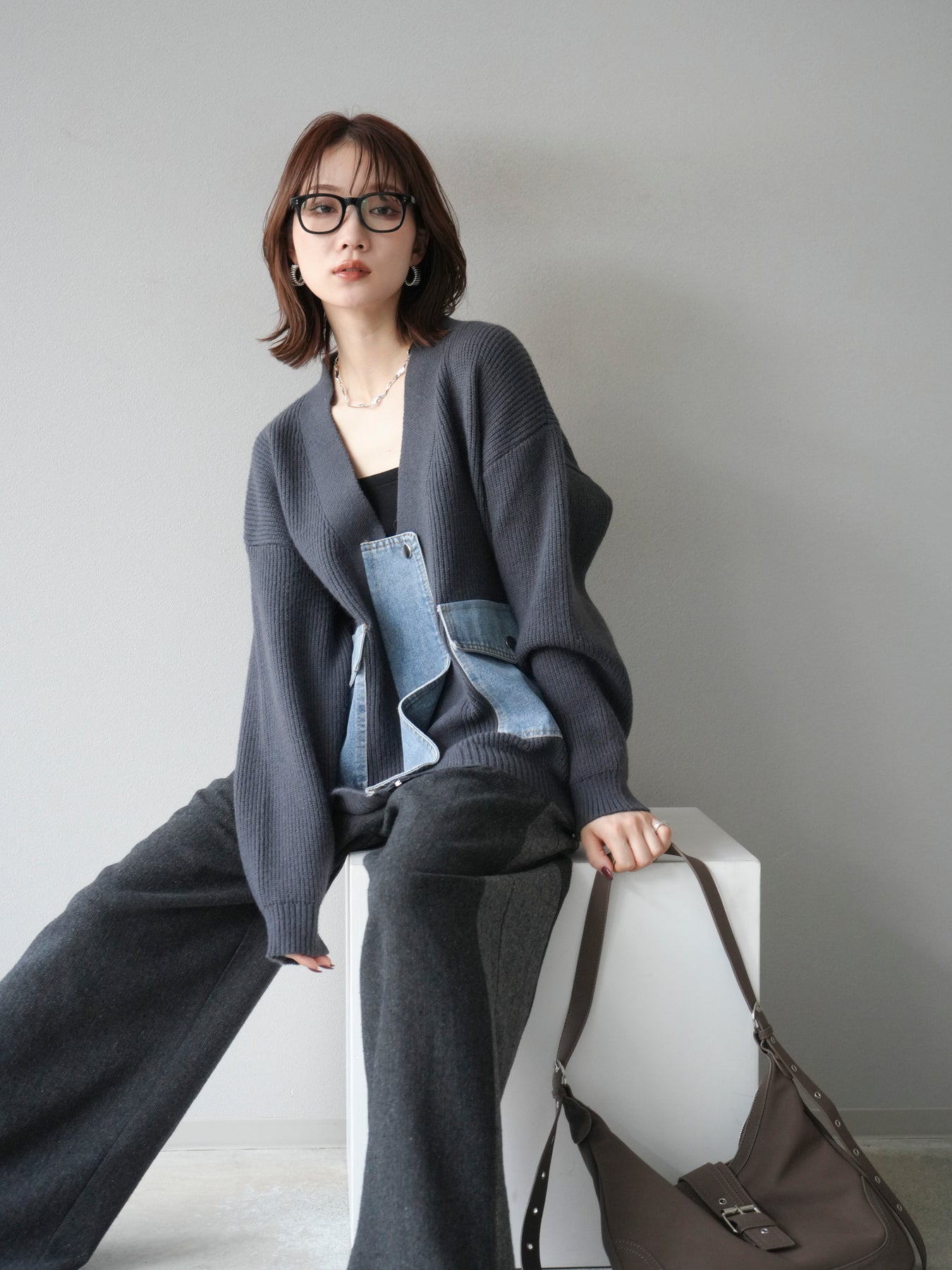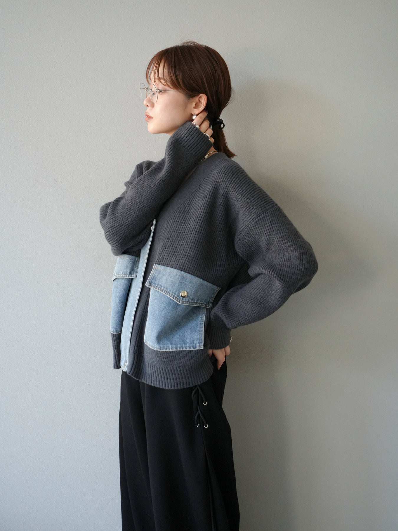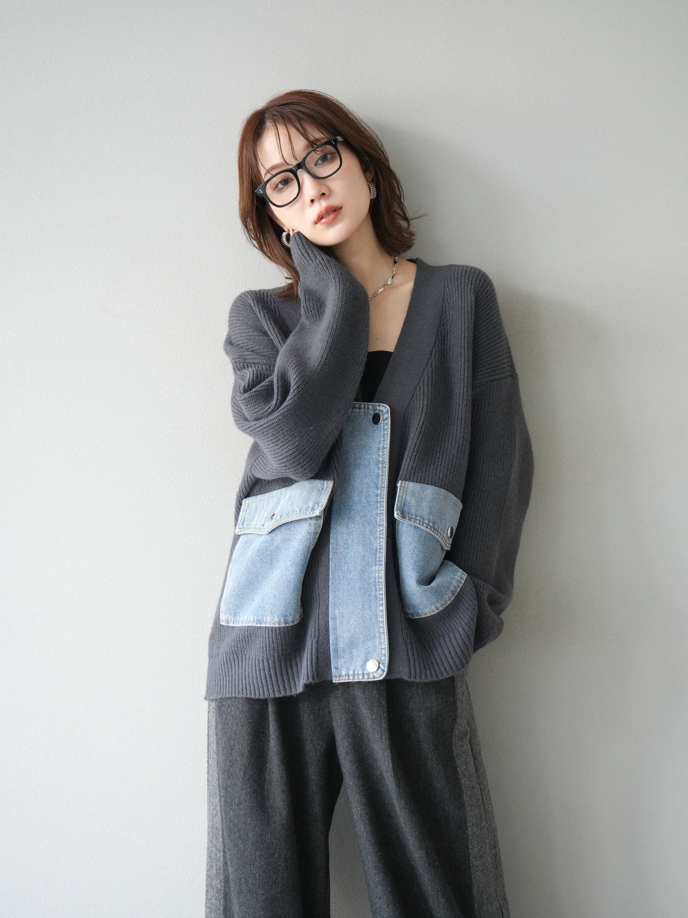 [予約]デニムポケットデザインニットカーディガン/チャコール