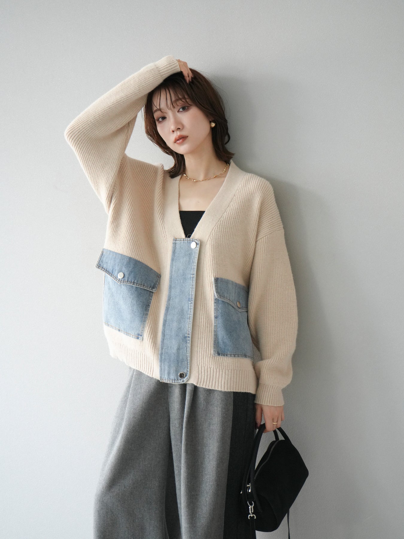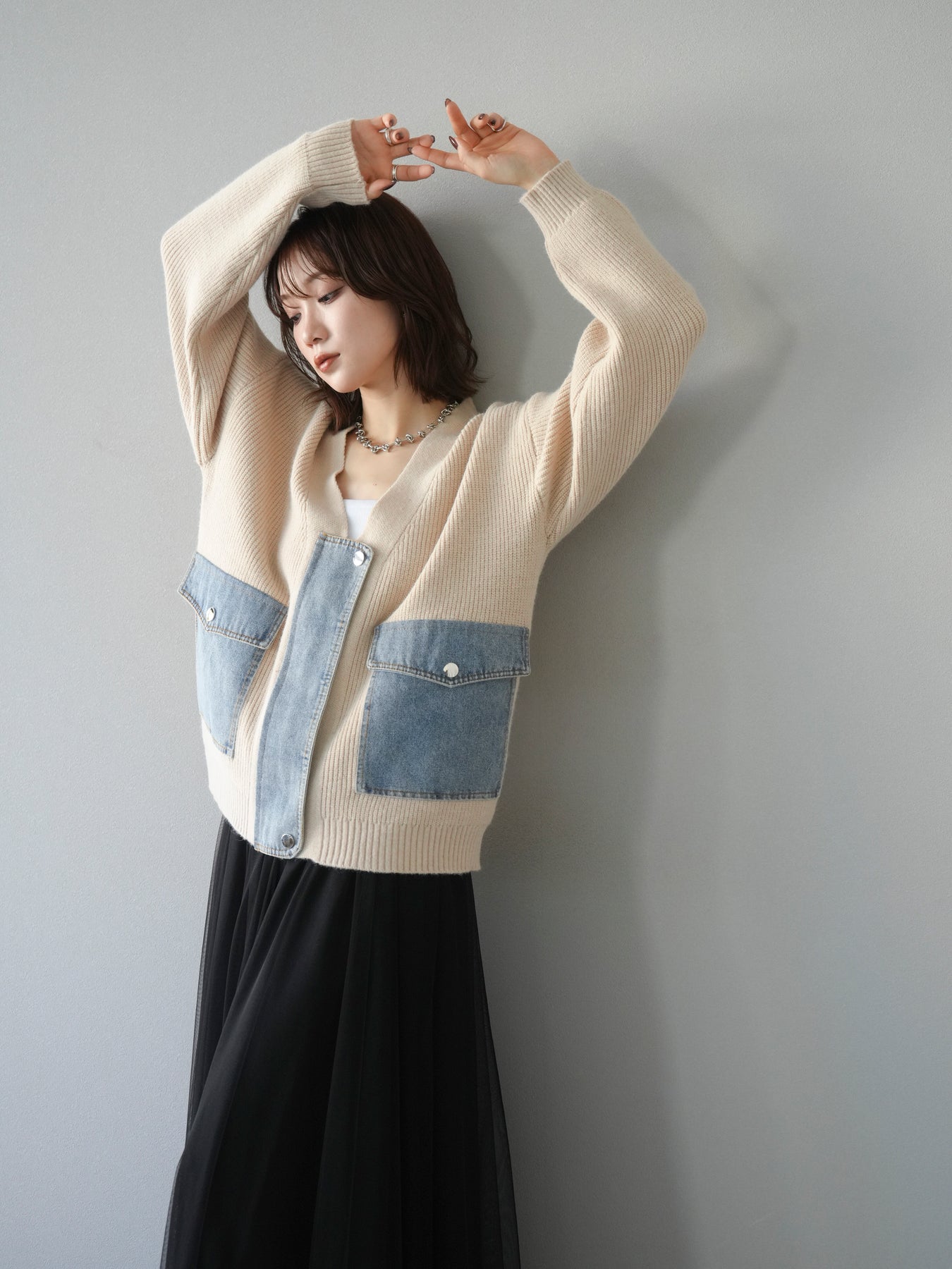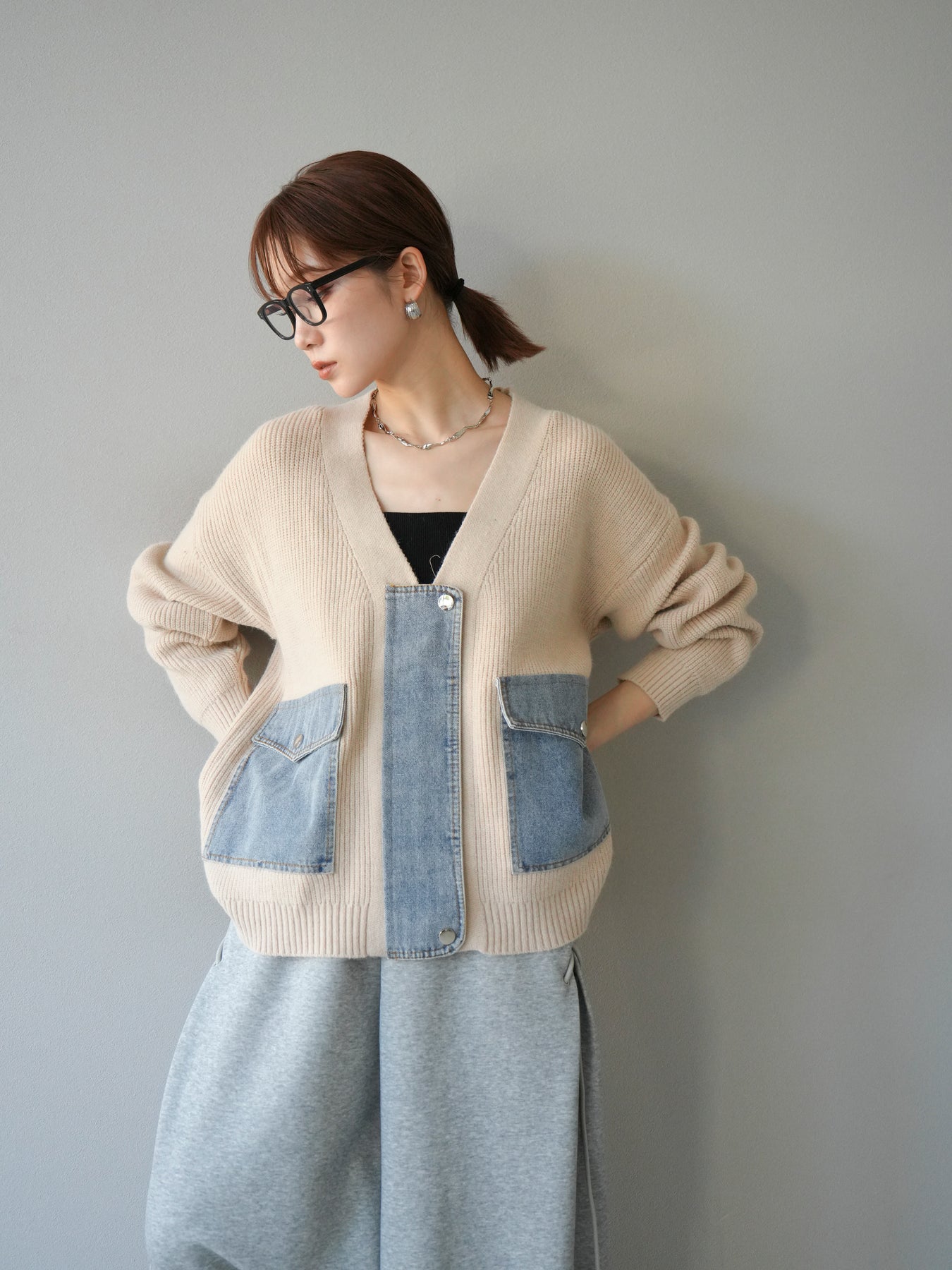 [予約]デニムポケットデザインニットカーディガン/アイボリー