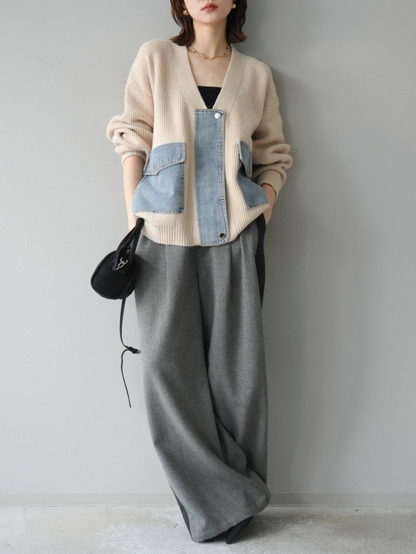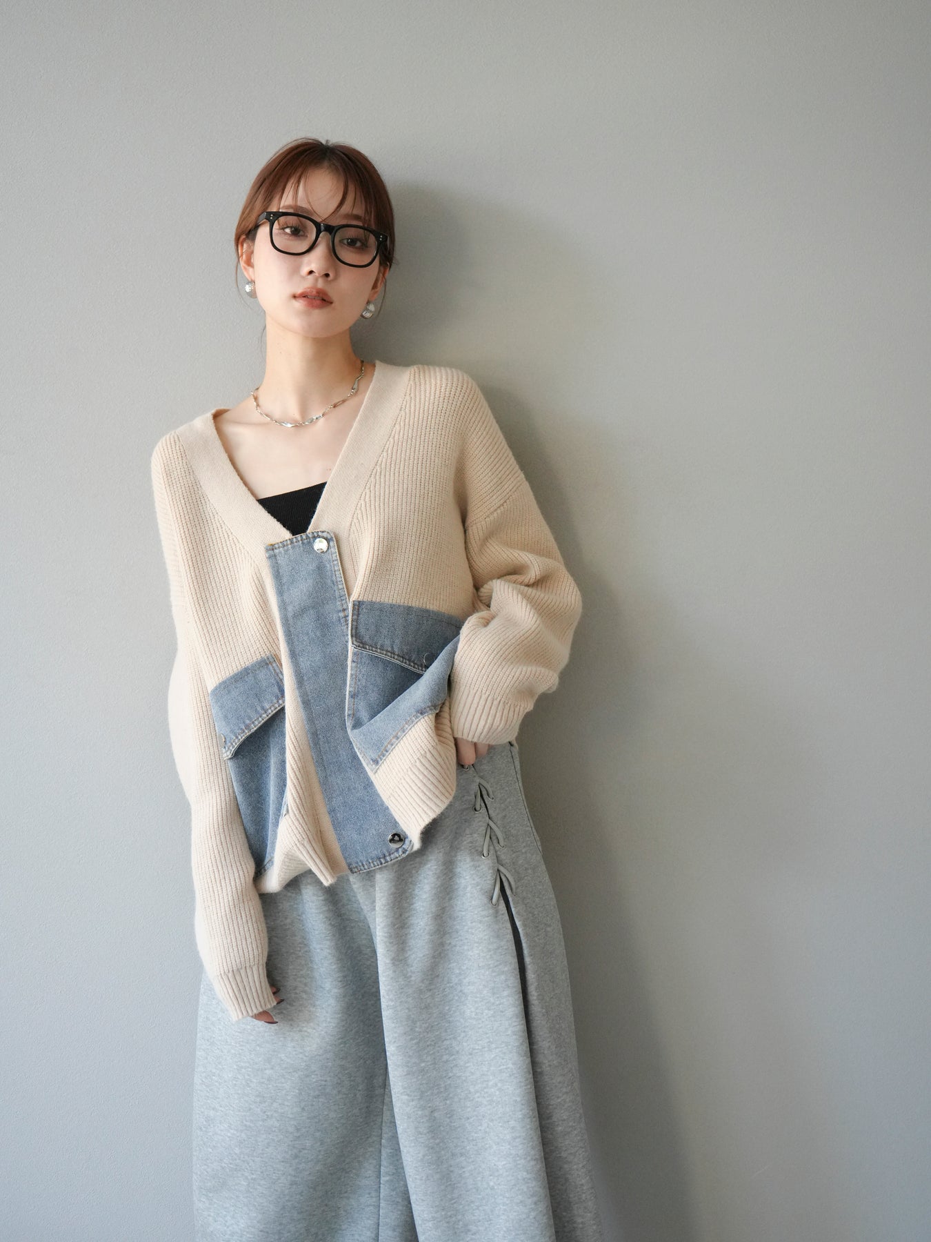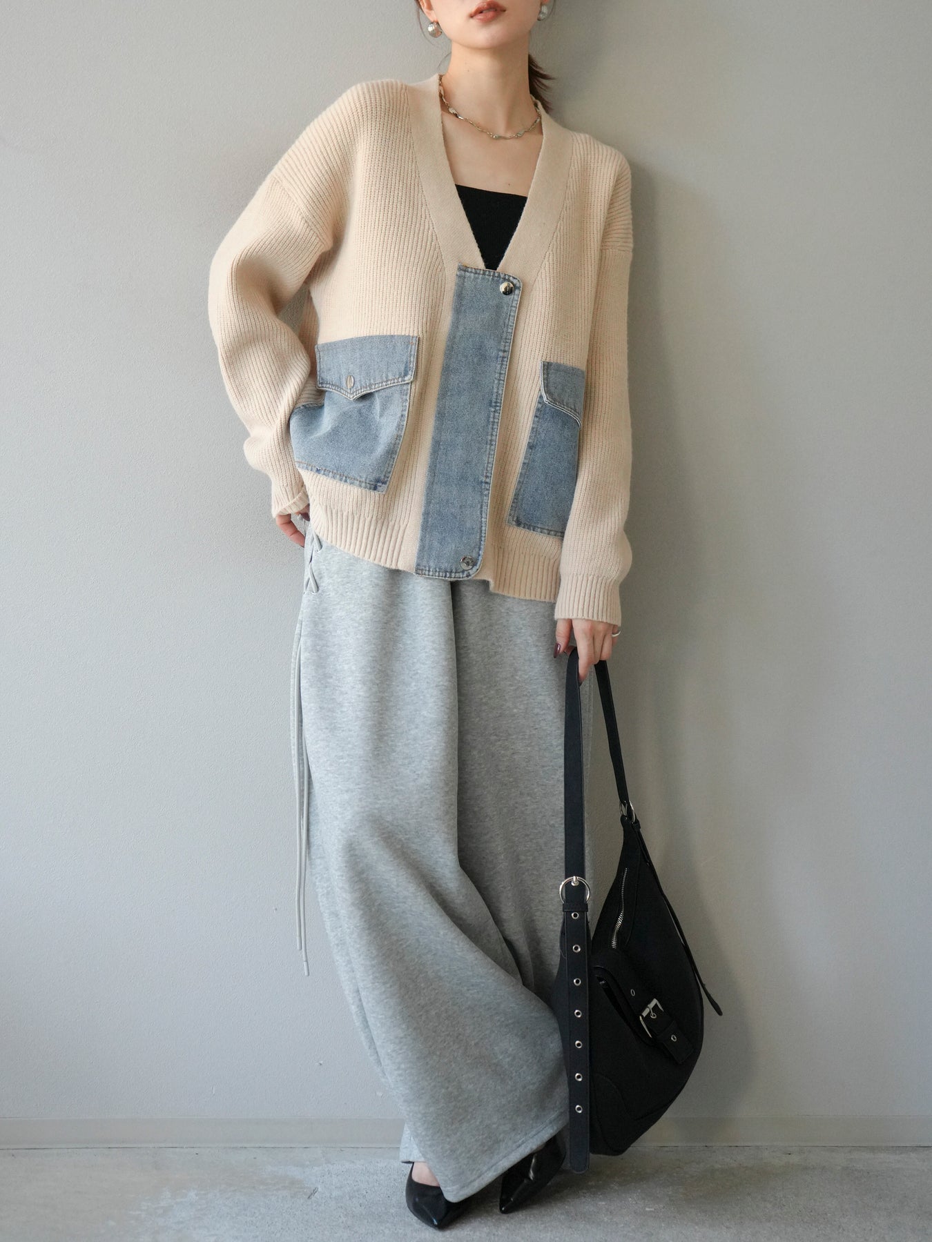 [予約]デニムポケットデザインニットカーディガン/アイボリー