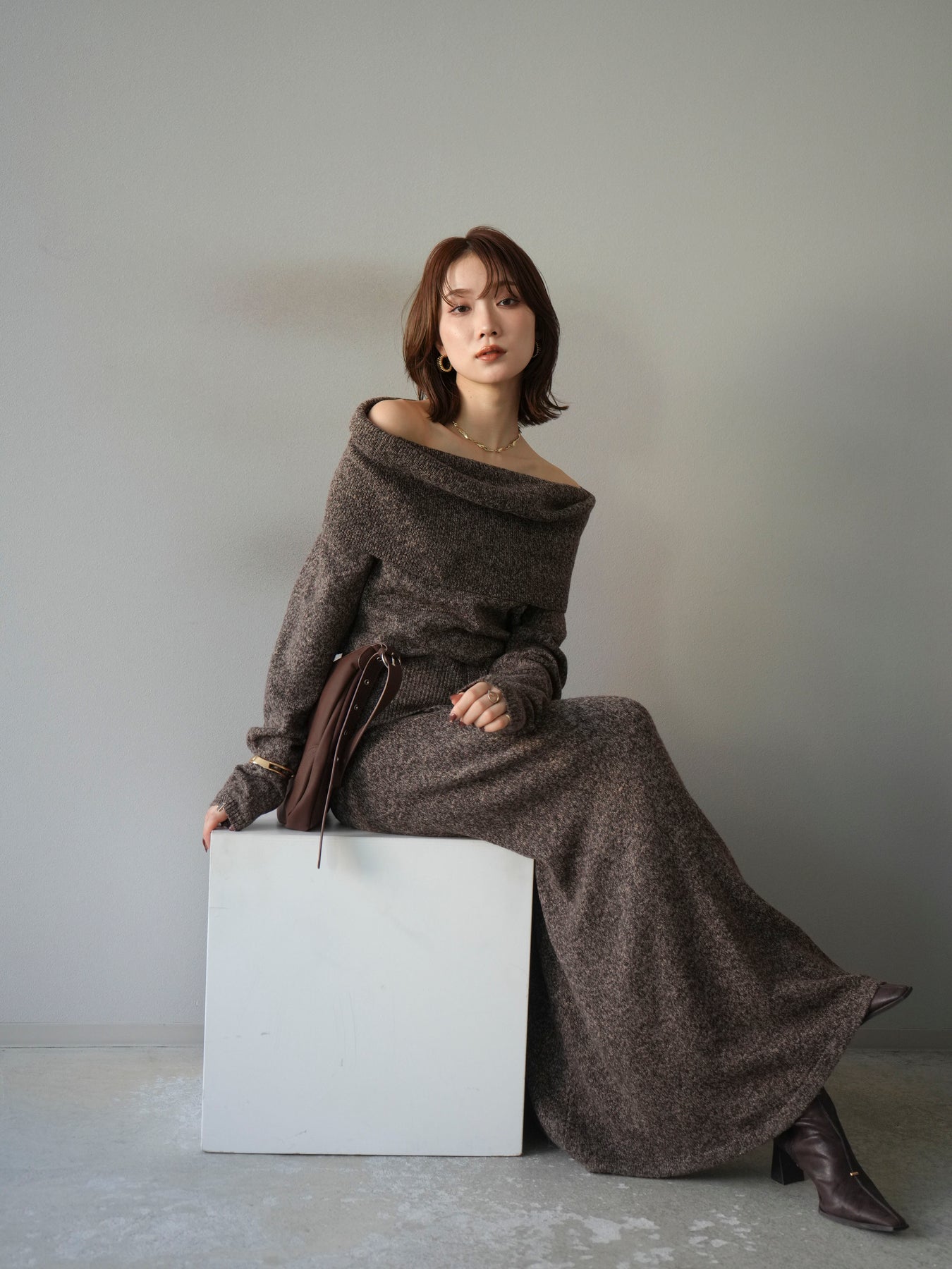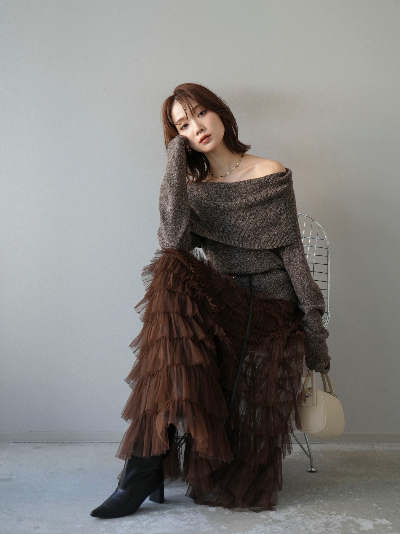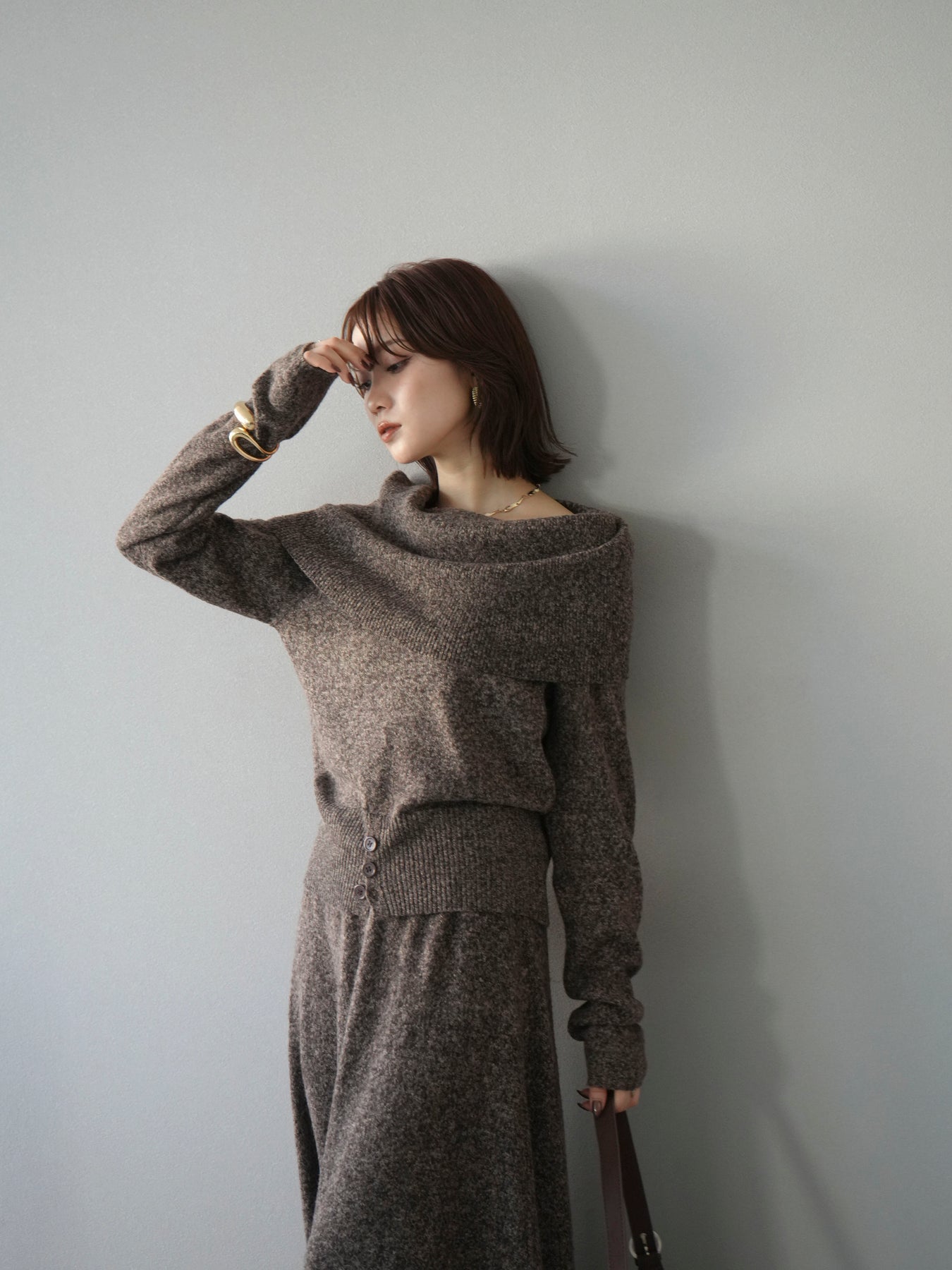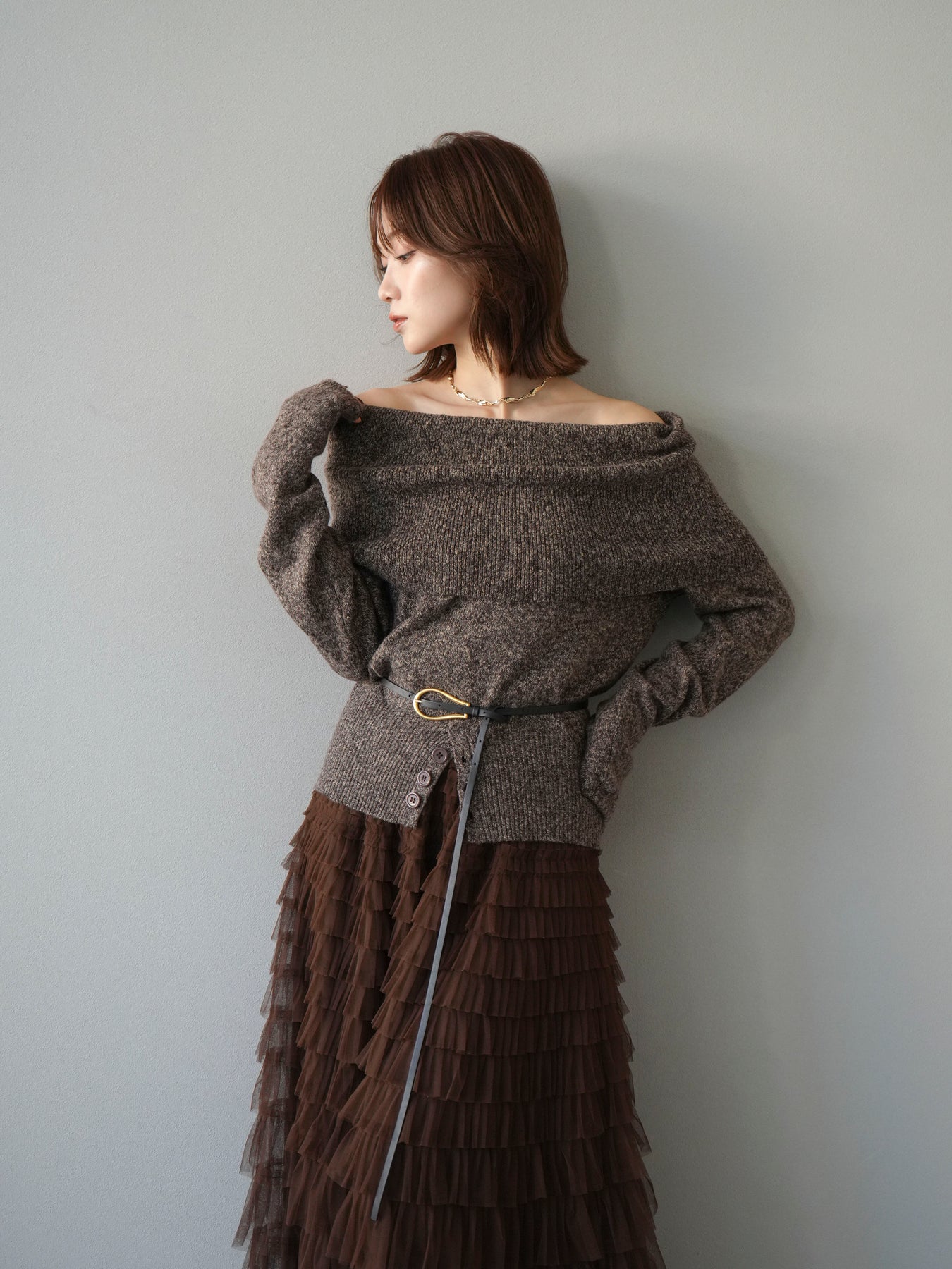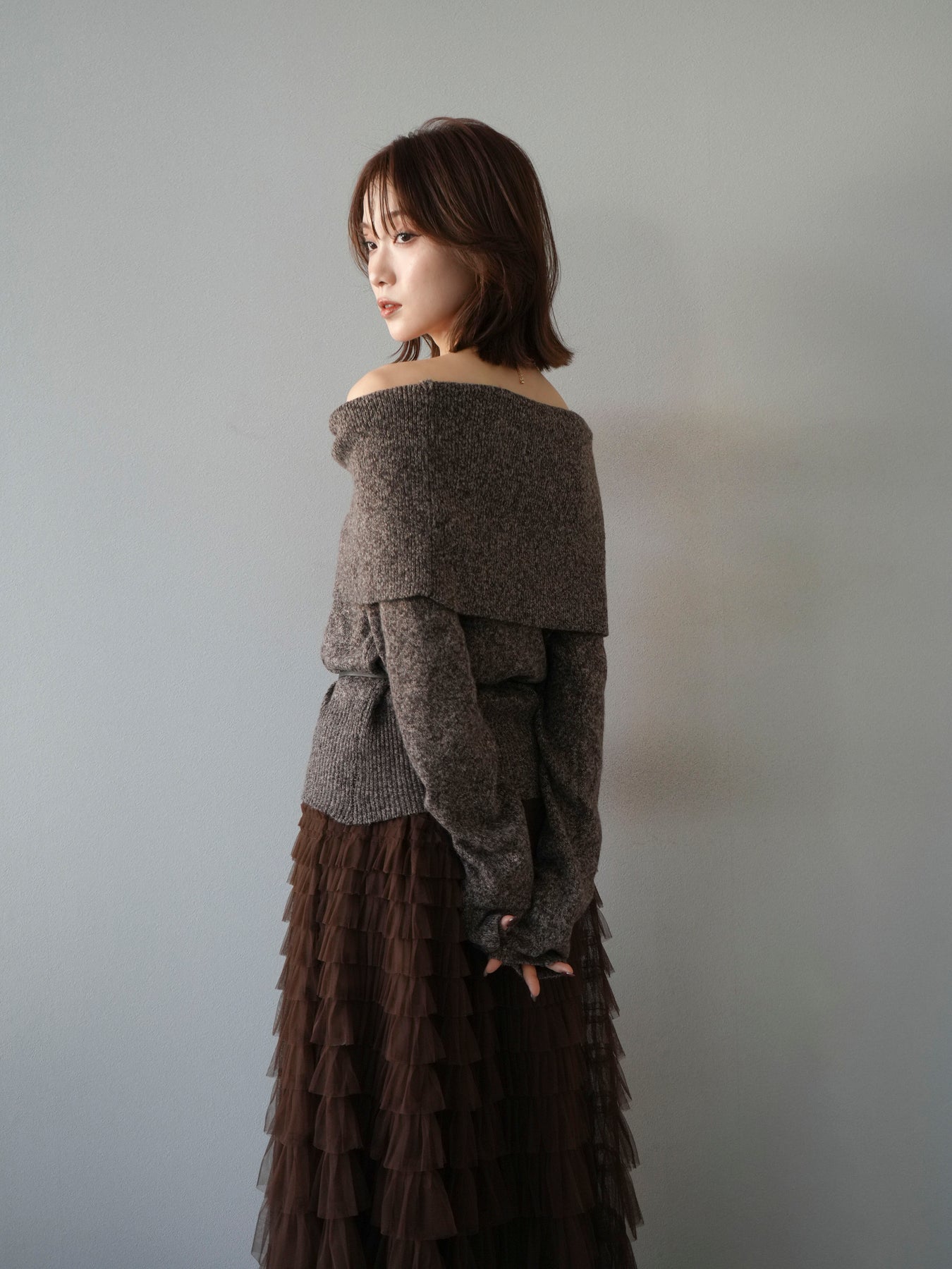 [予約]ミックスヤーンオフショルニットプルオーバー/ブラウン