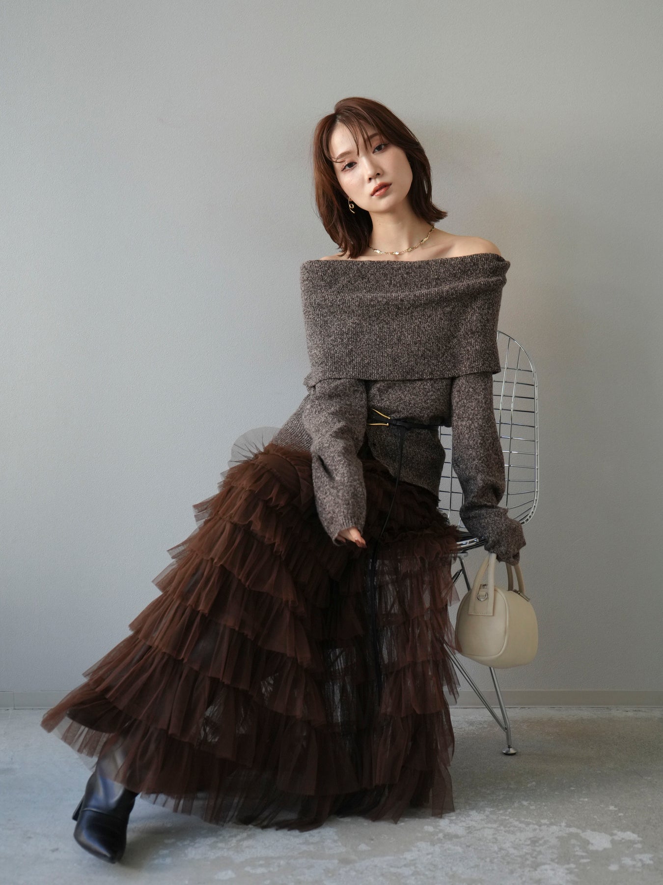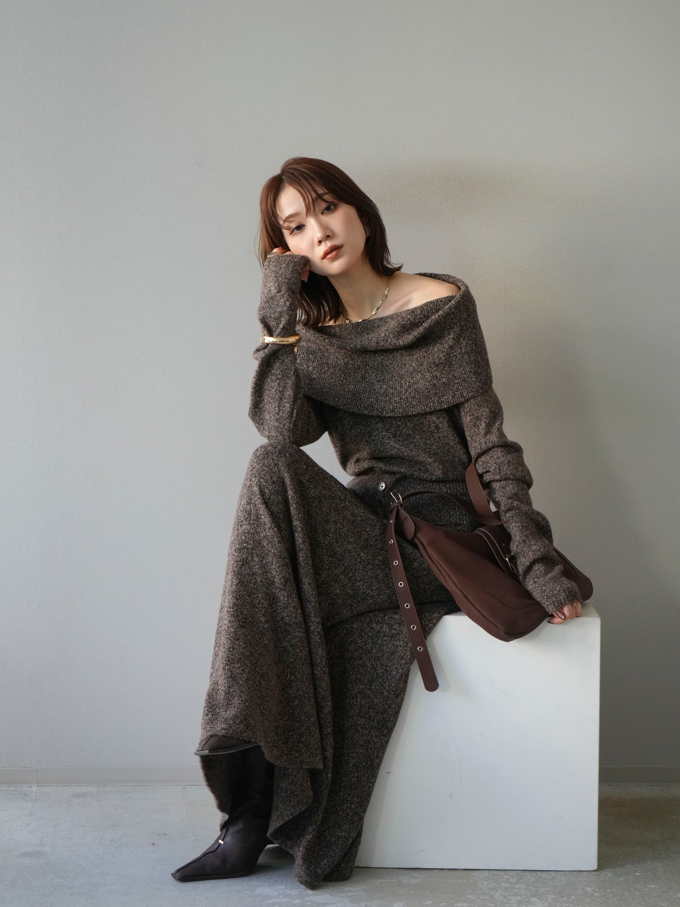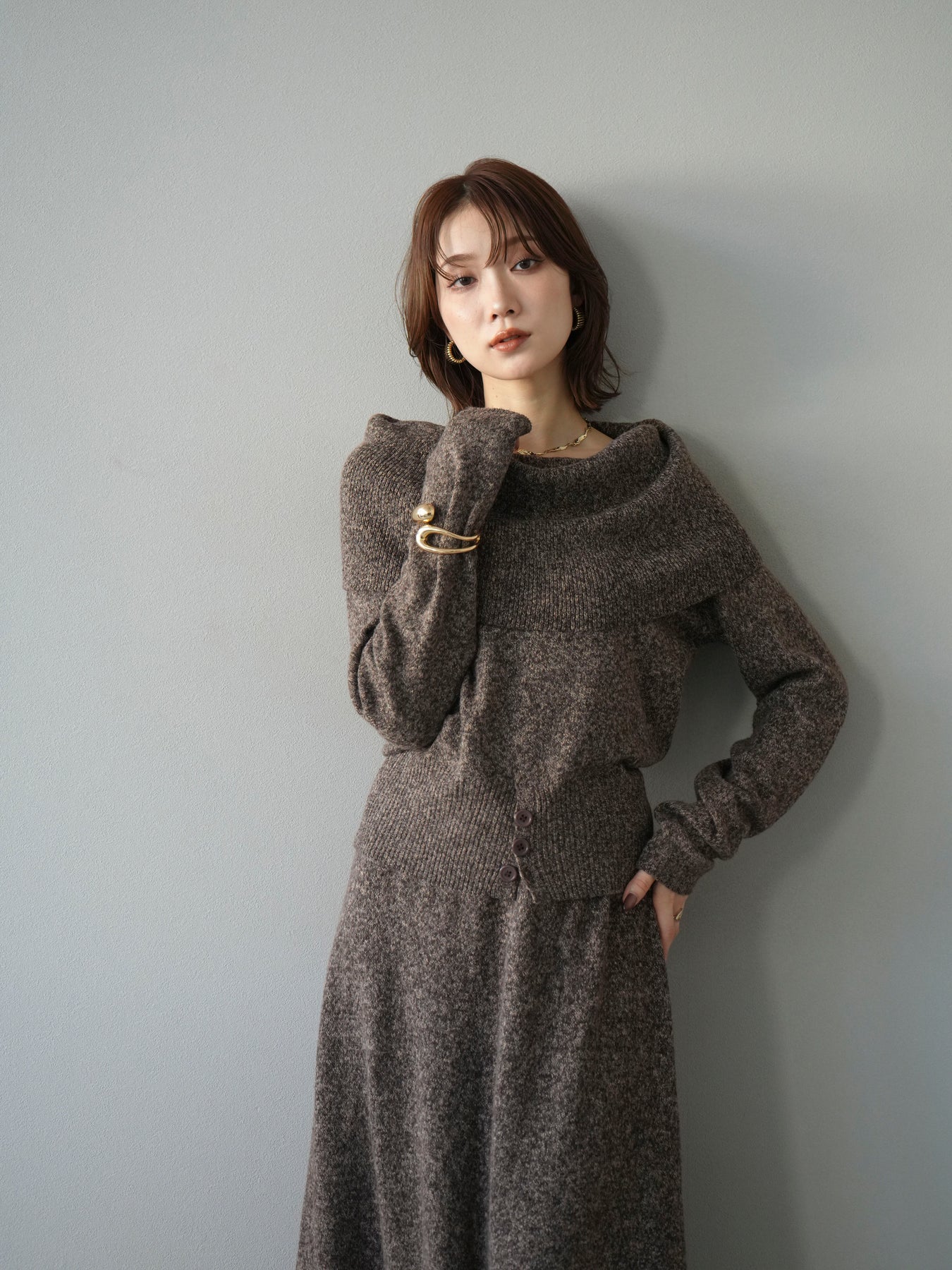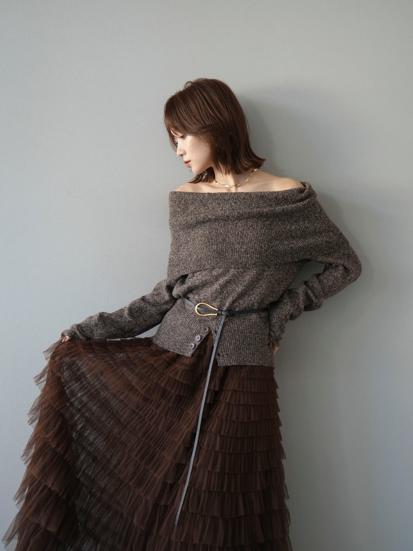 [予約]ミックスヤーンオフショルニットプルオーバー/ブラウン