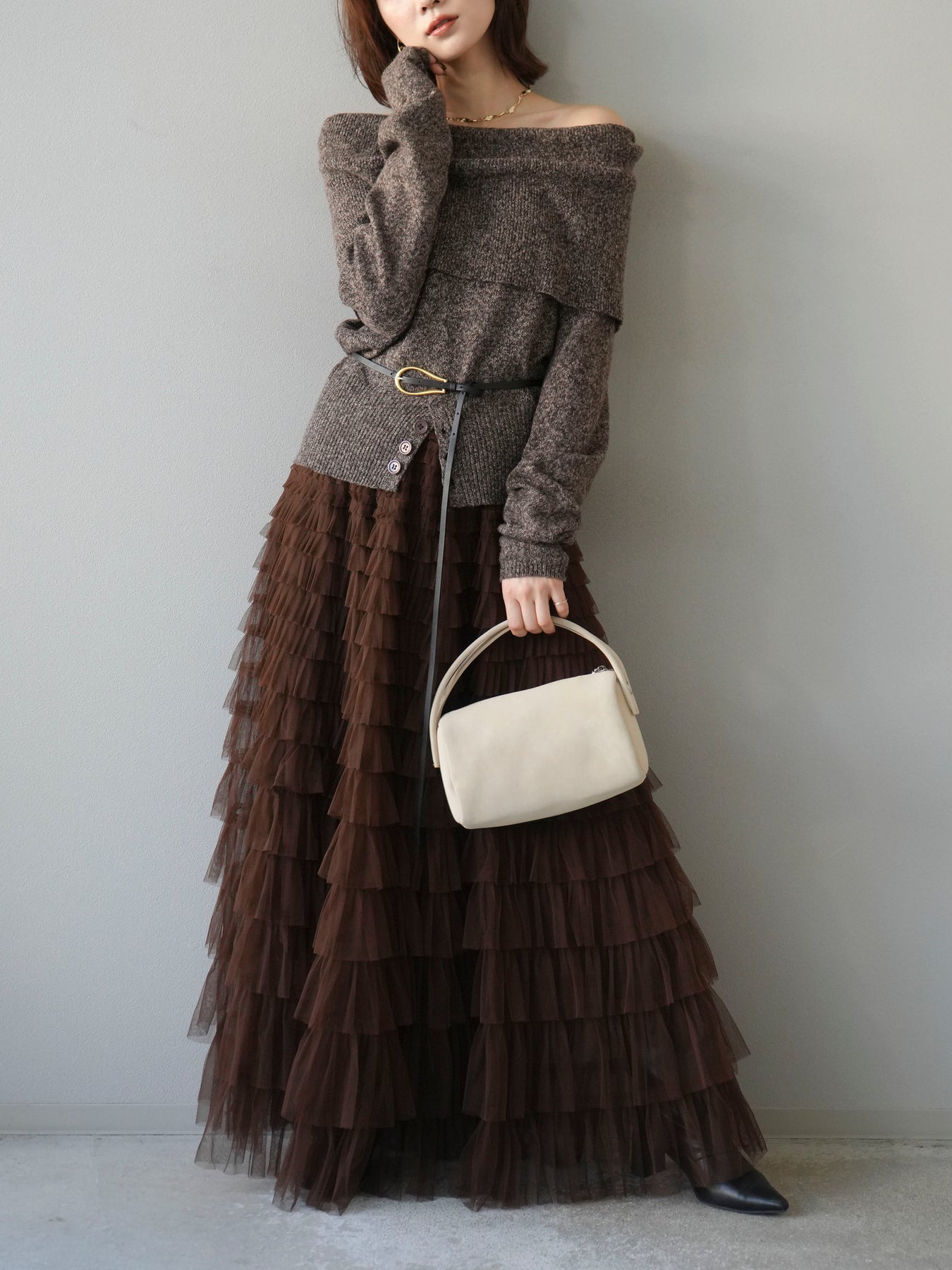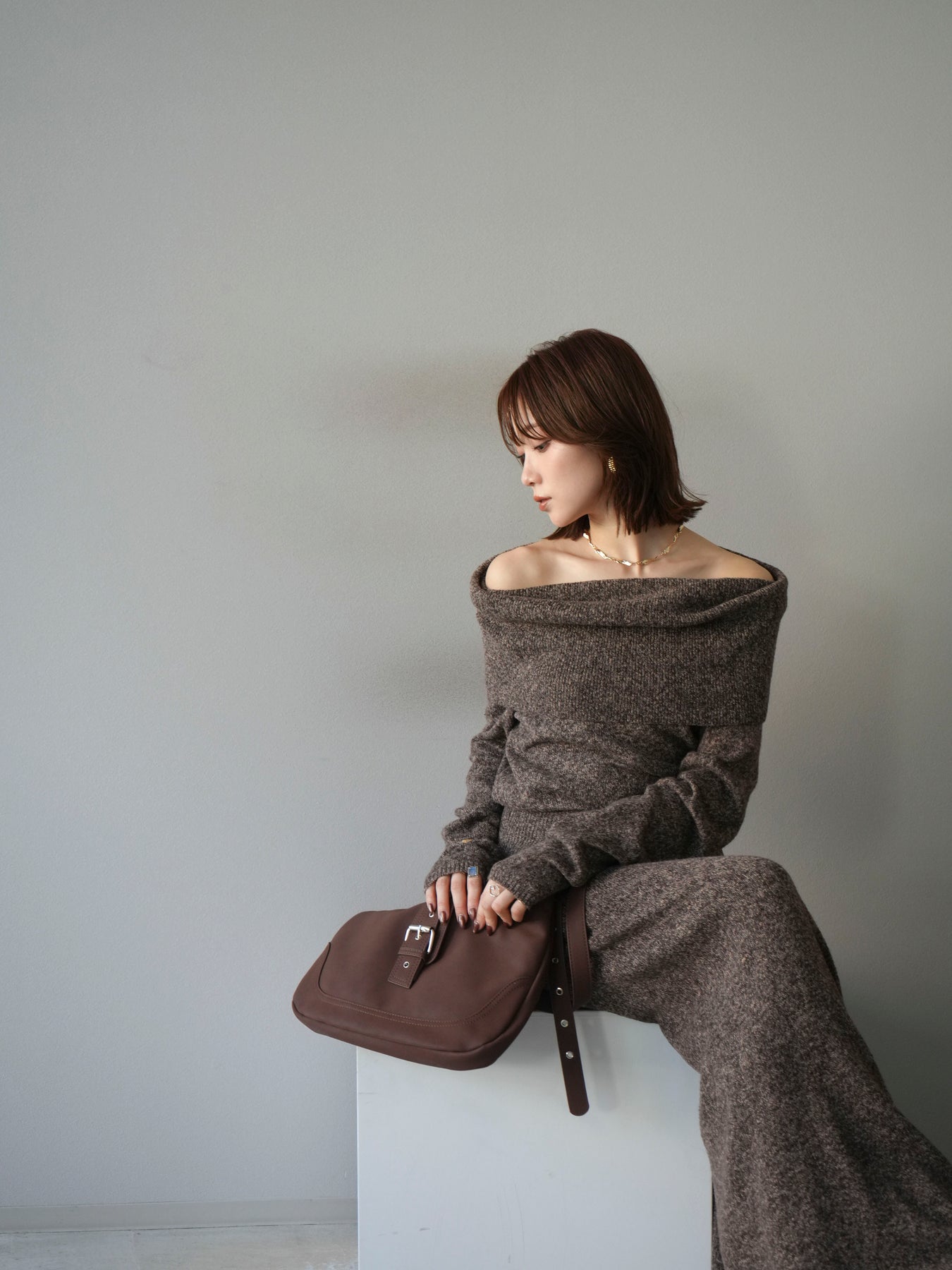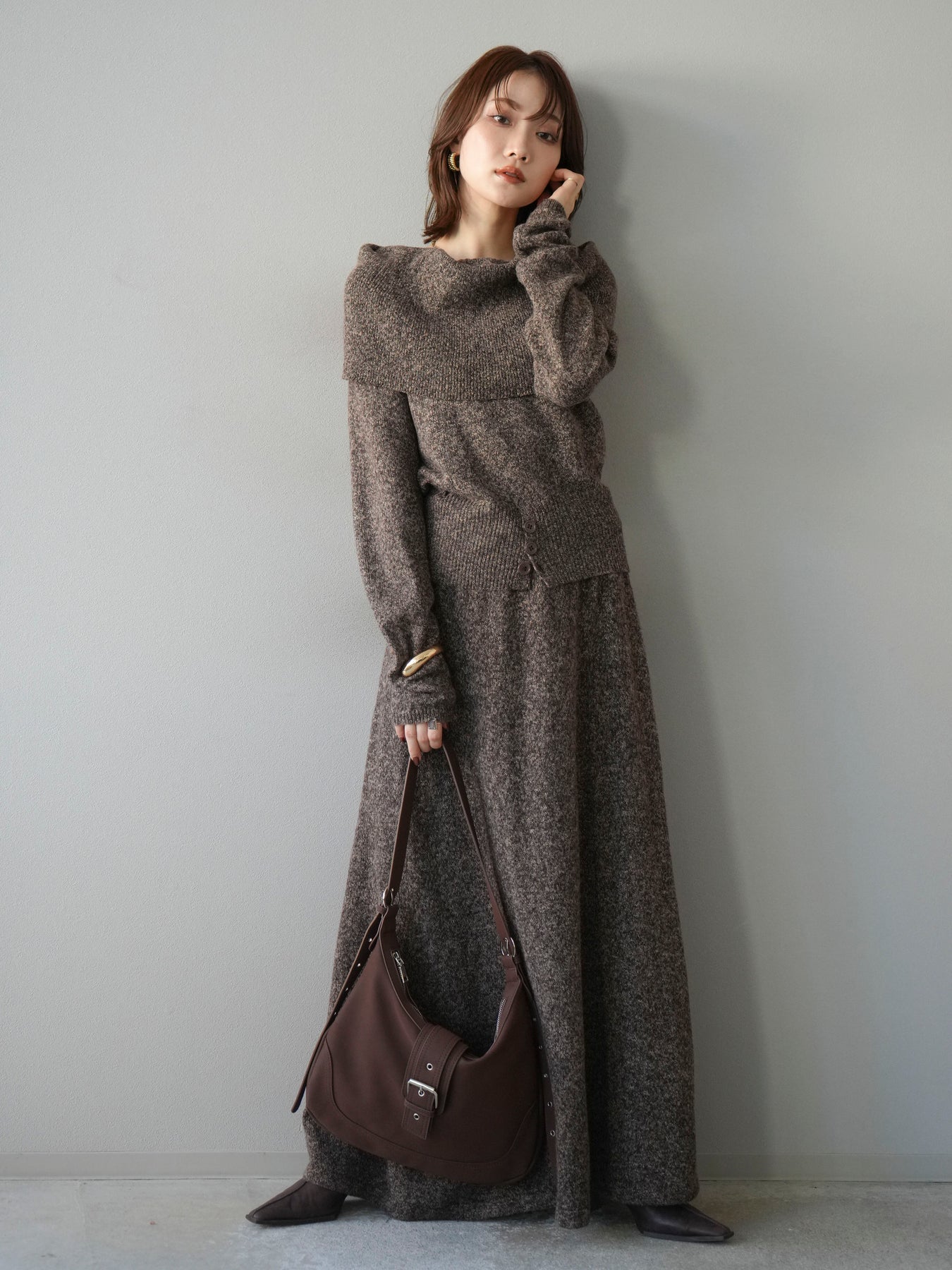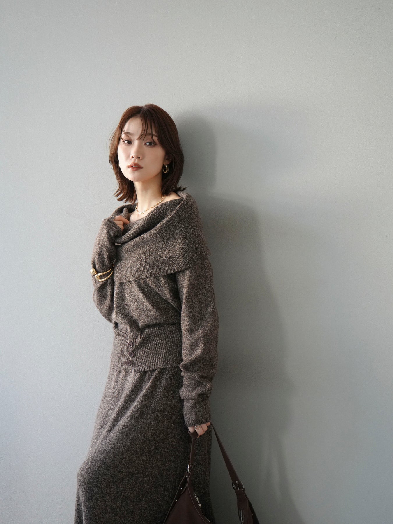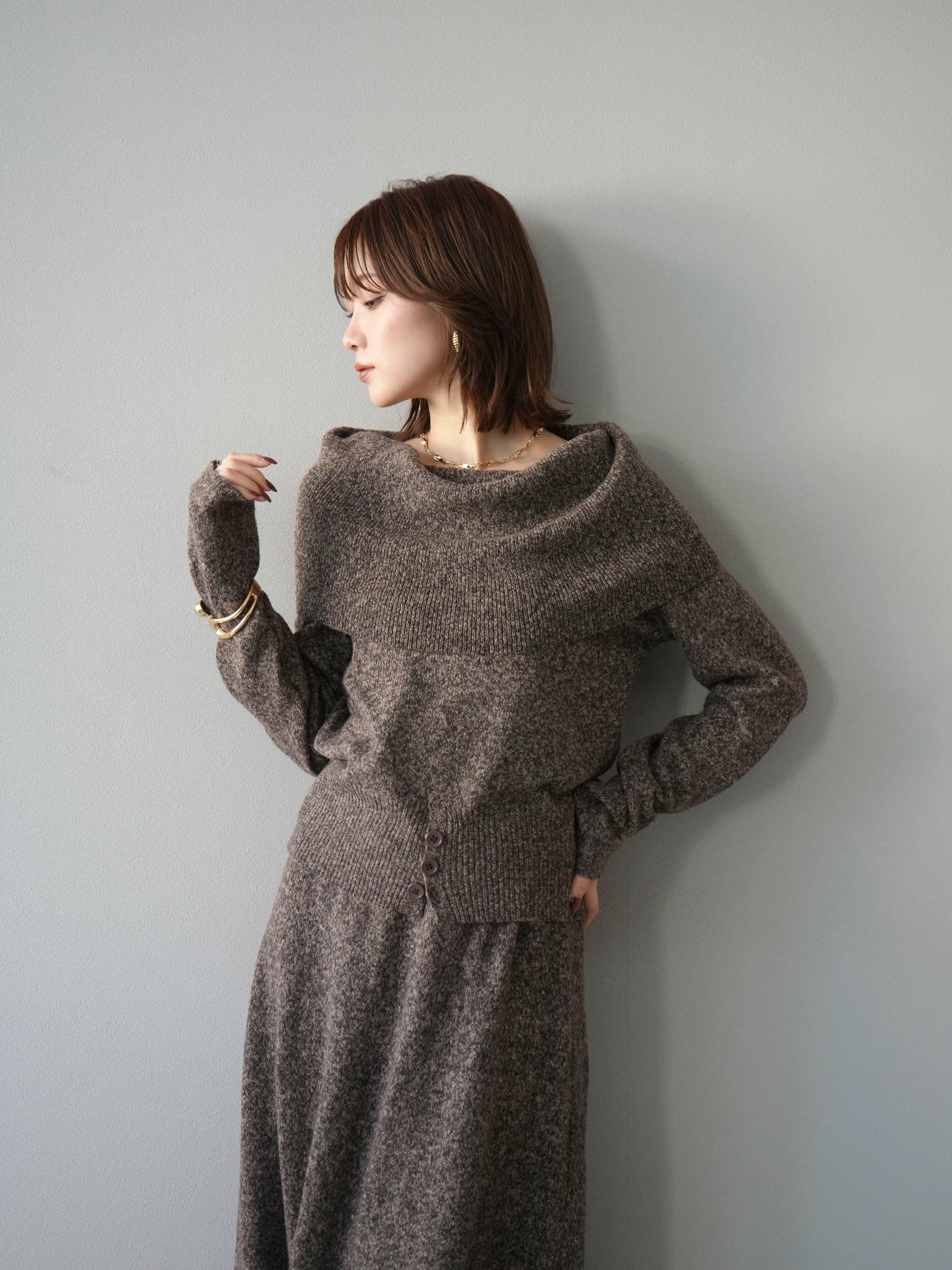 [予約]ミックスヤーンオフショルニットプルオーバー/ブラウン