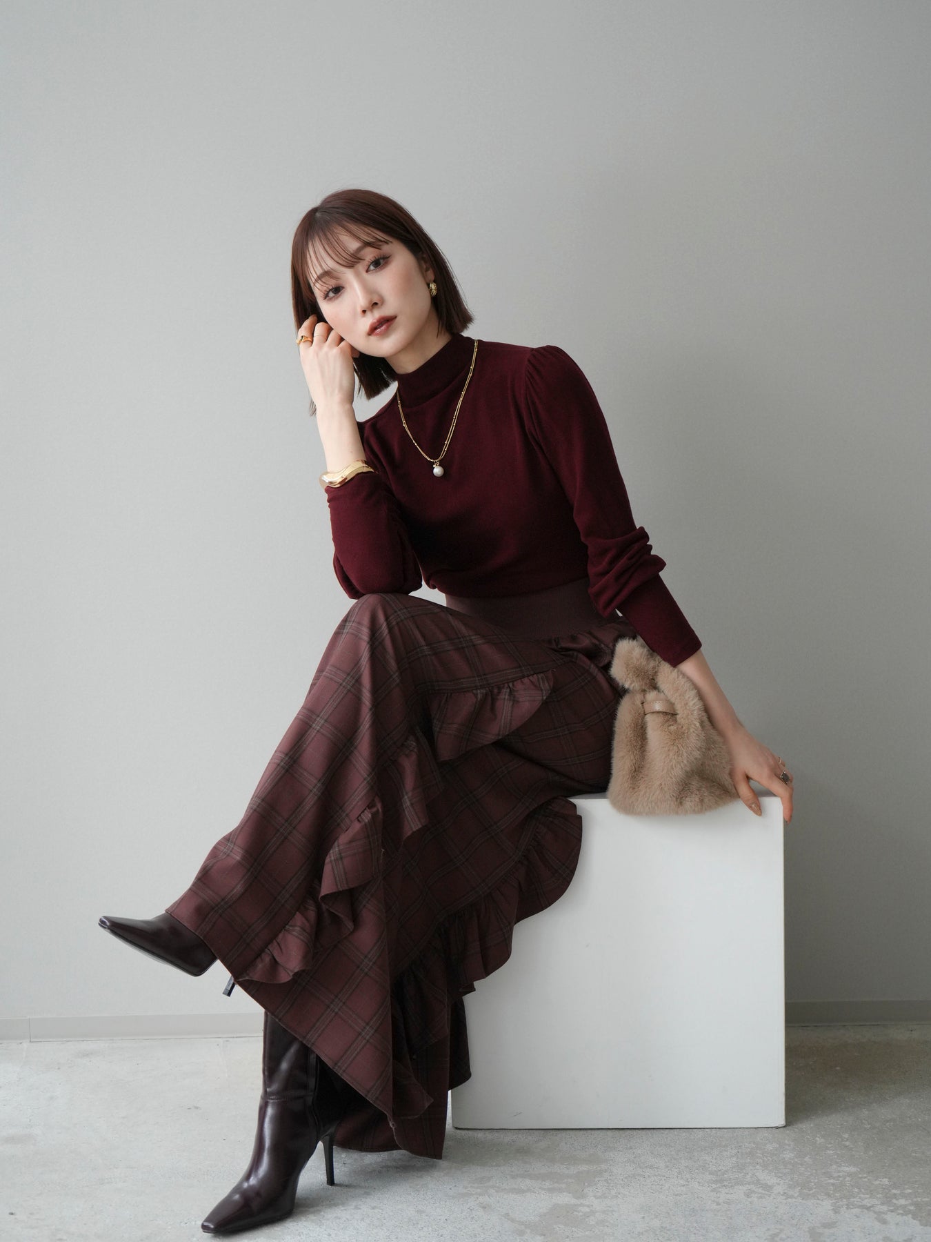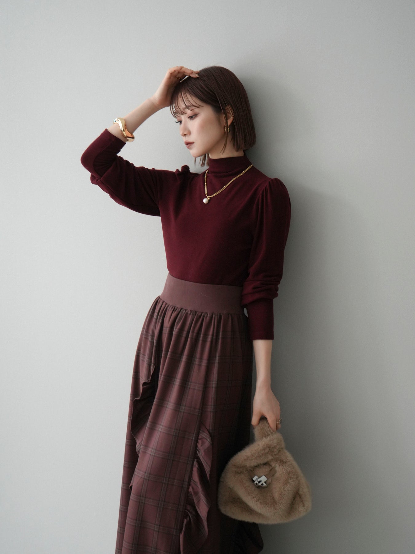 [予約]プチネックパワーショルダー起毛トップス/bordeaux