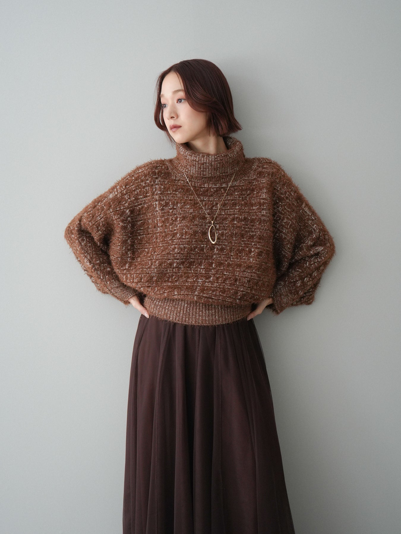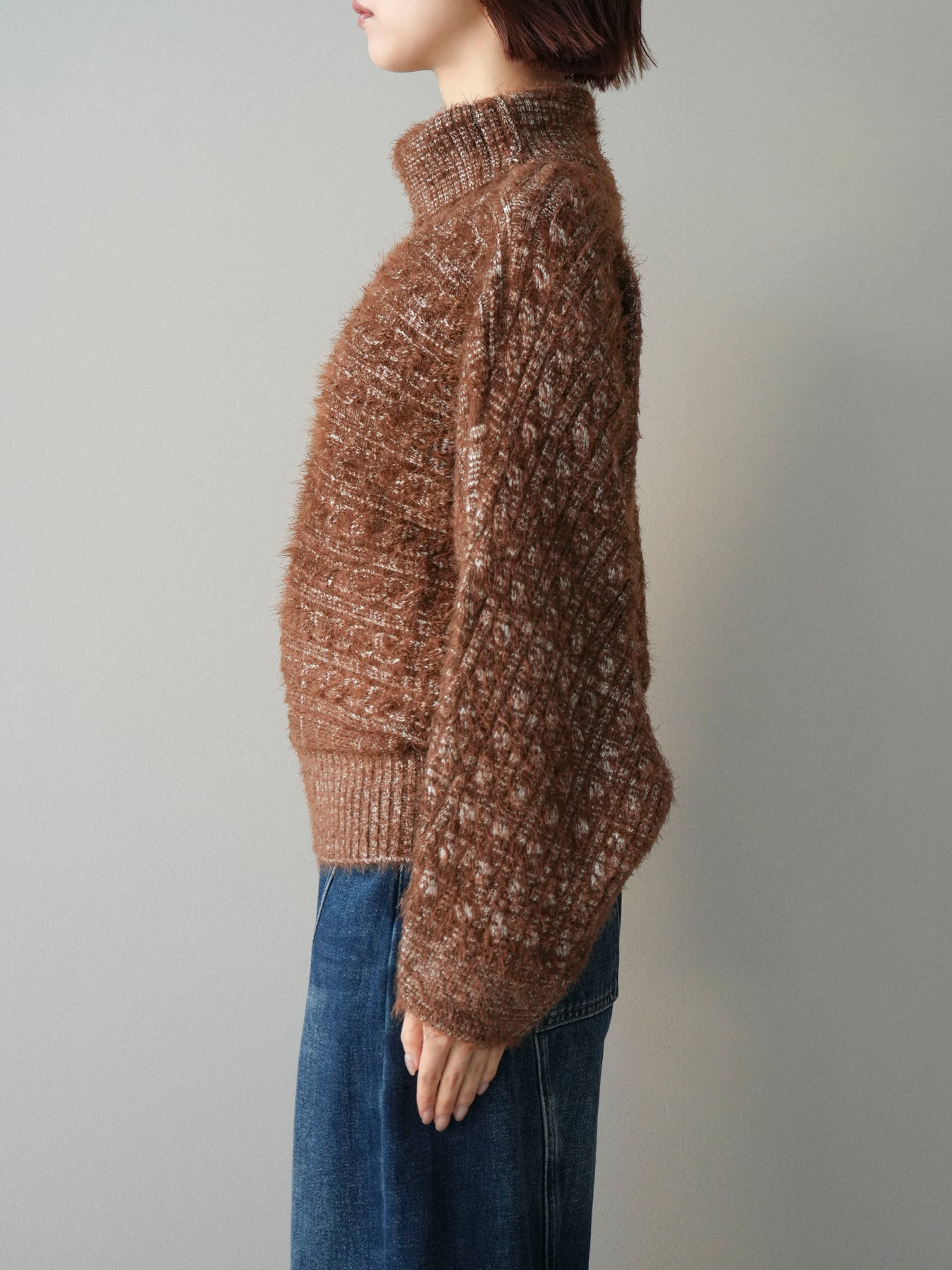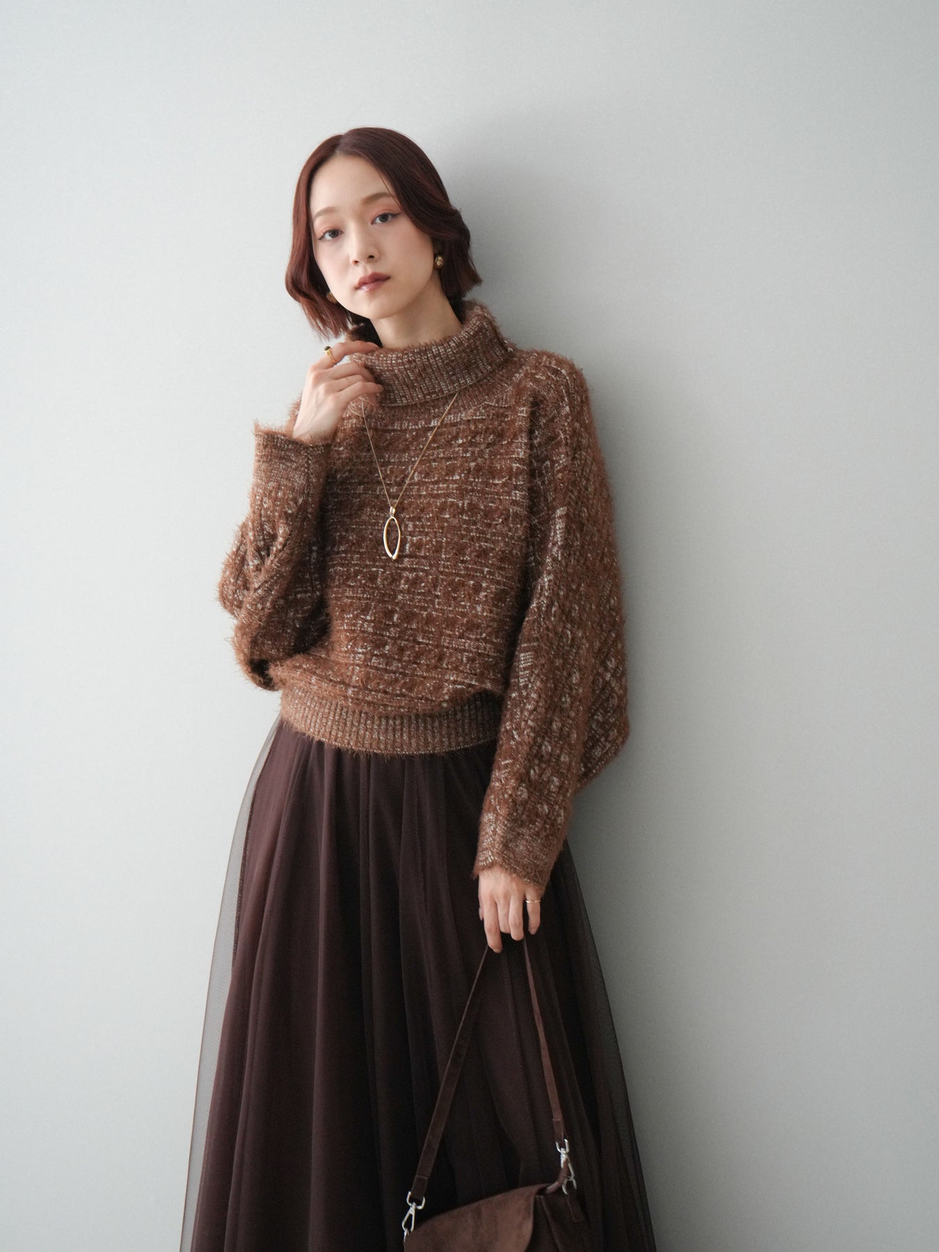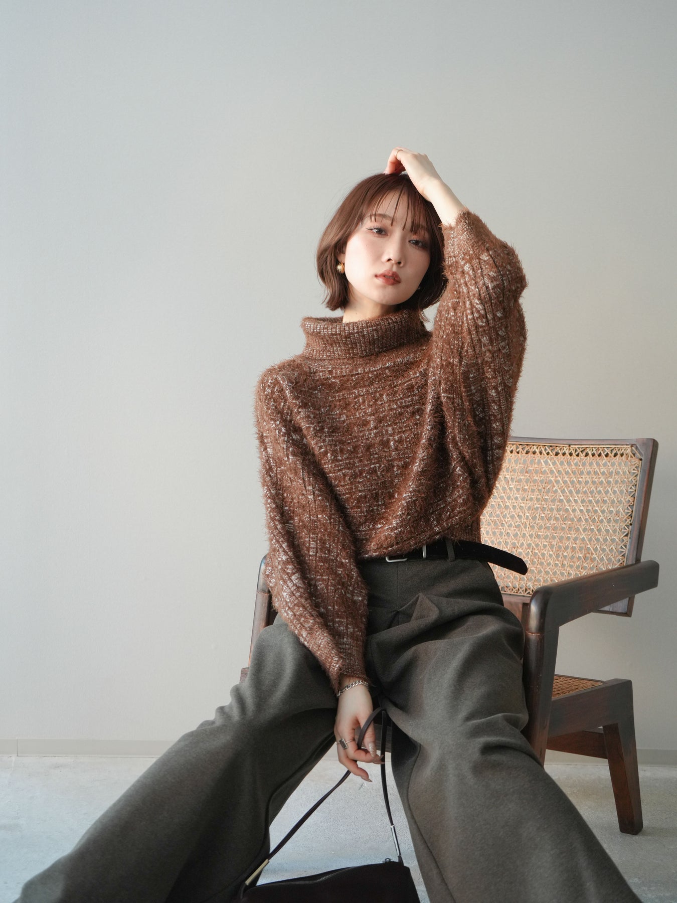 [予約]オフタートルケーブル編みニットプルオーバー/brown