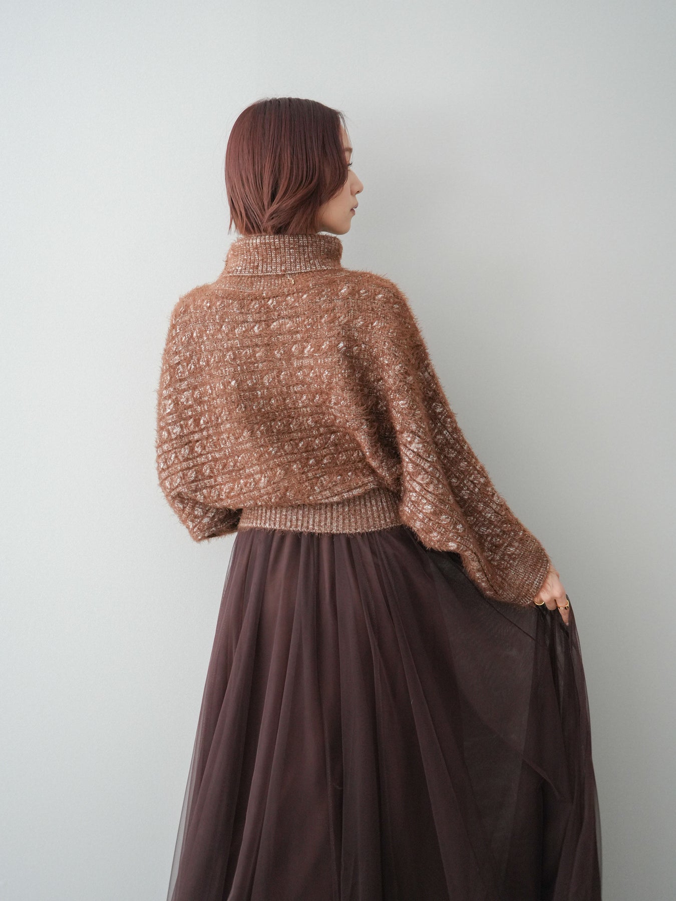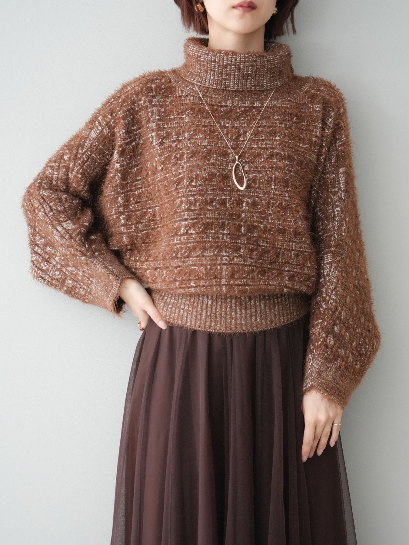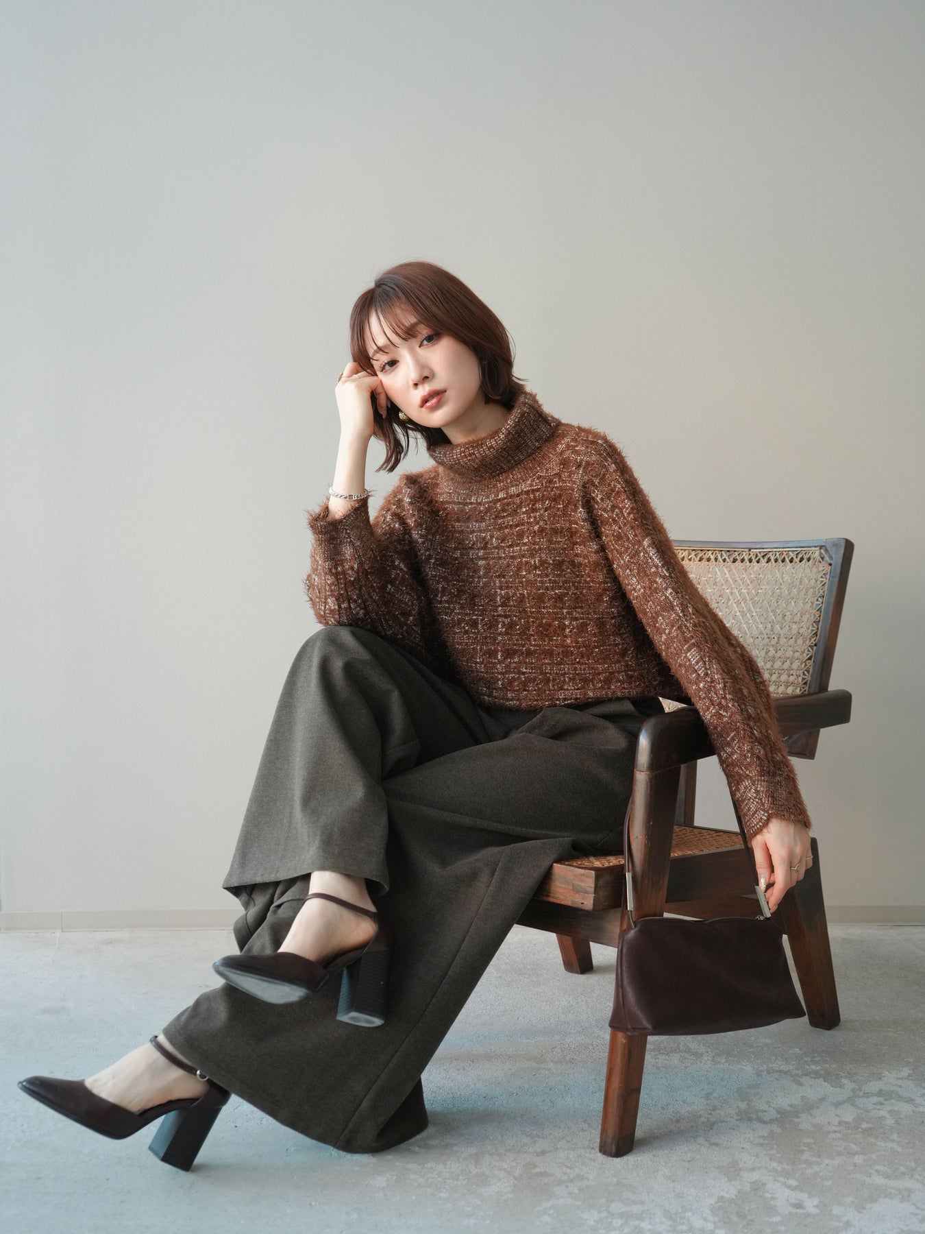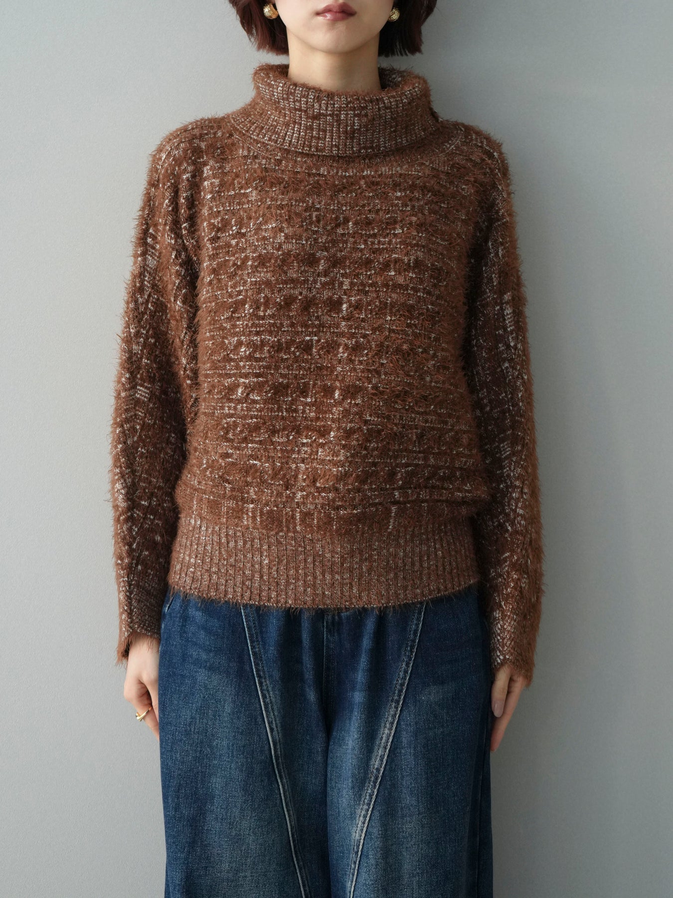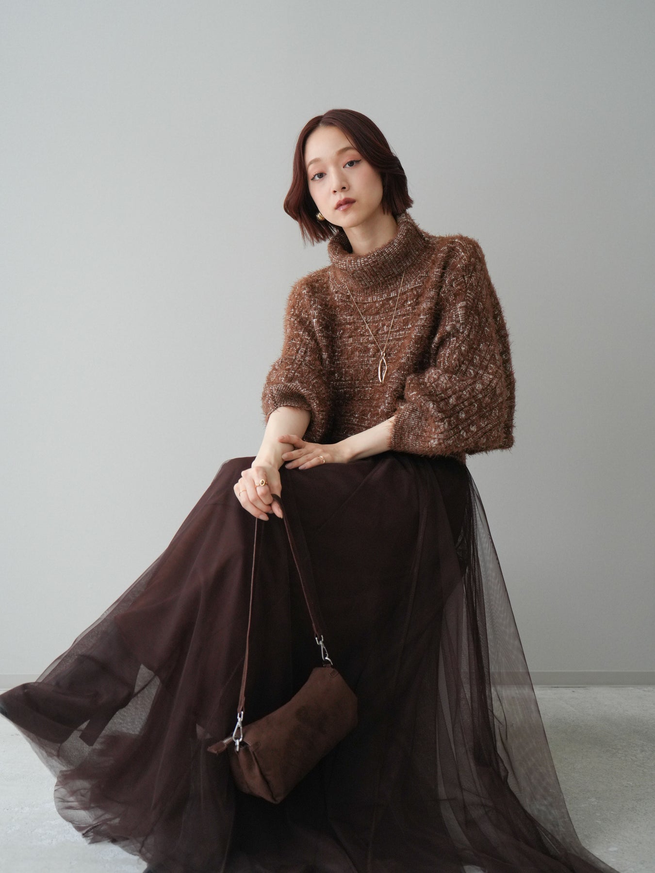 [予約]オフタートルケーブル編みニットプルオーバー/brown