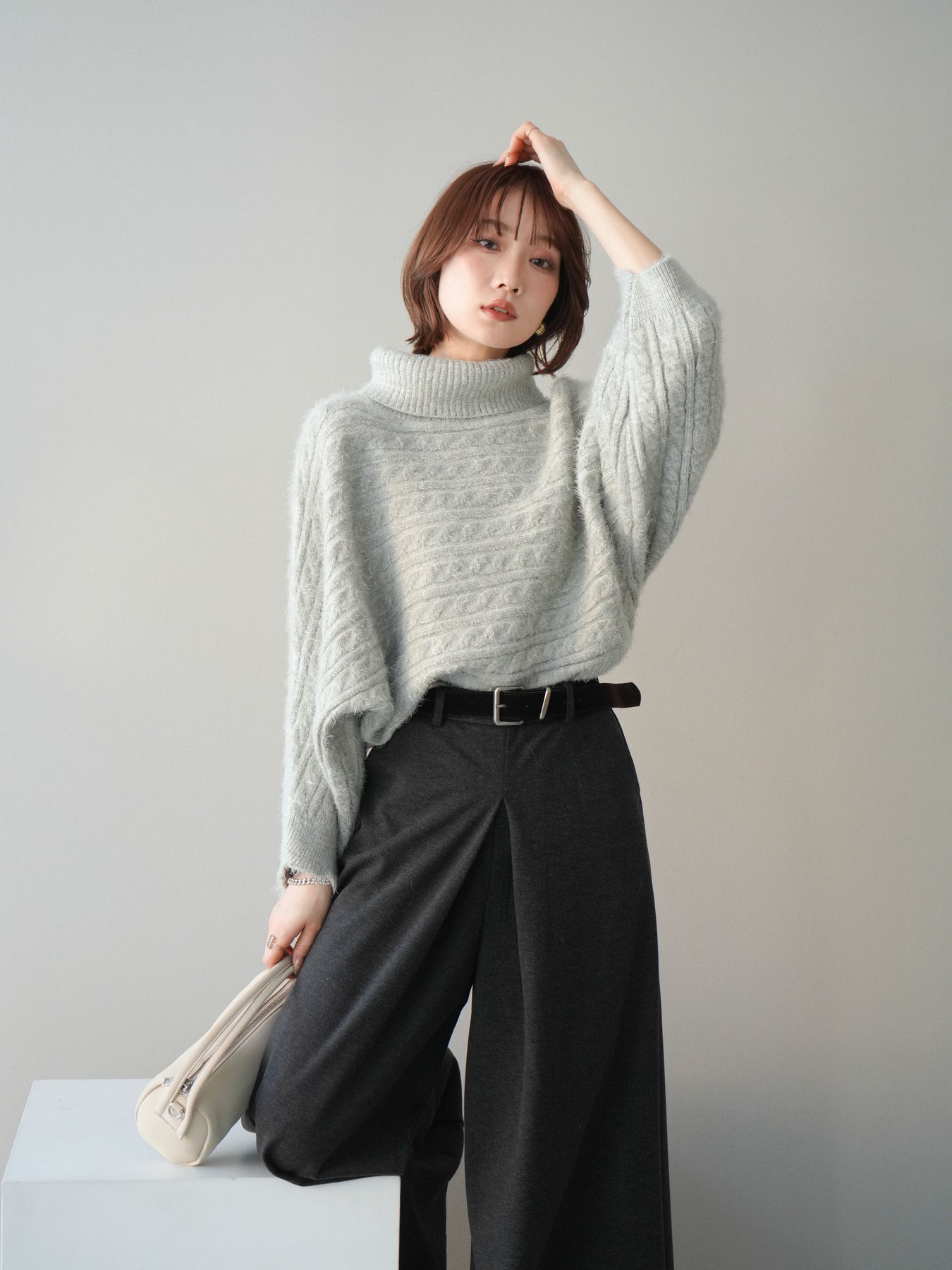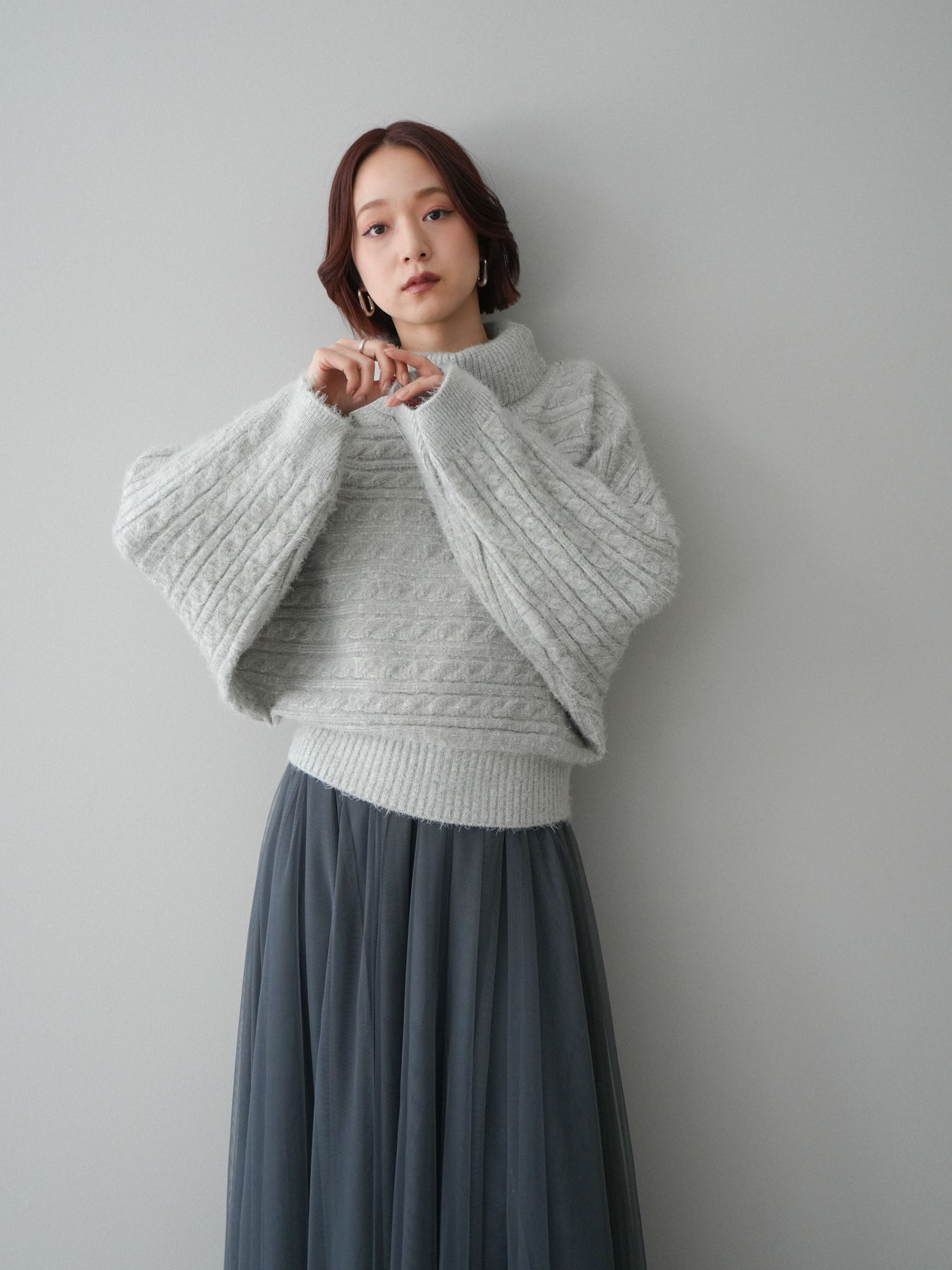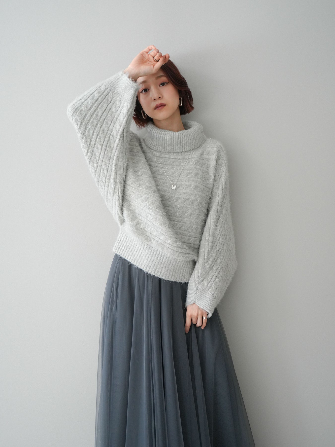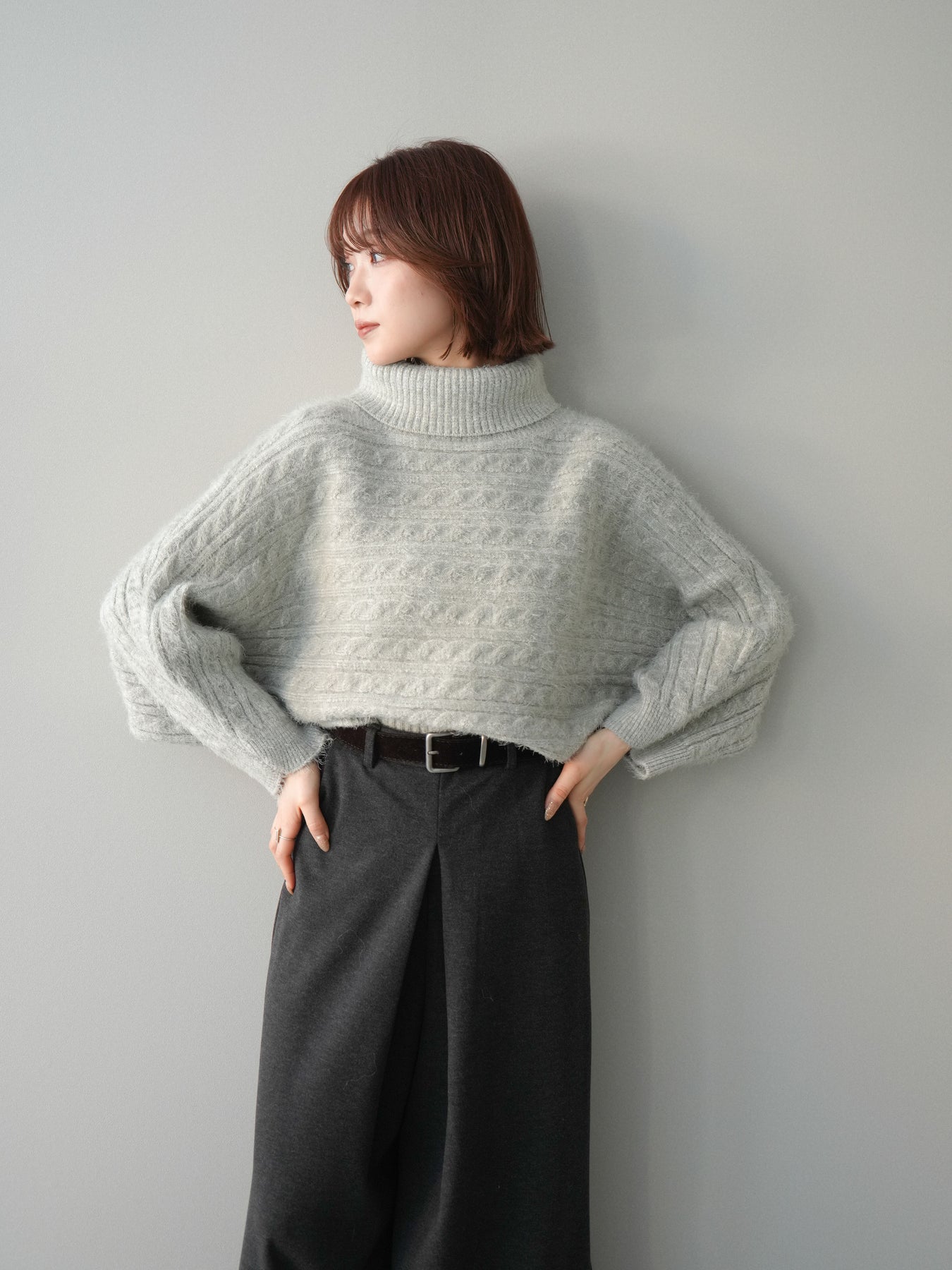 [予約]オフタートルケーブル編みニットプルオーバー/gray