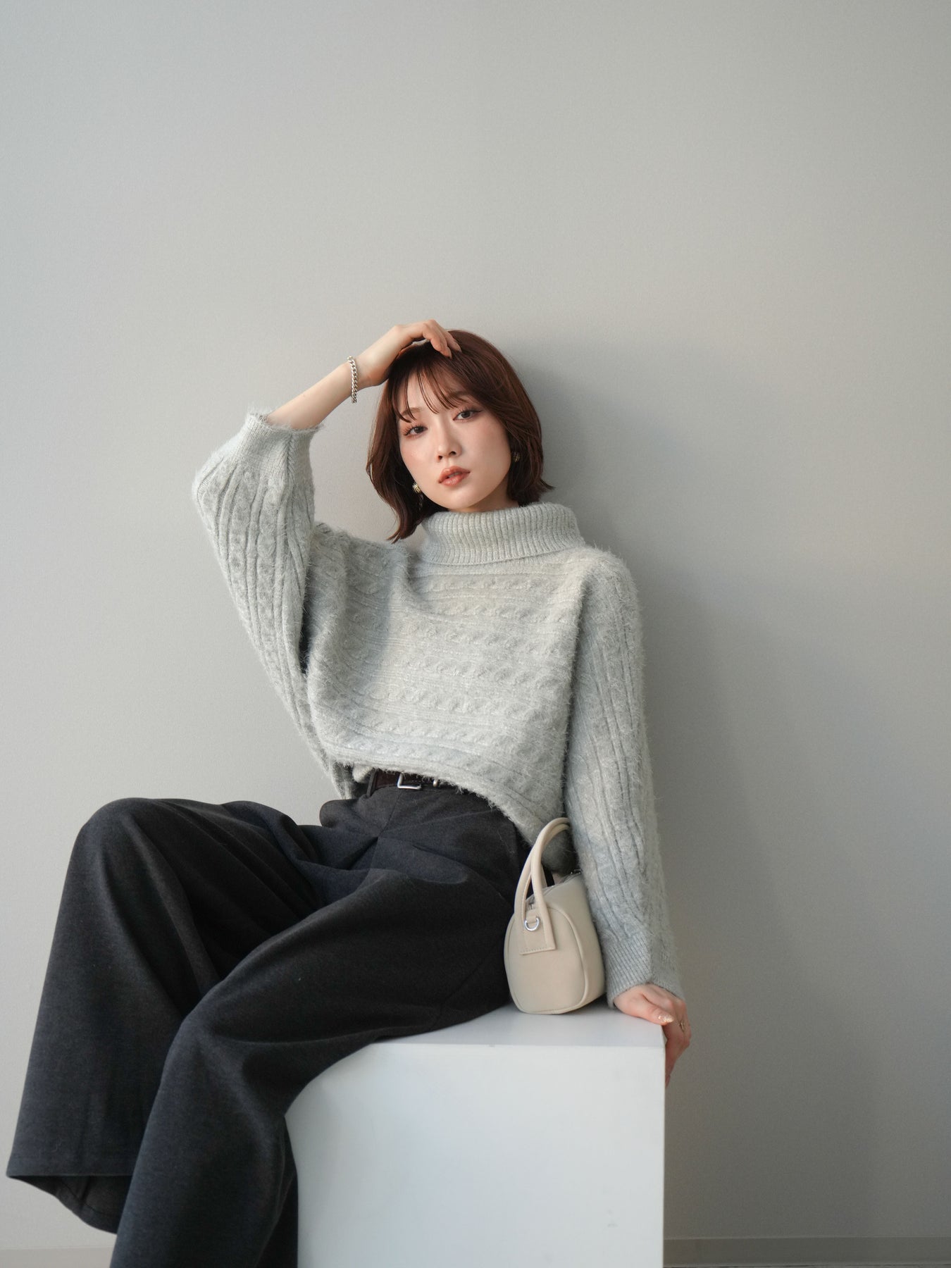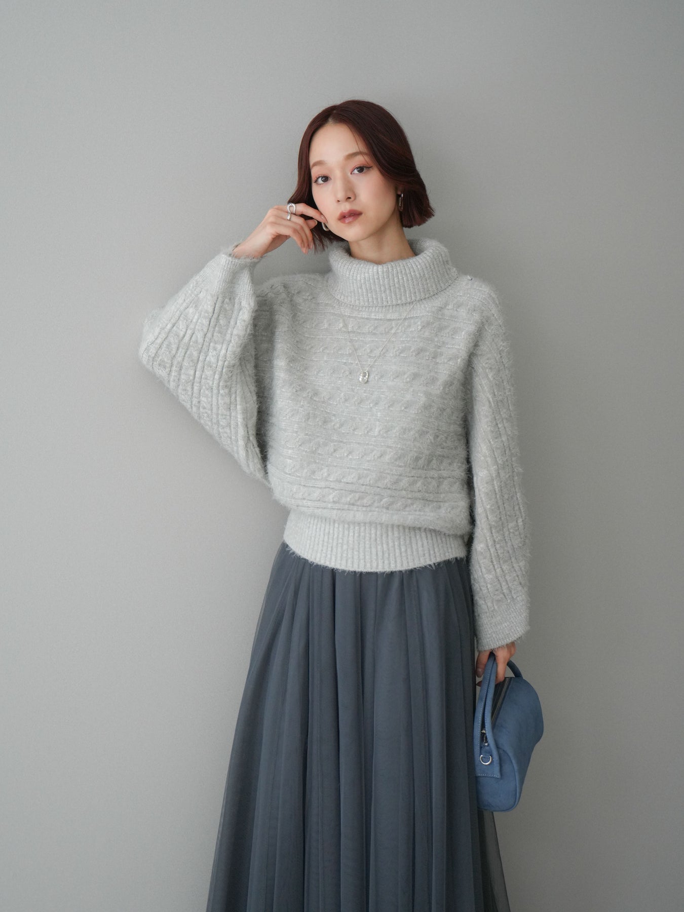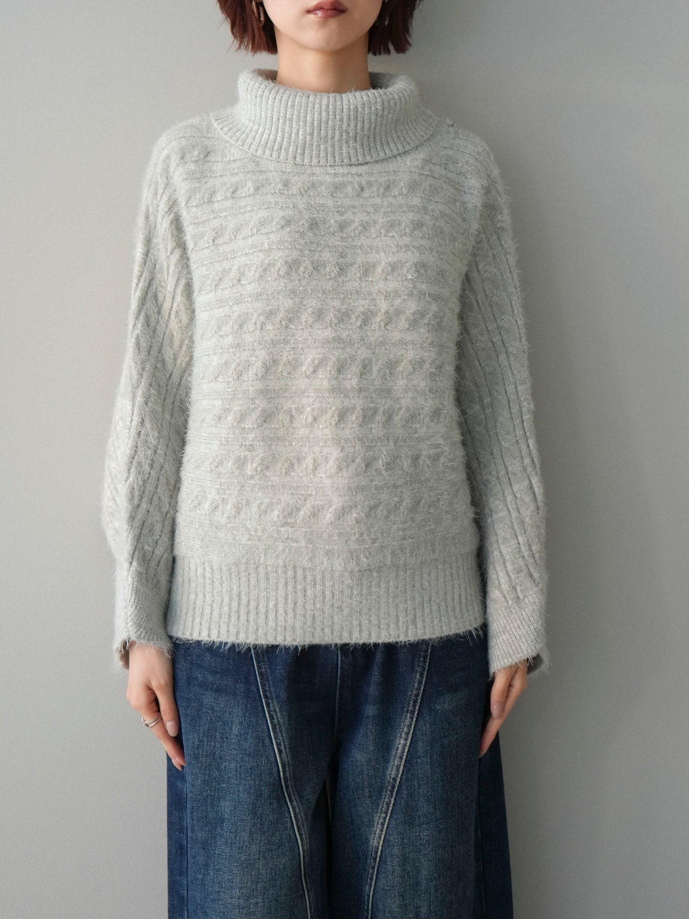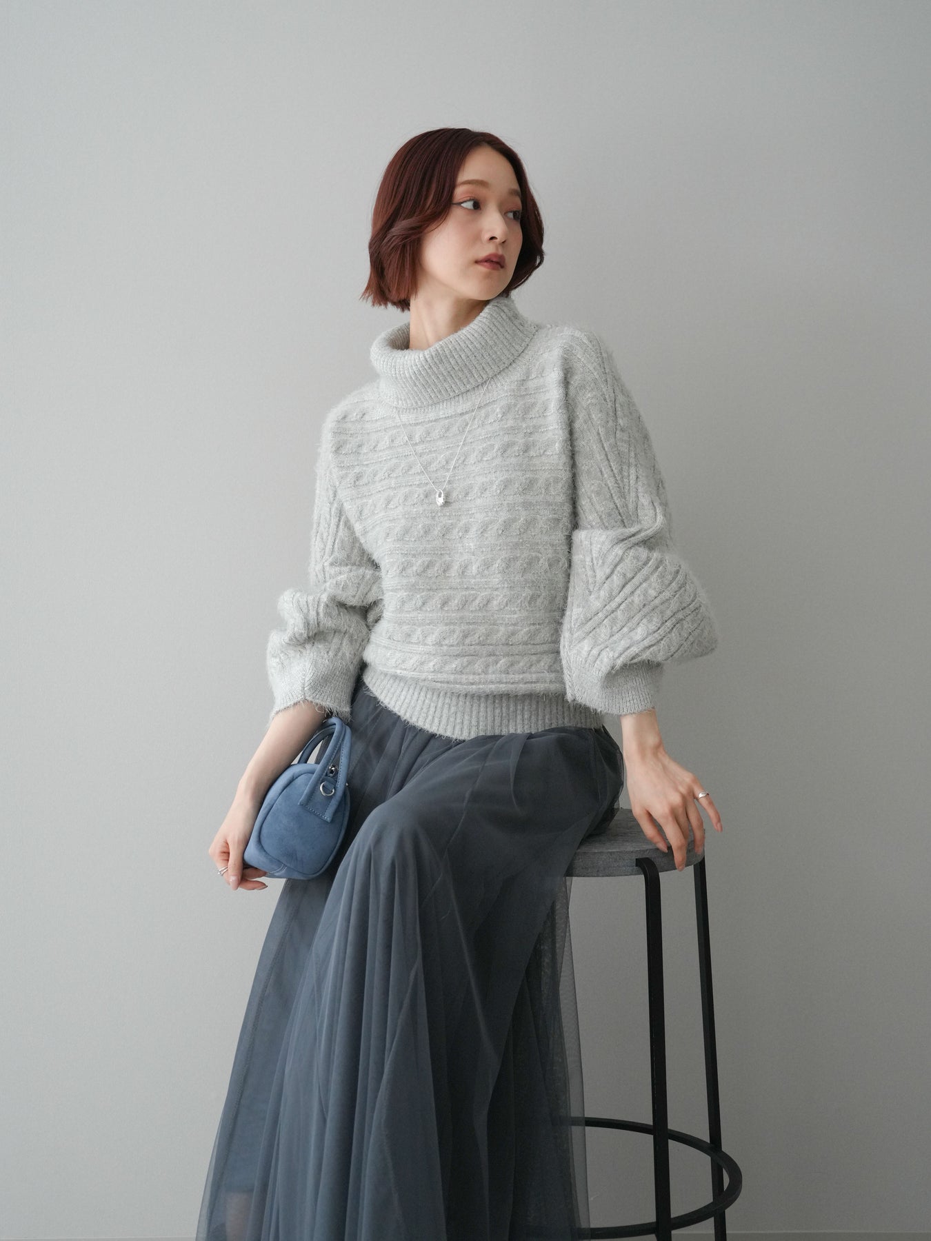 [予約]オフタートルケーブル編みニットプルオーバー/gray