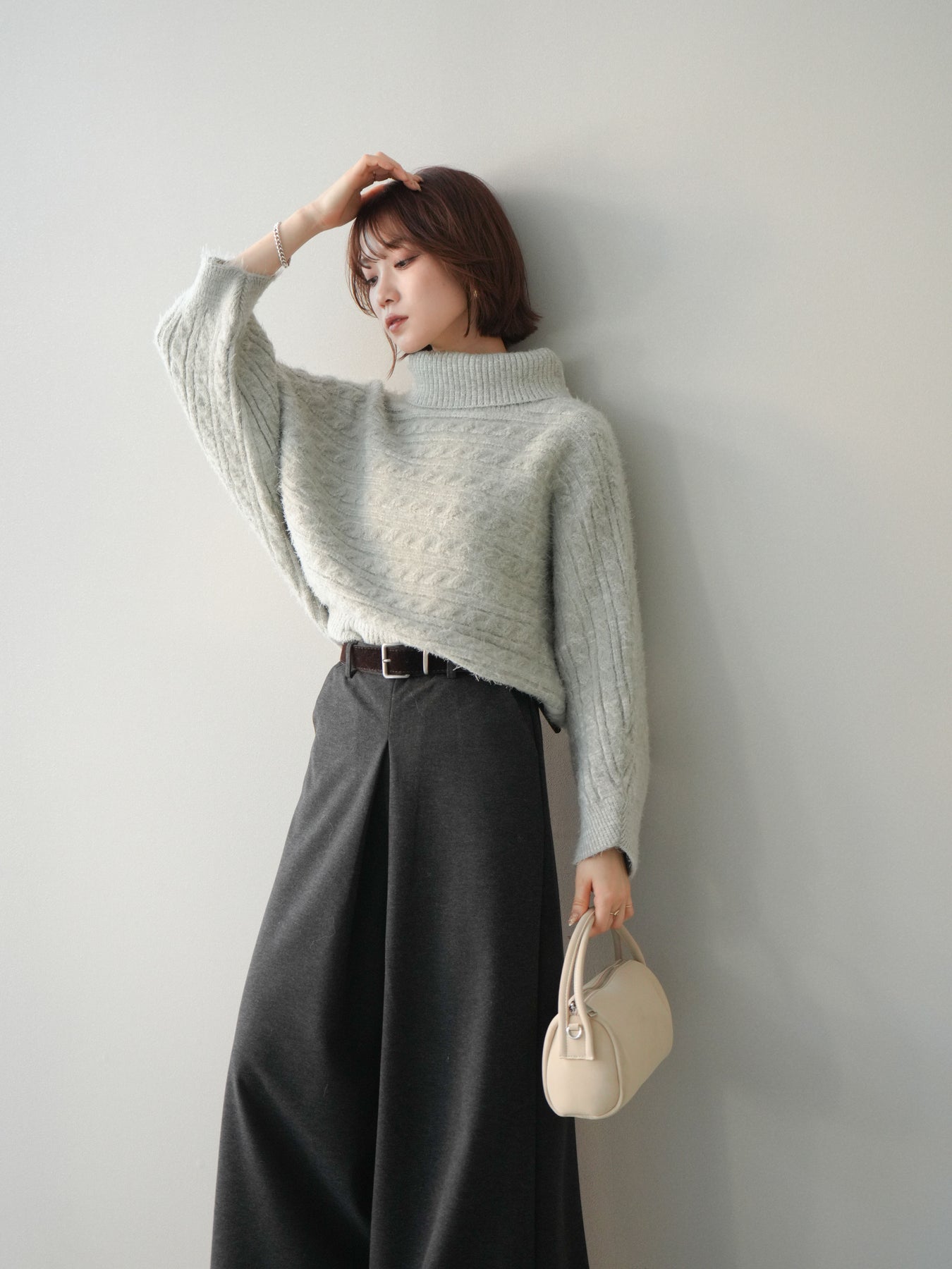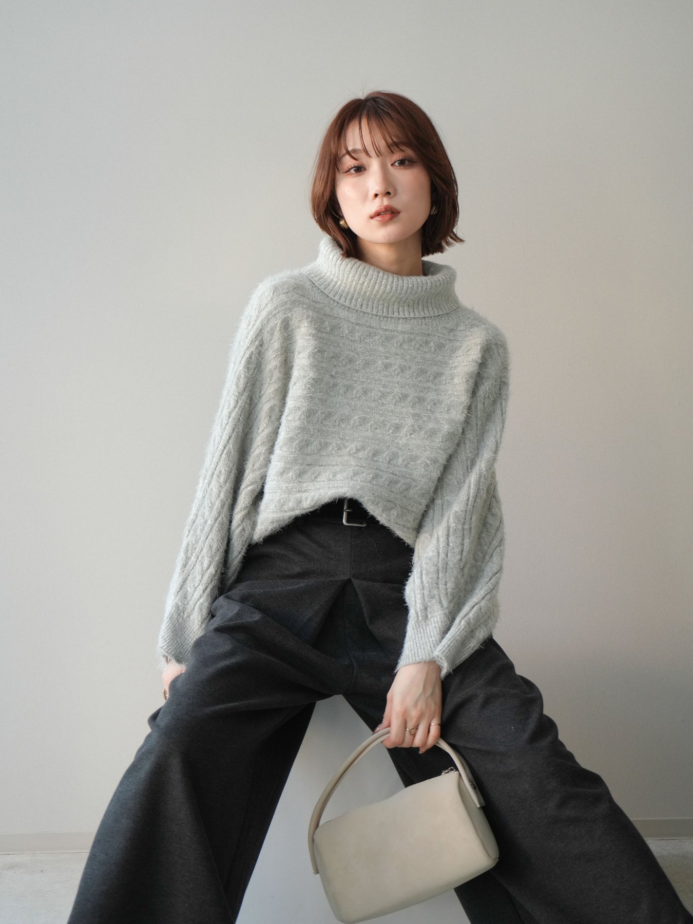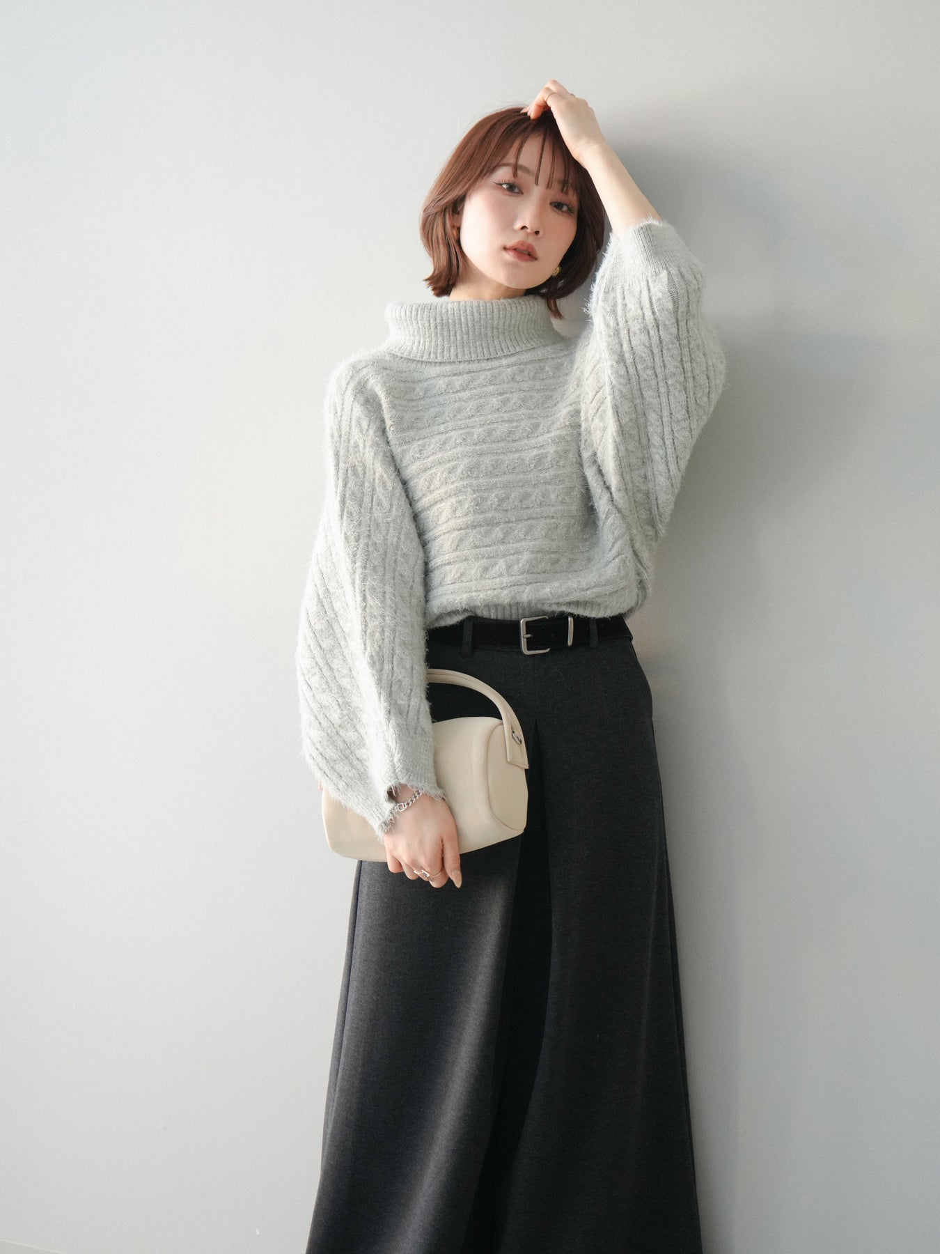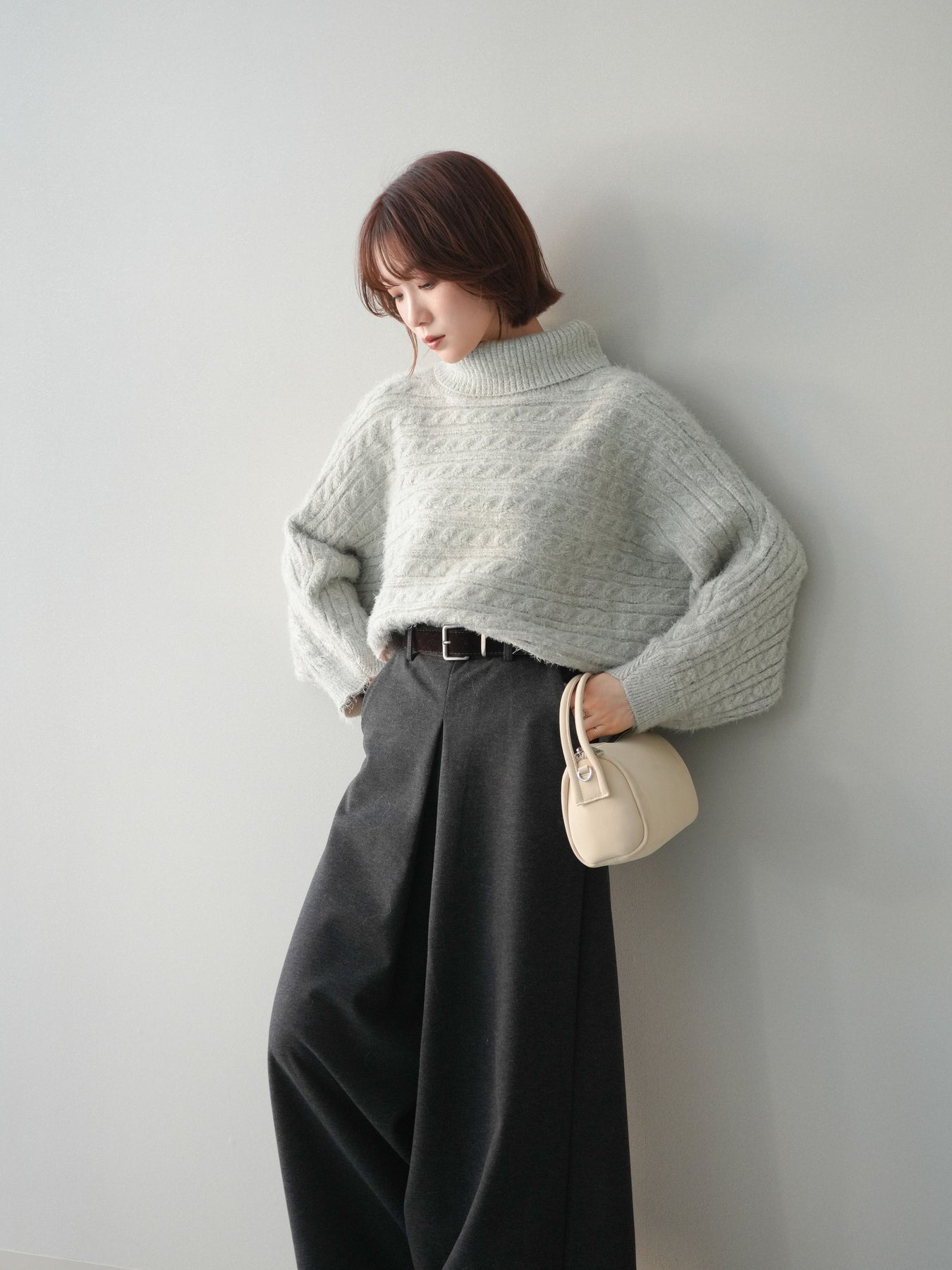 [予約]オフタートルケーブル編みニットプルオーバー/gray