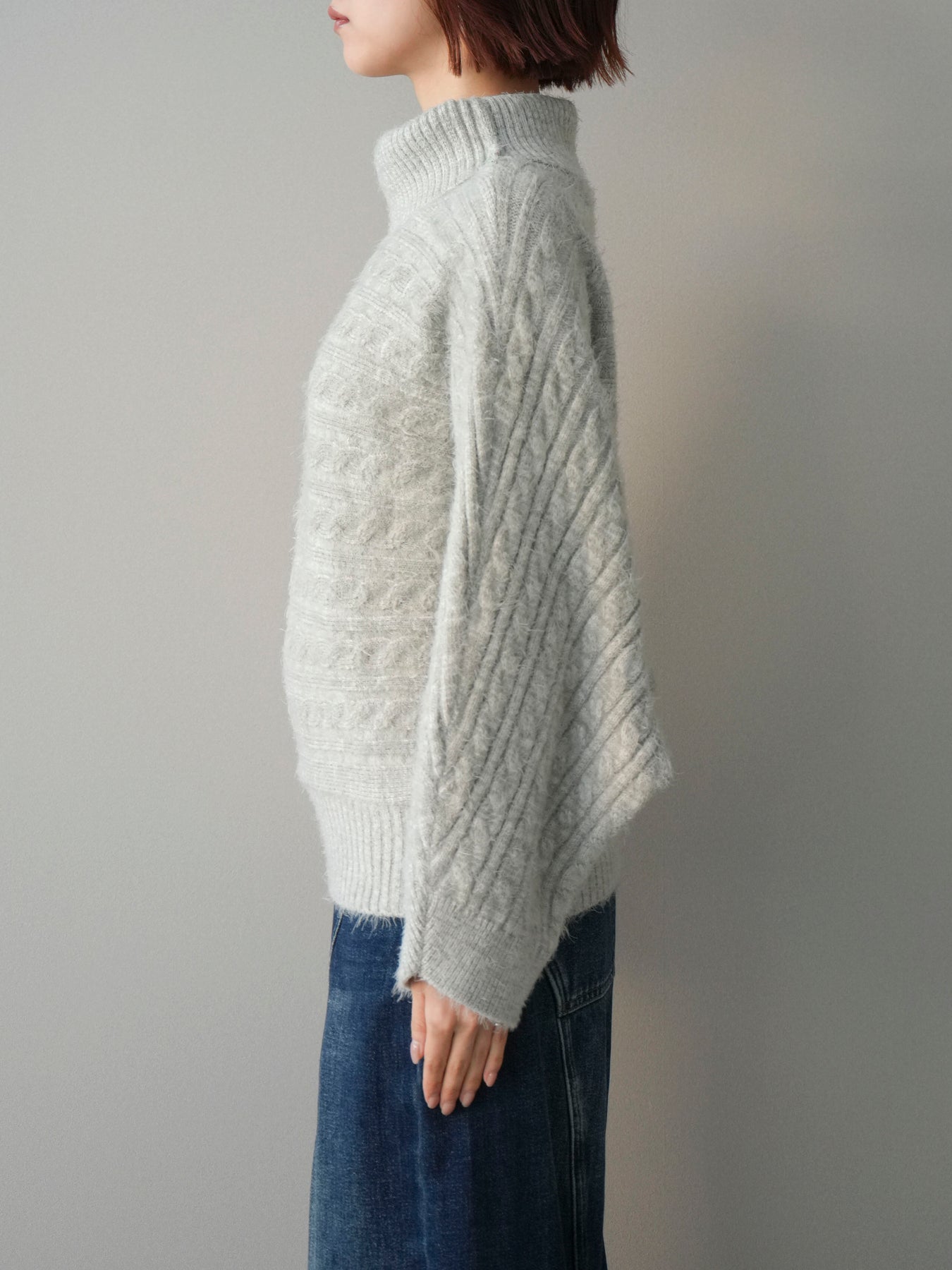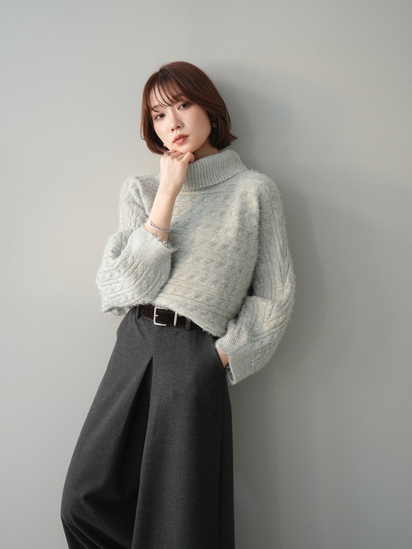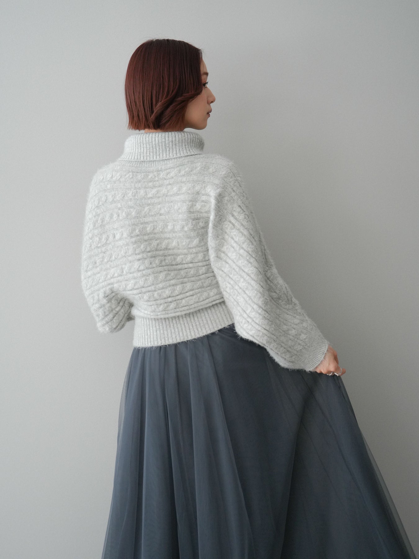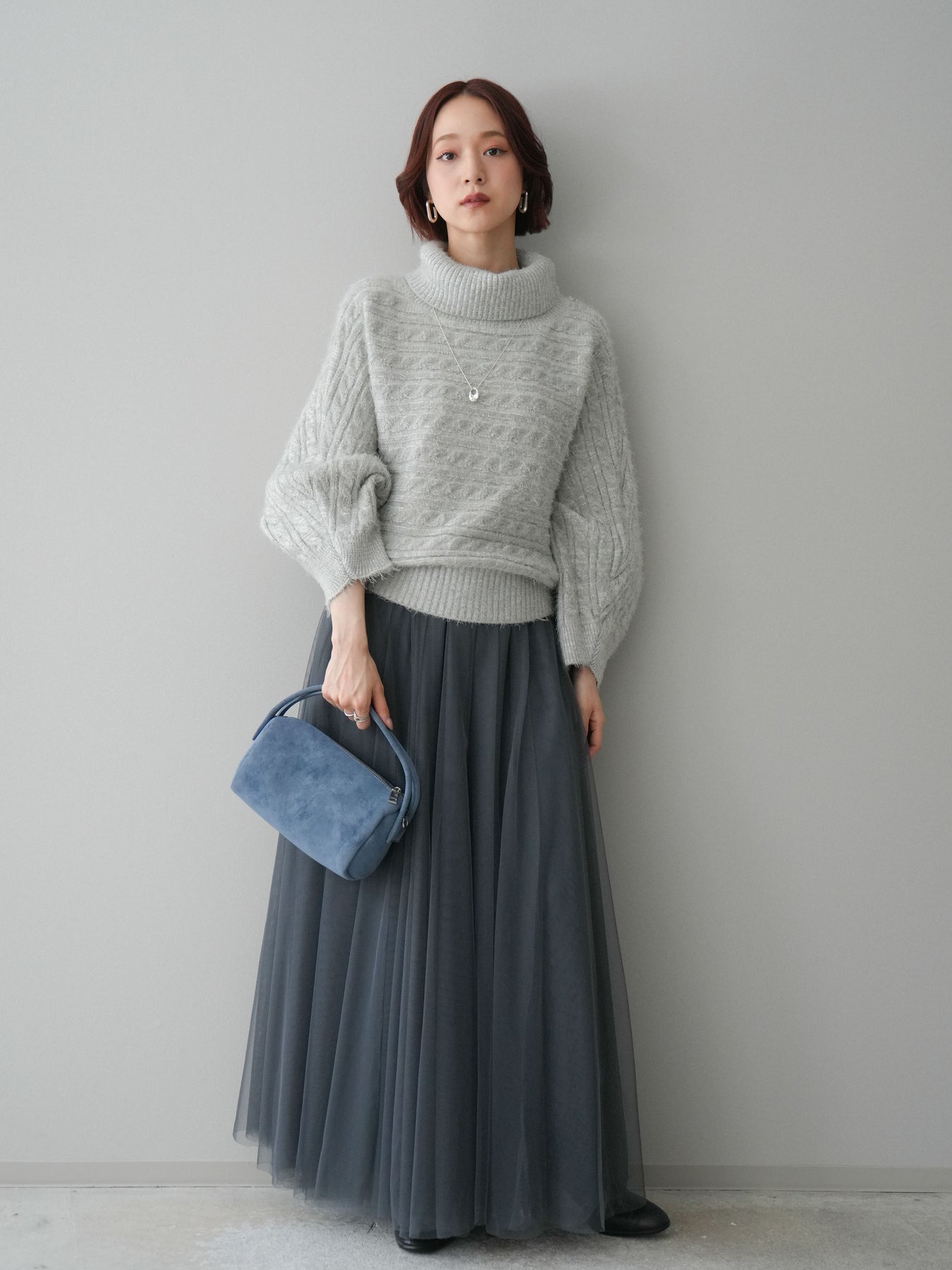 [予約]オフタートルケーブル編みニットプルオーバー/gray