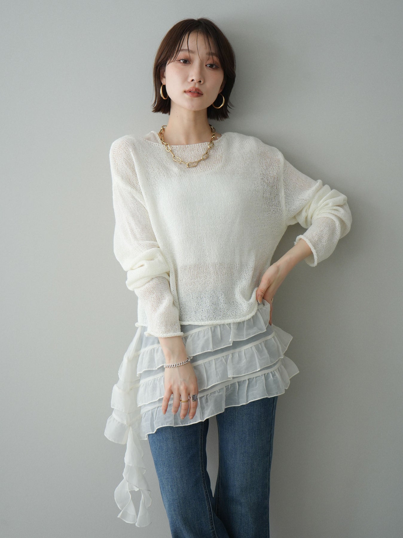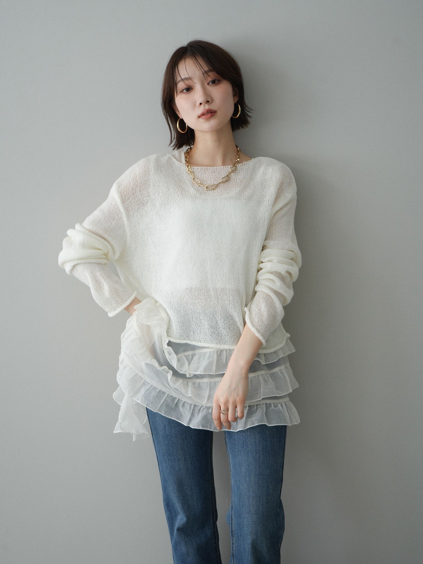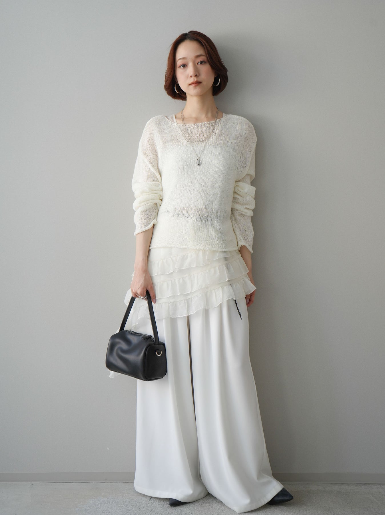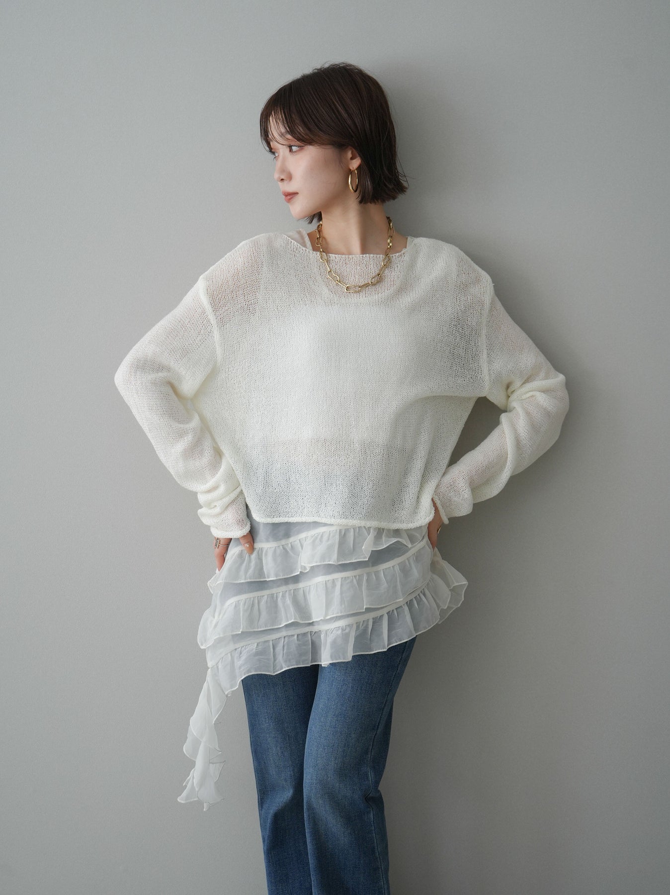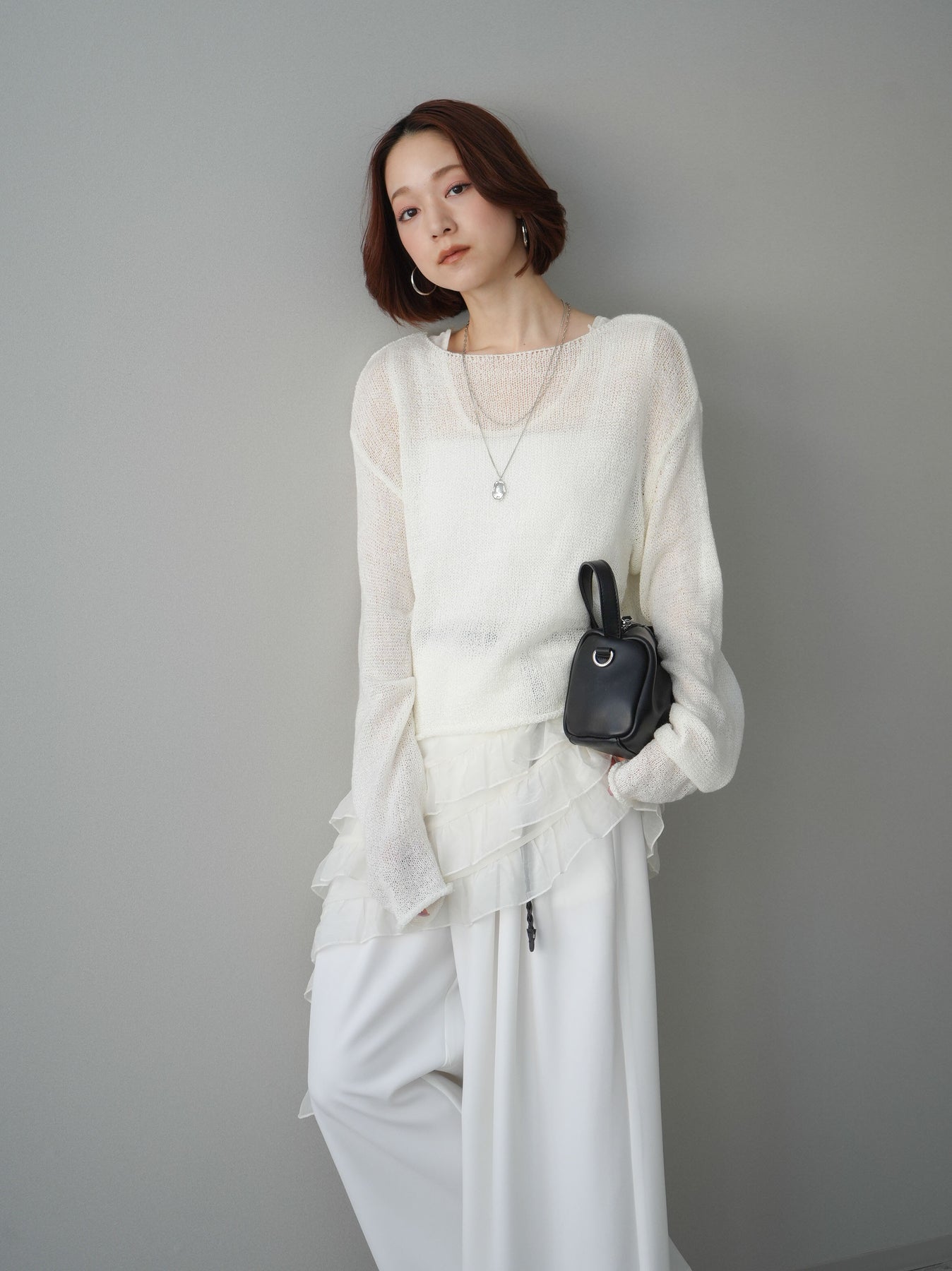 [予約]ラッフルオーガンジータンクトップ&ニットアンサンブル/white