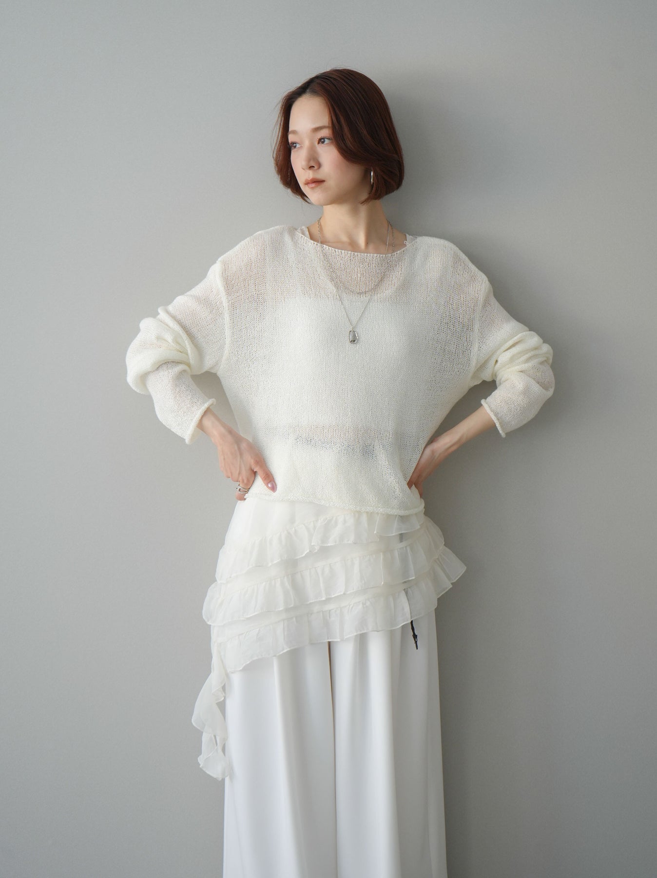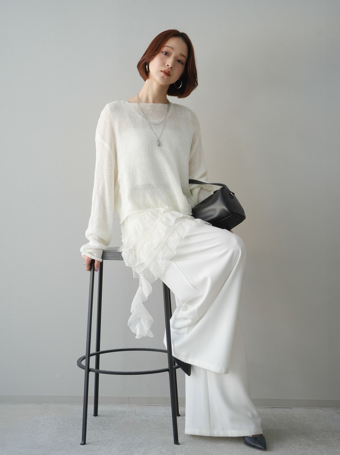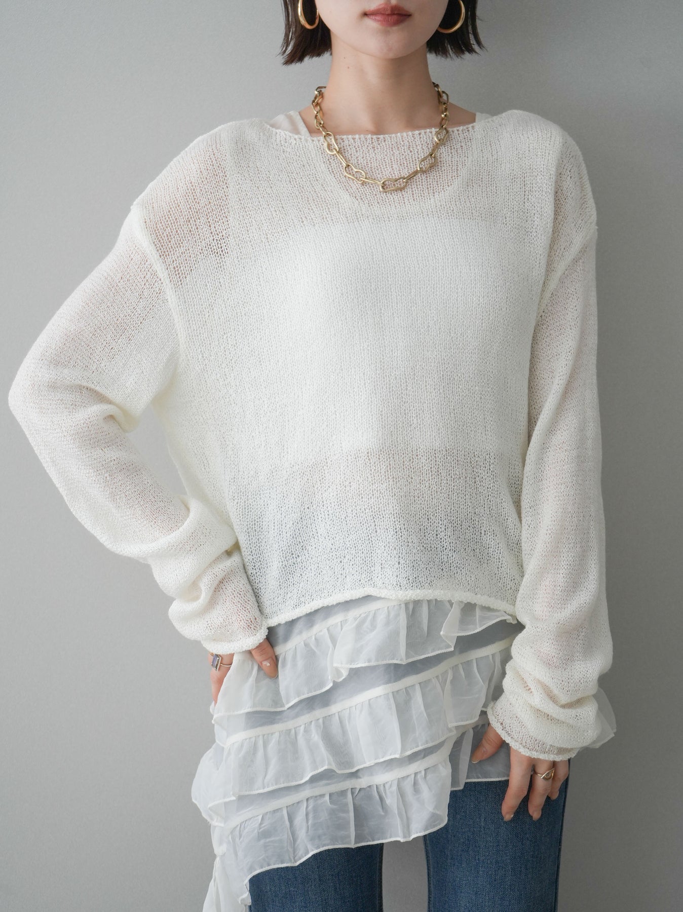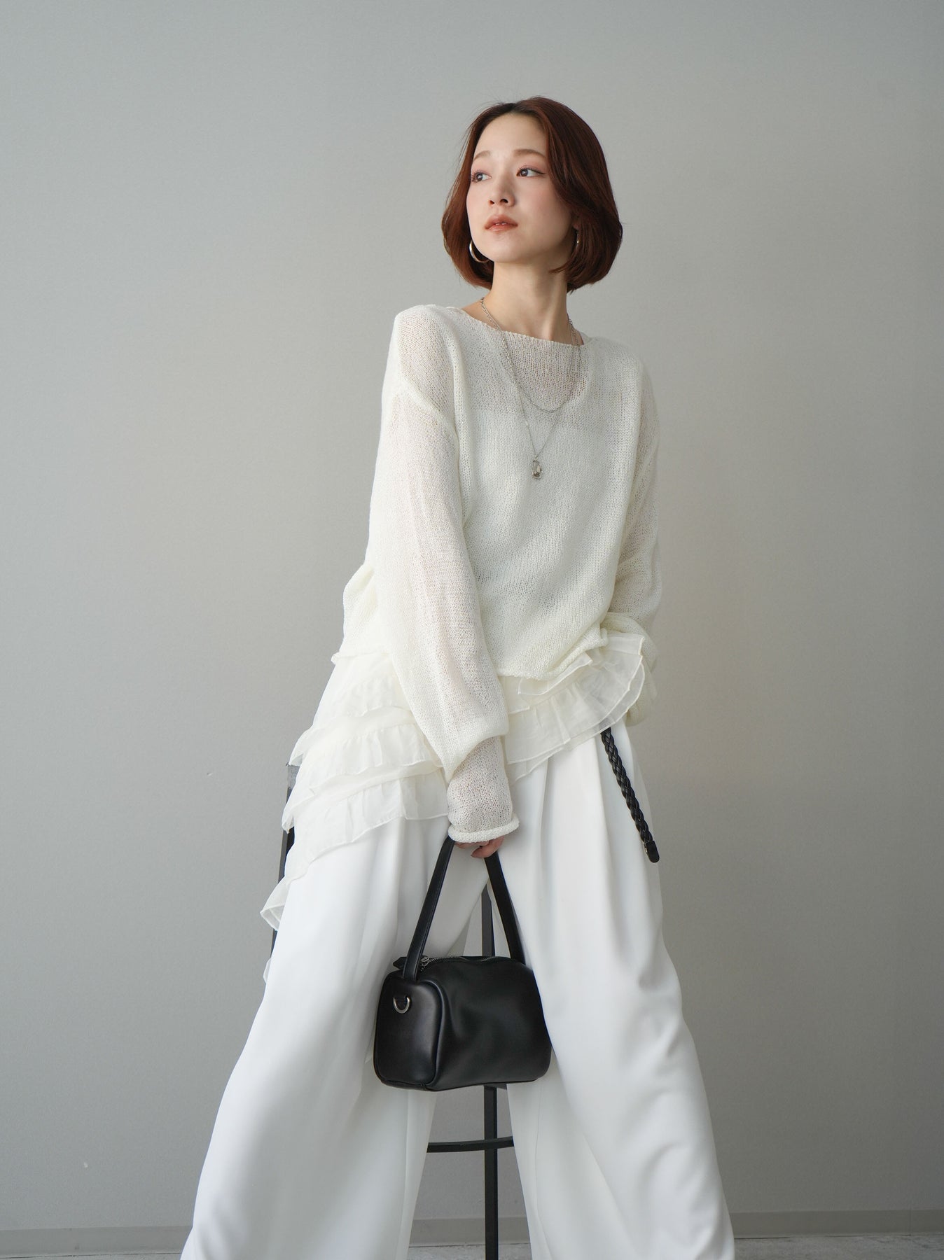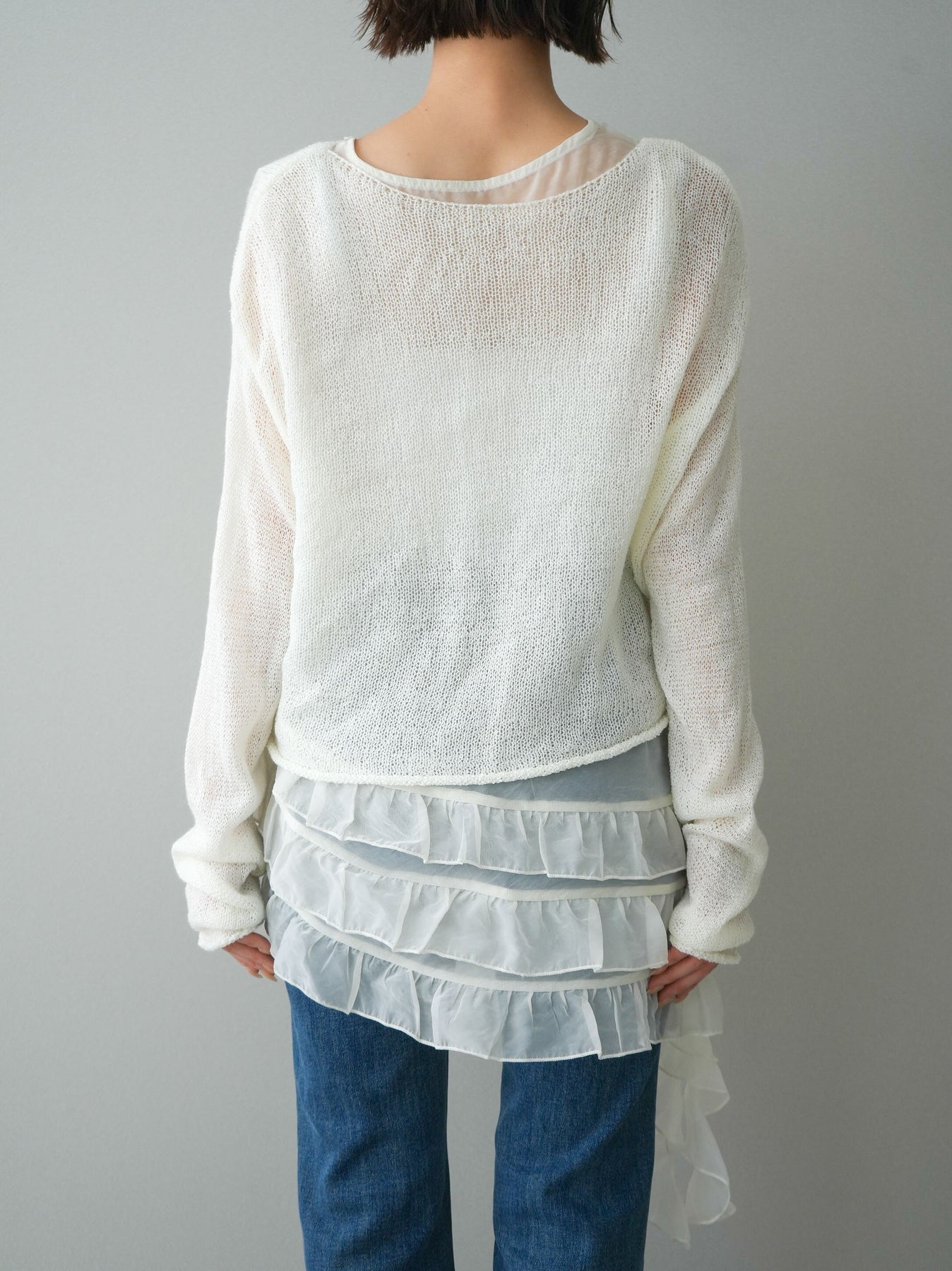 [予約]ラッフルオーガンジータンクトップ&ニットアンサンブル/white
