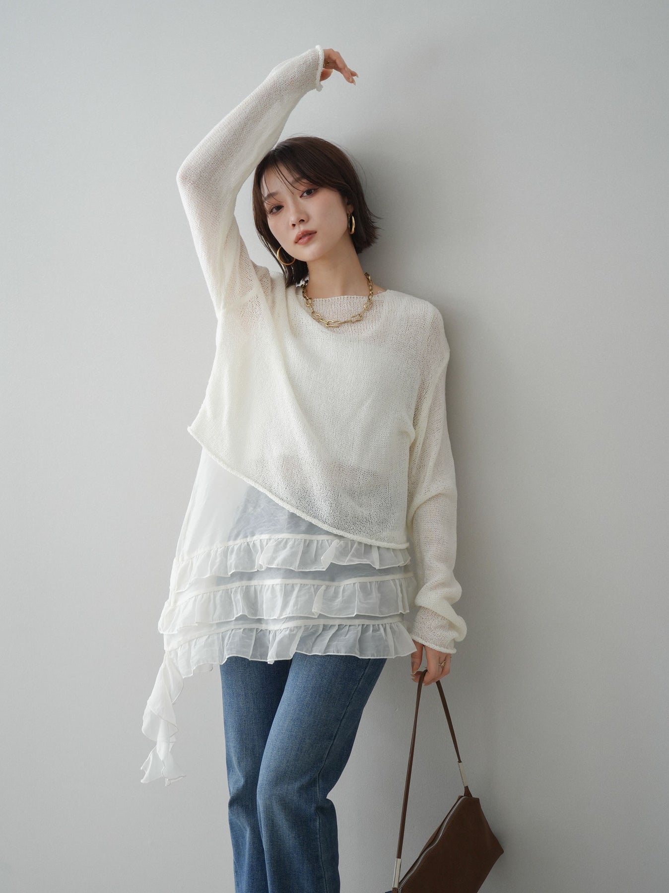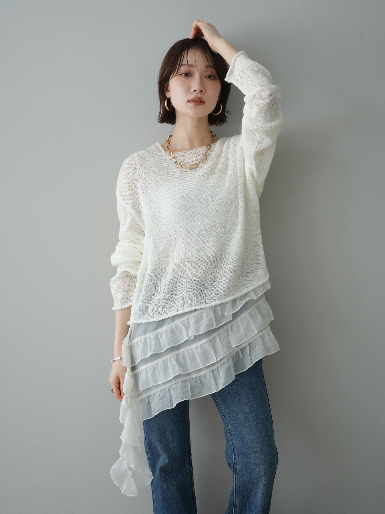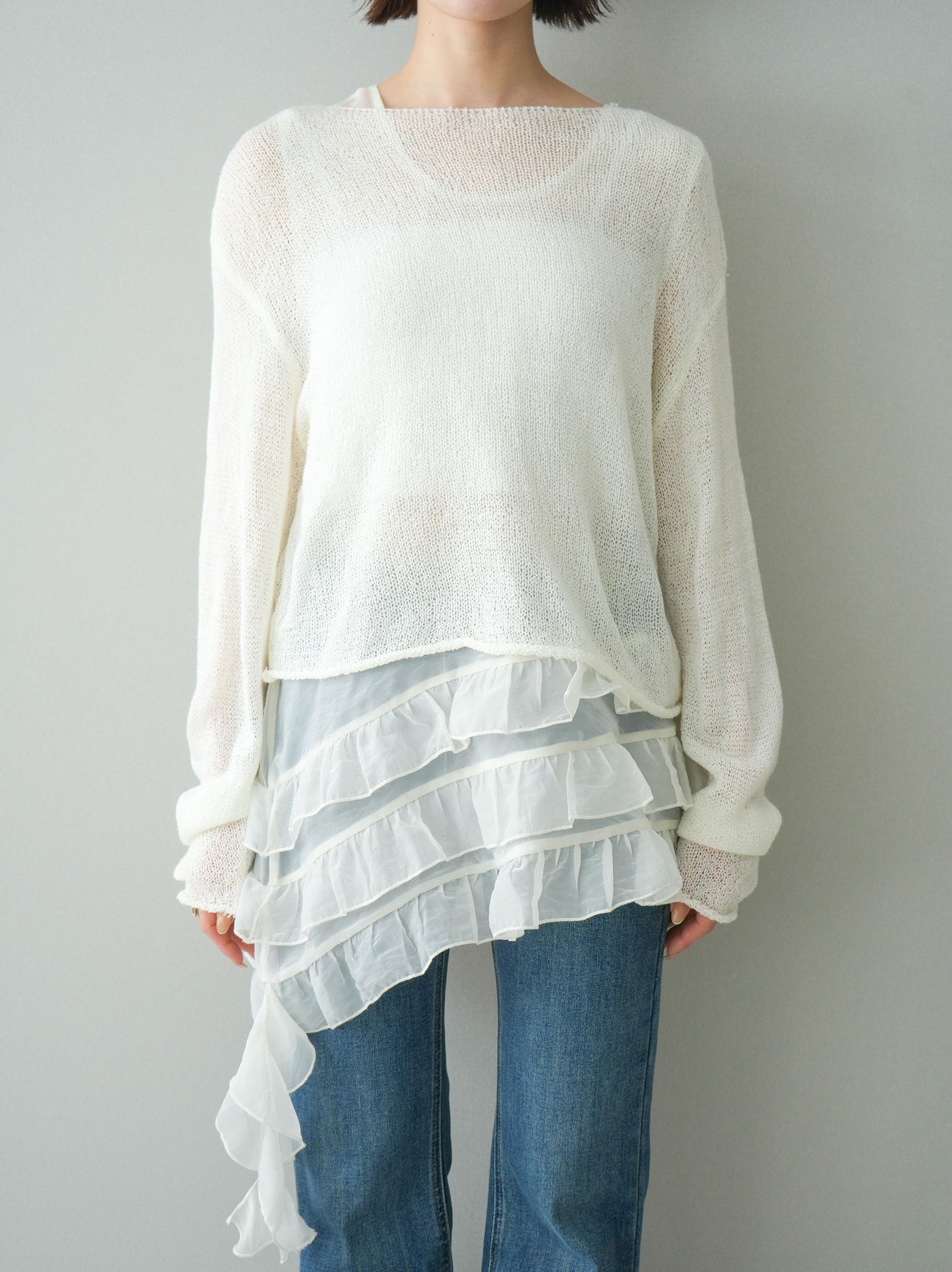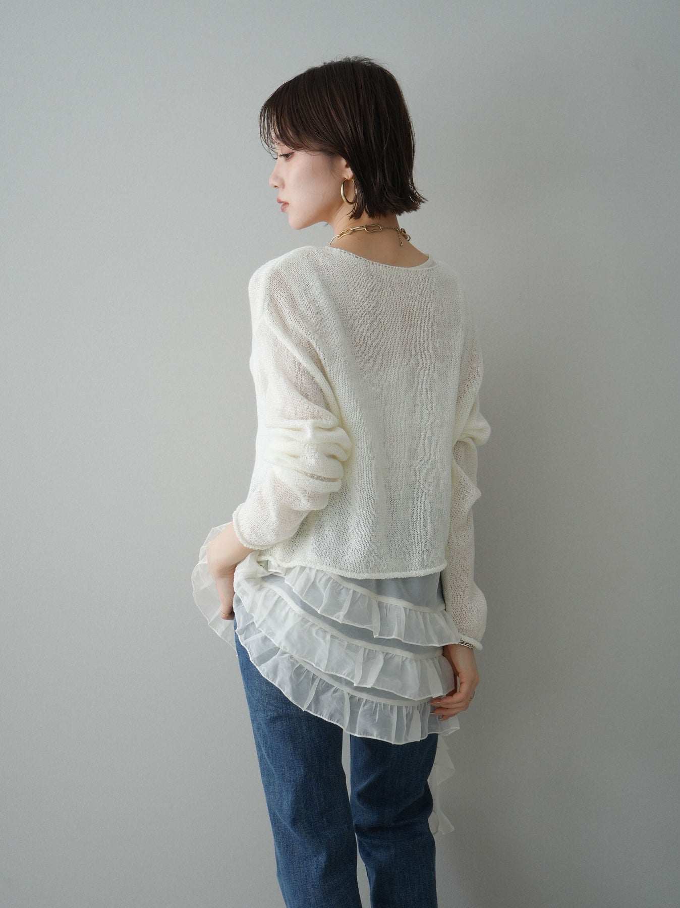 [予約]ラッフルオーガンジータンクトップ&ニットアンサンブル/white