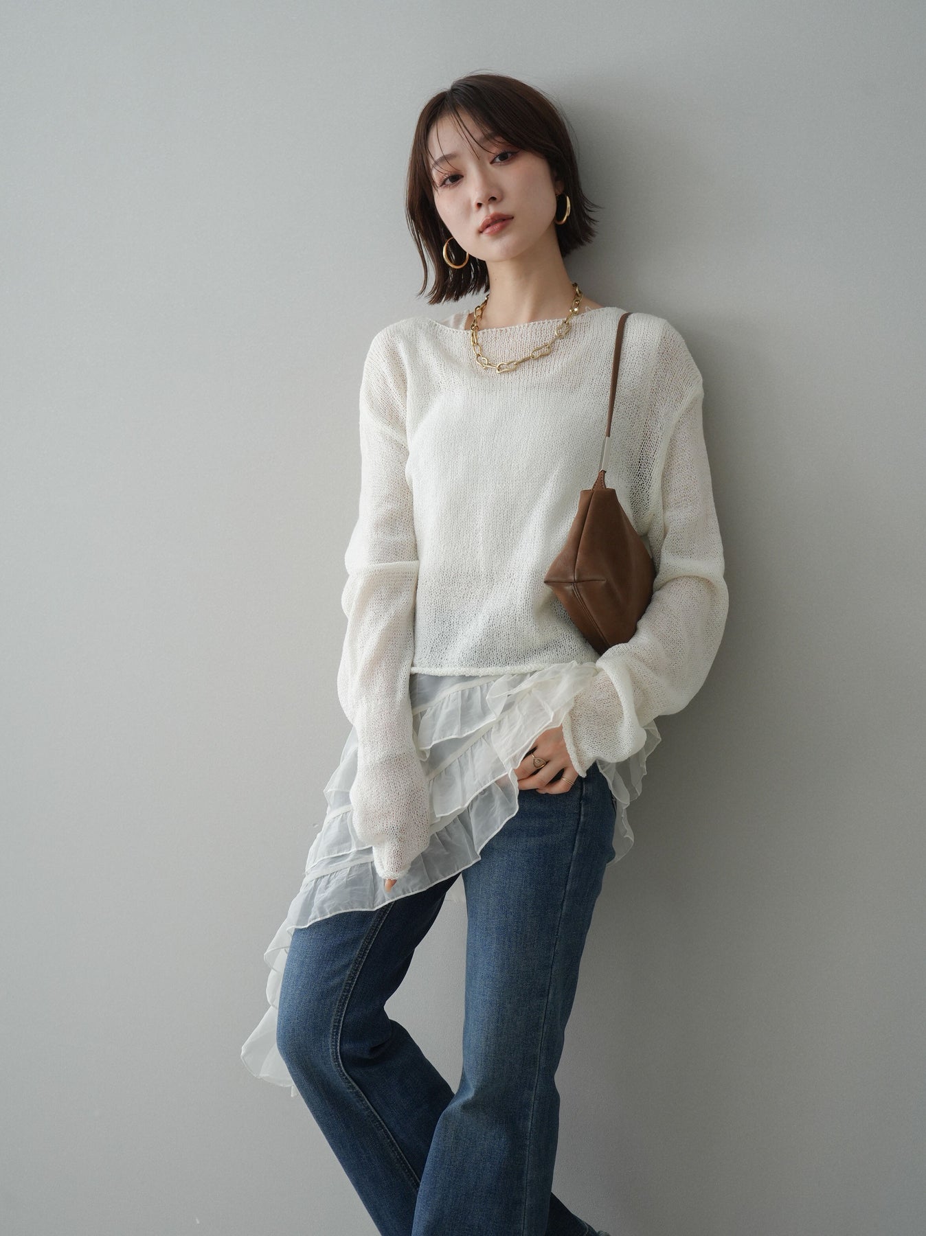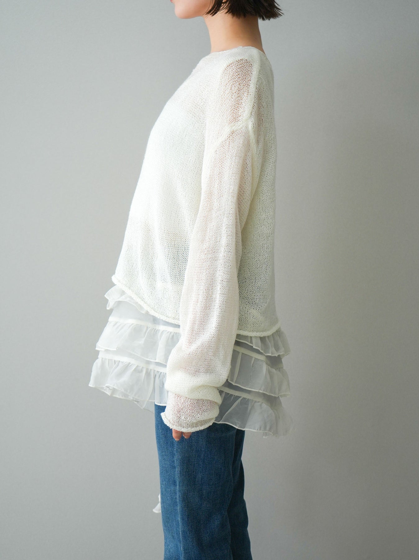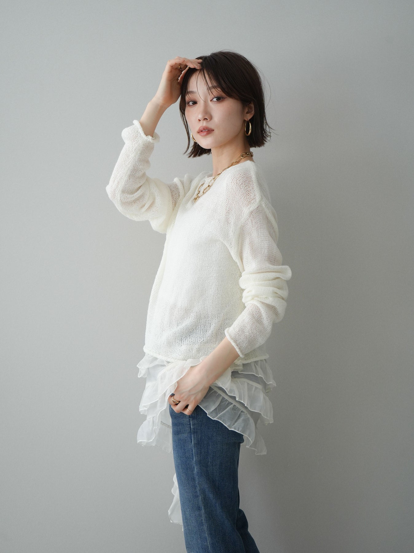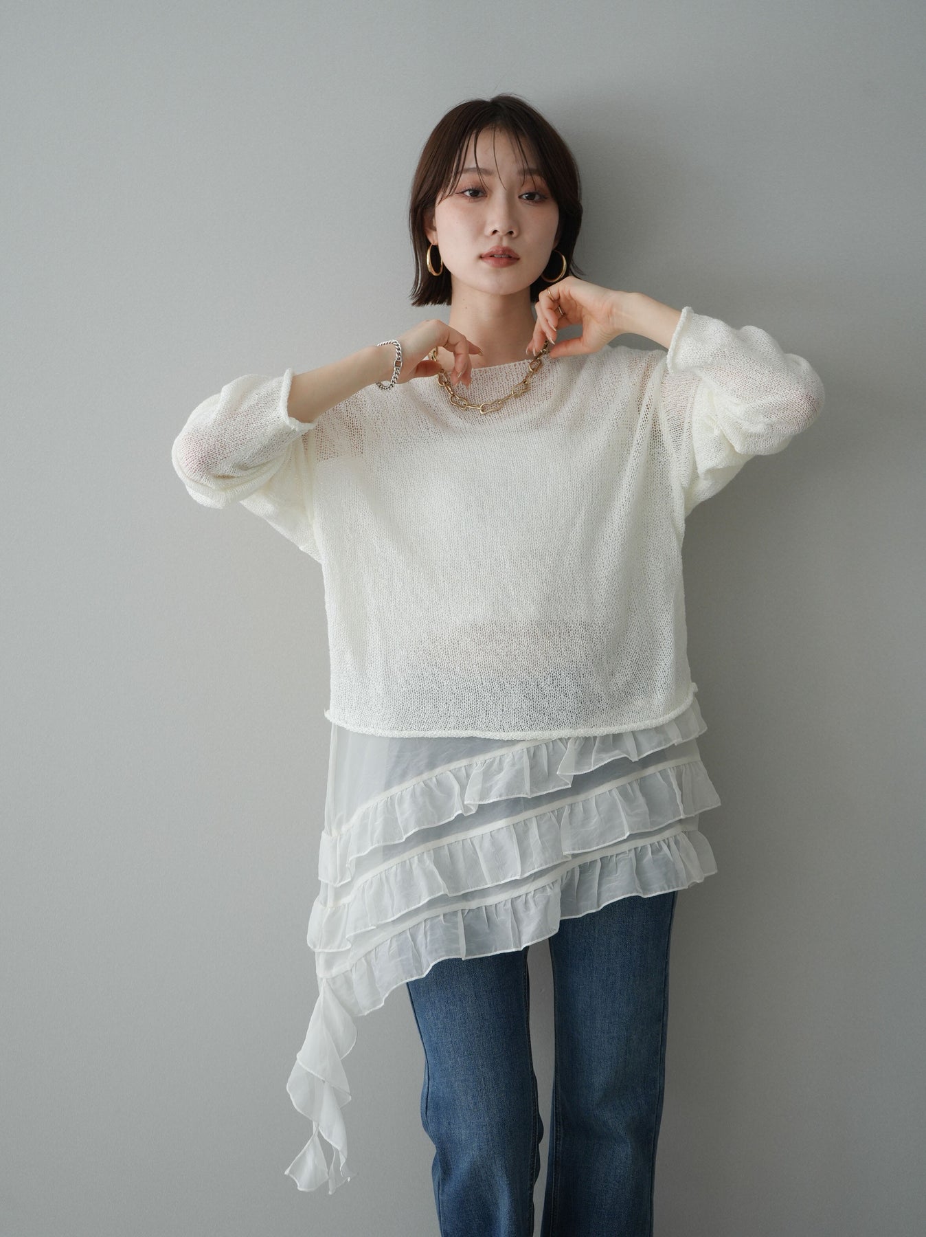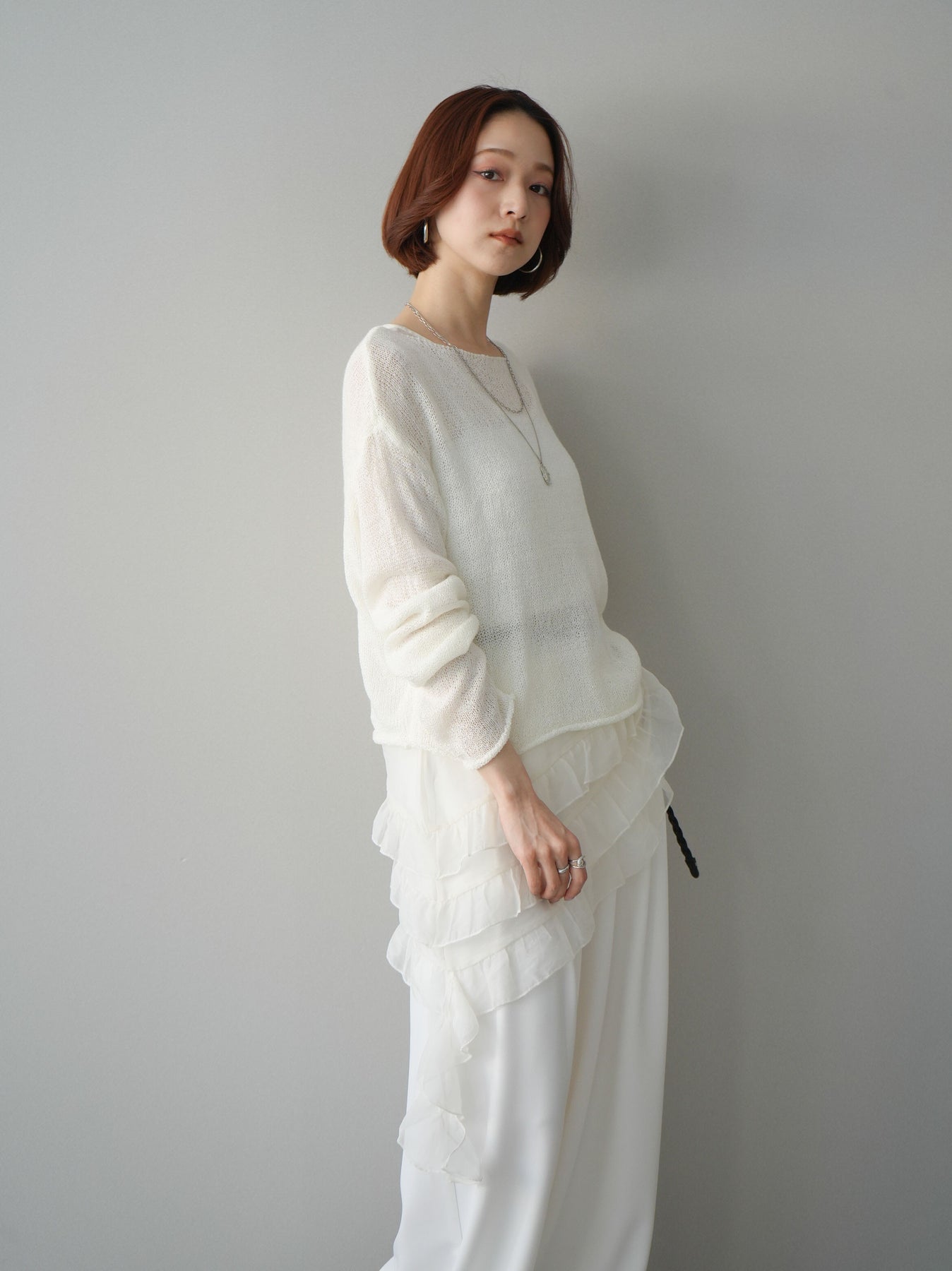 [予約]ラッフルオーガンジータンクトップ&ニットアンサンブル/white