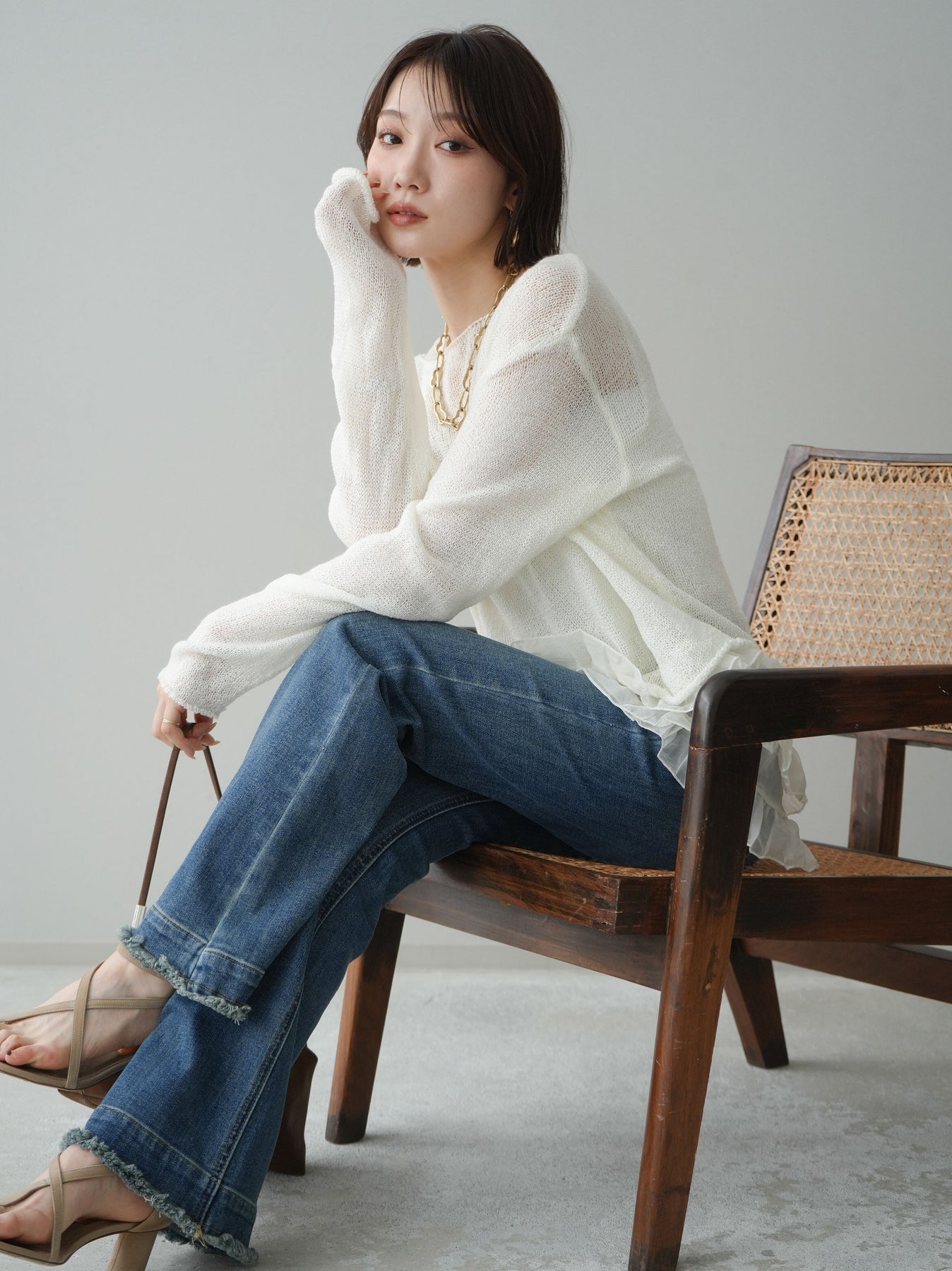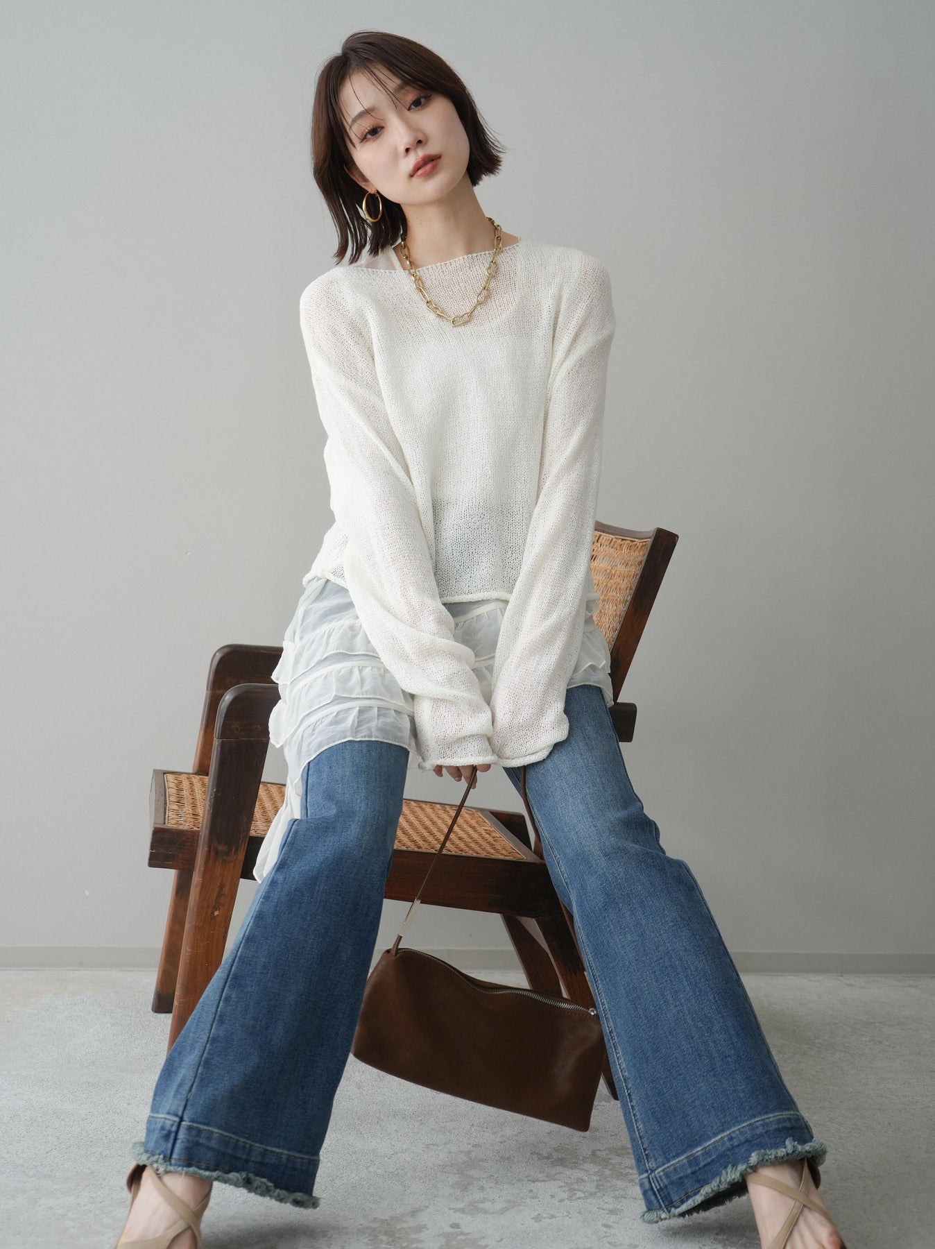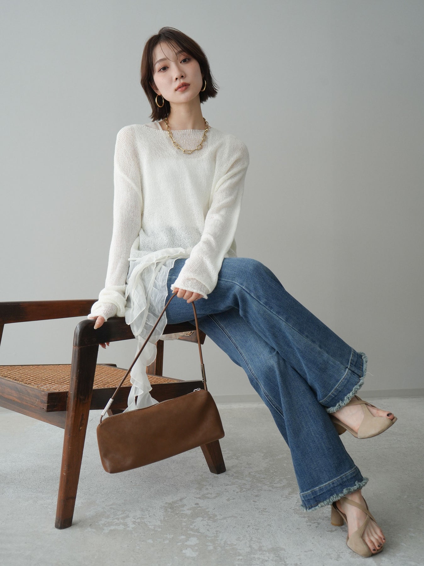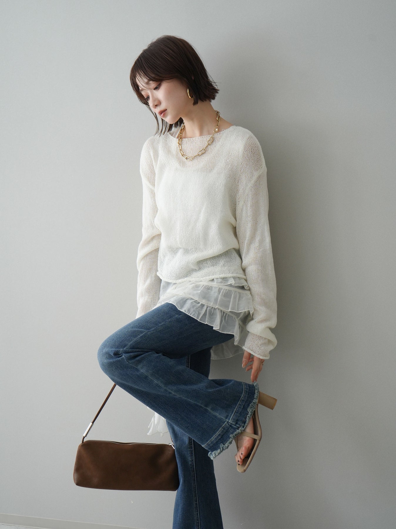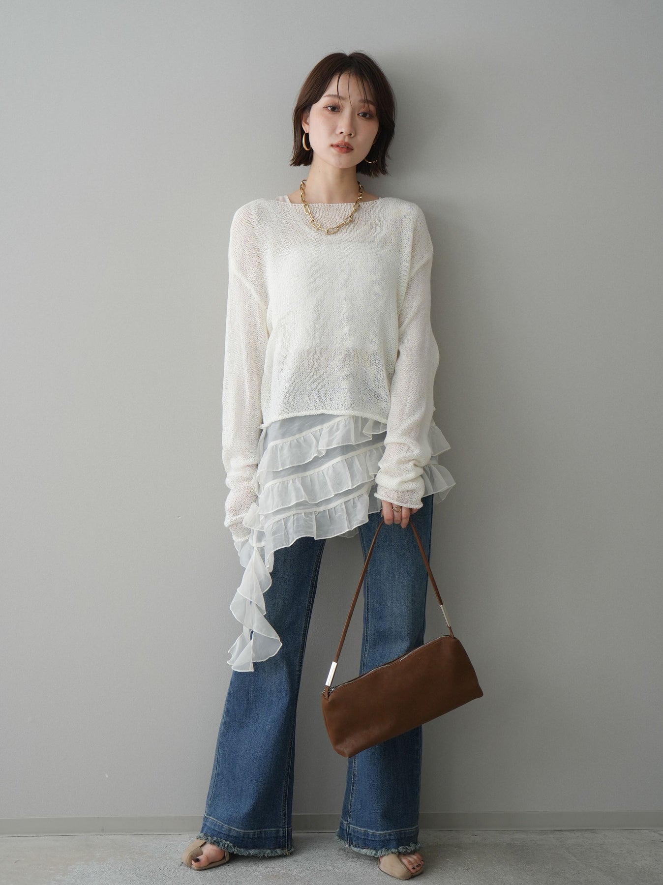 [予約]ラッフルオーガンジータンクトップ&ニットアンサンブル/white