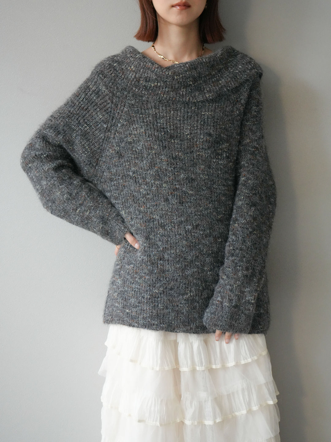 [予約]ミックスヤーンオフショルルーズニットプルオーバー/グレー
