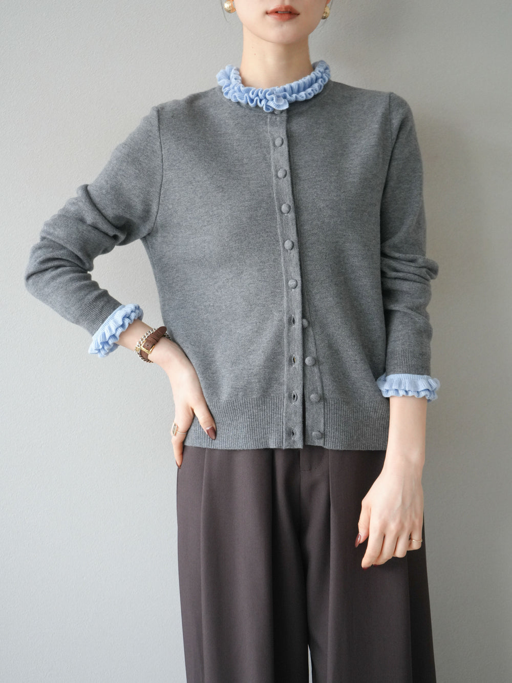[予約]フリルデザインコンパクトニットカーディガン/グレー