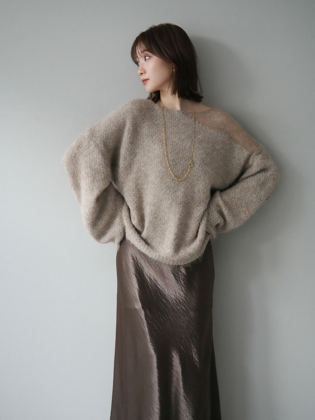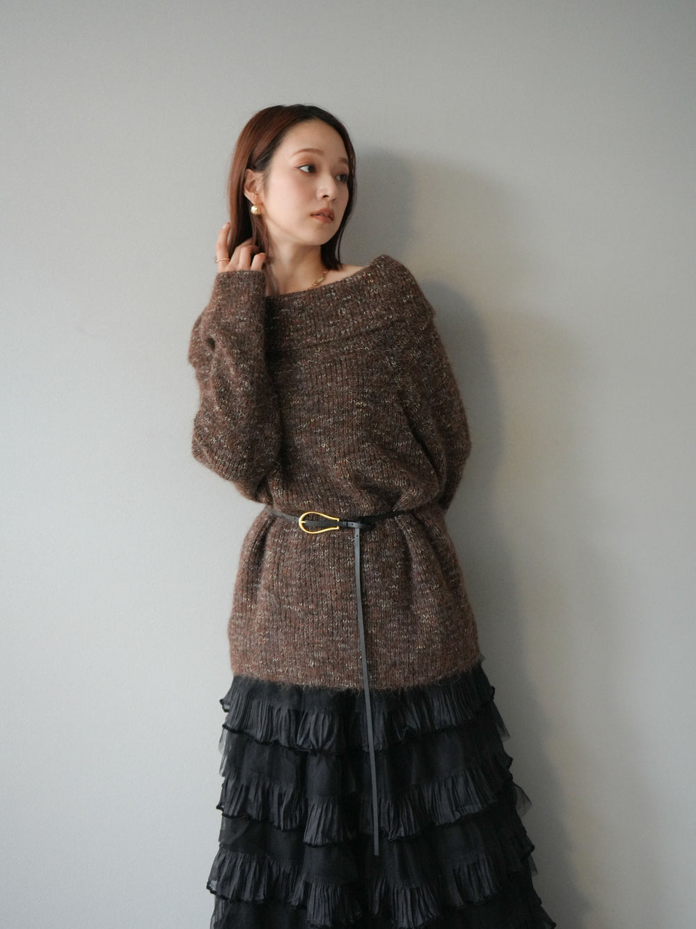 [予約]ミックスヤーンオフショルルーズニットプルオーバー/ブラウン