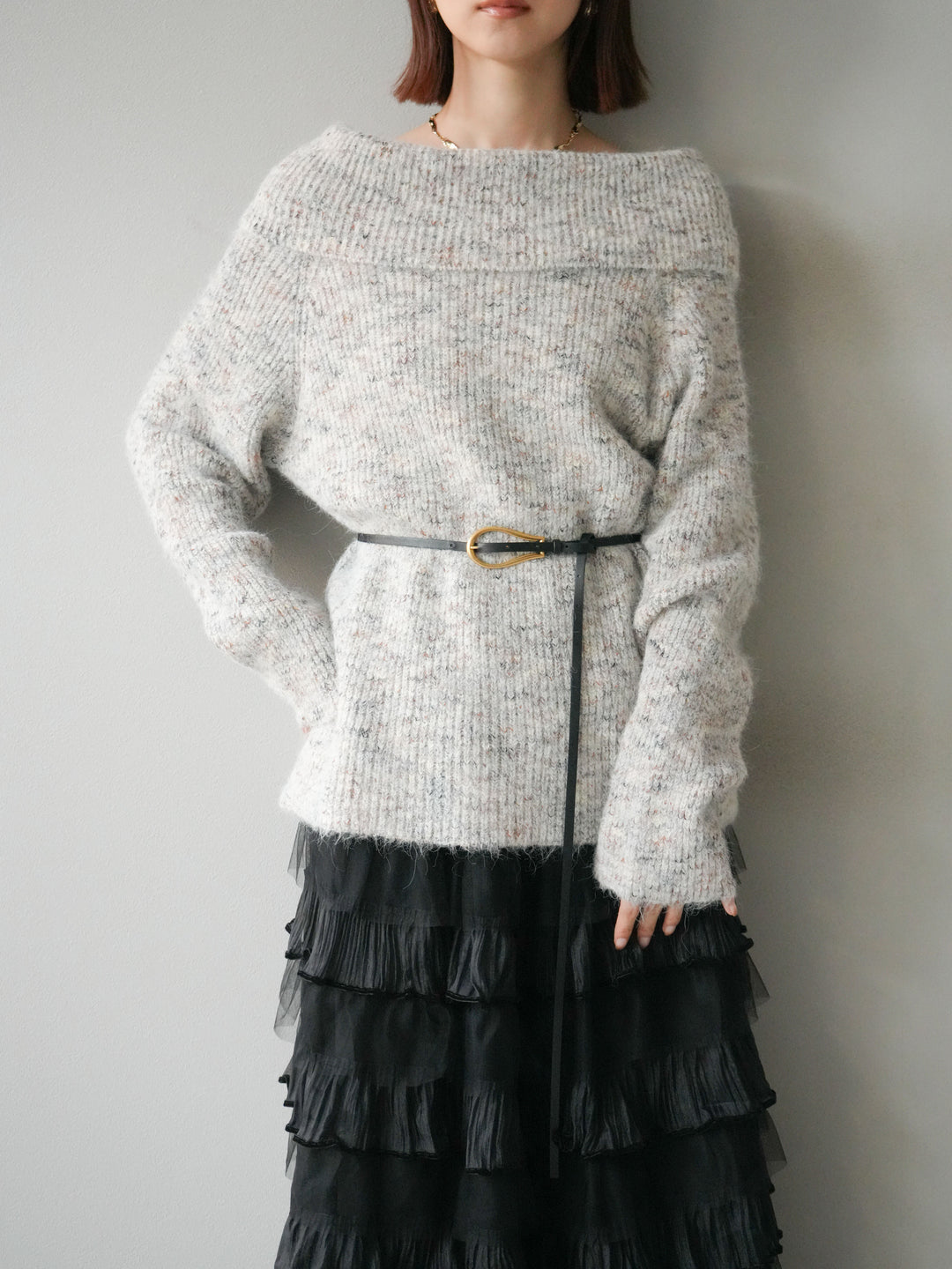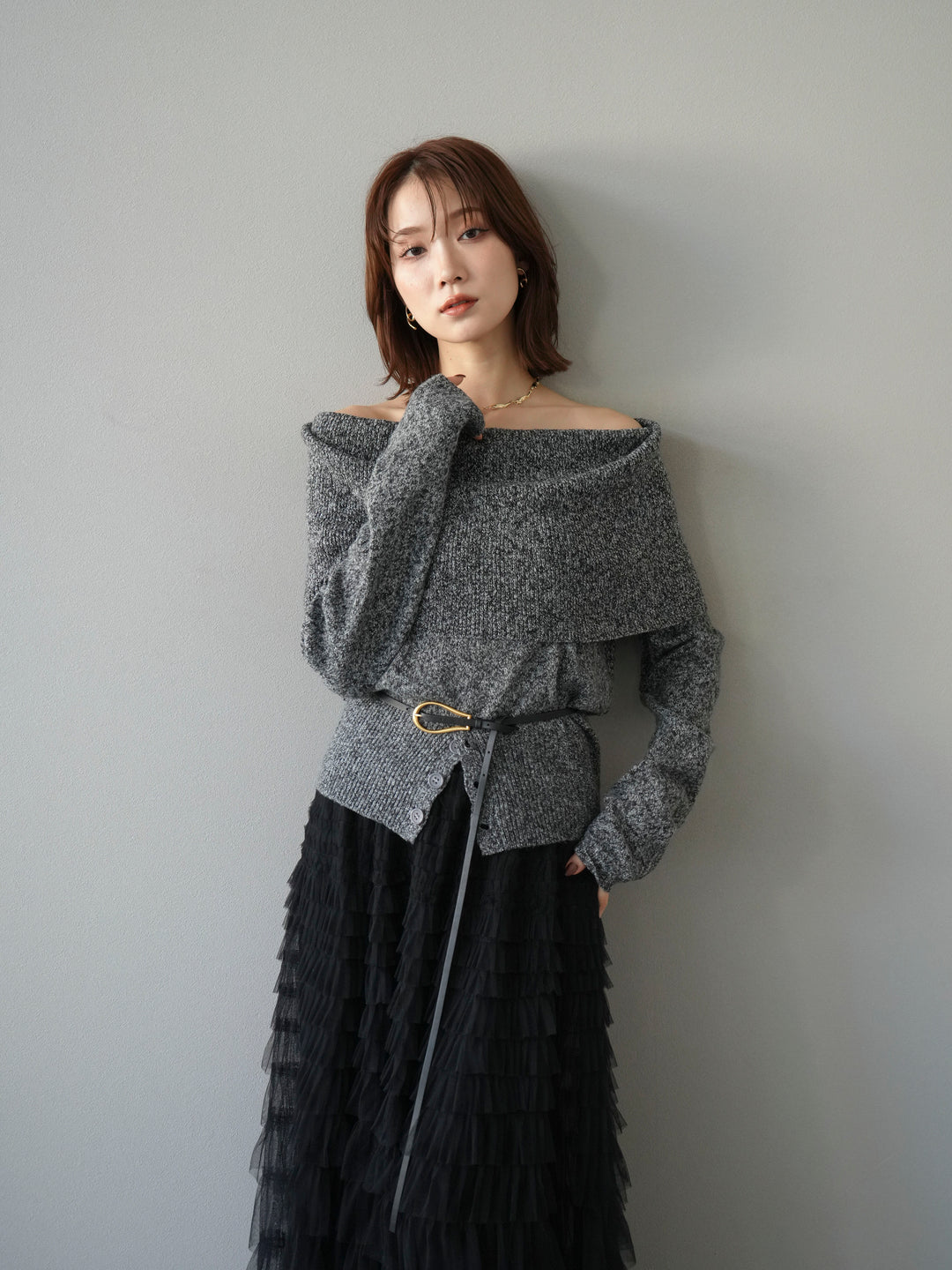 [予約]ミックスヤーンオフショルニットプルオーバー/ブラック