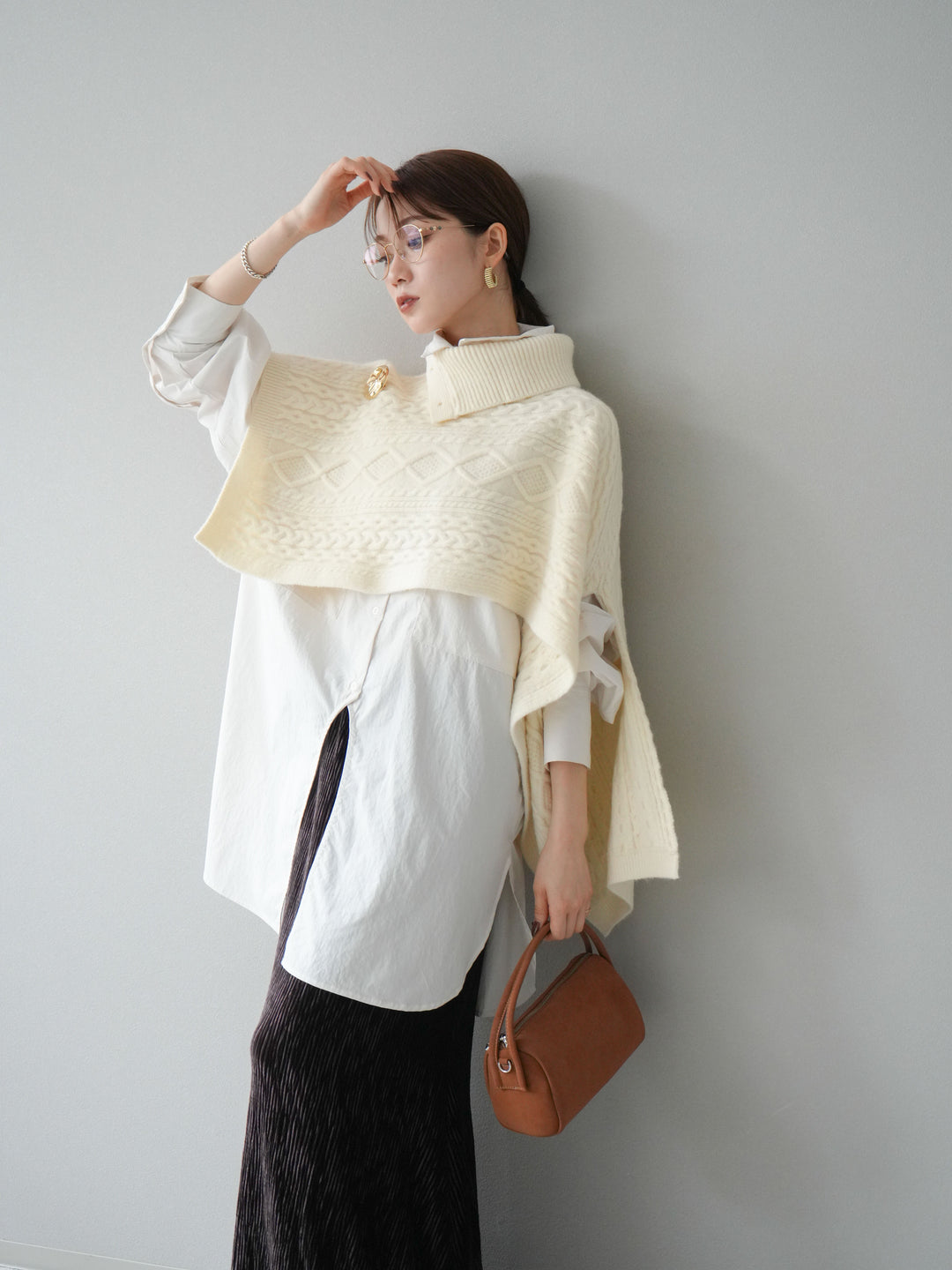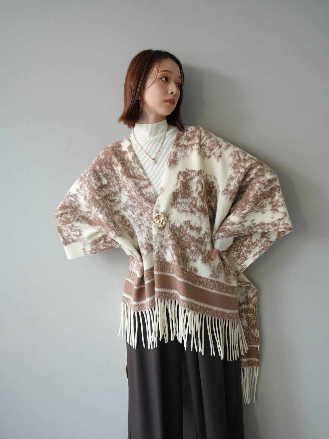 [予約]アブストラクト柄ストールポンチョ/アイボリー