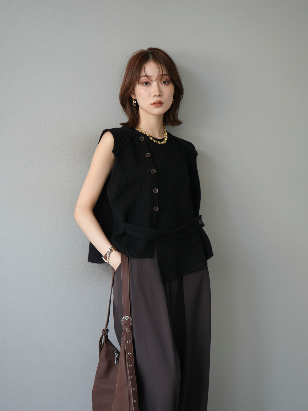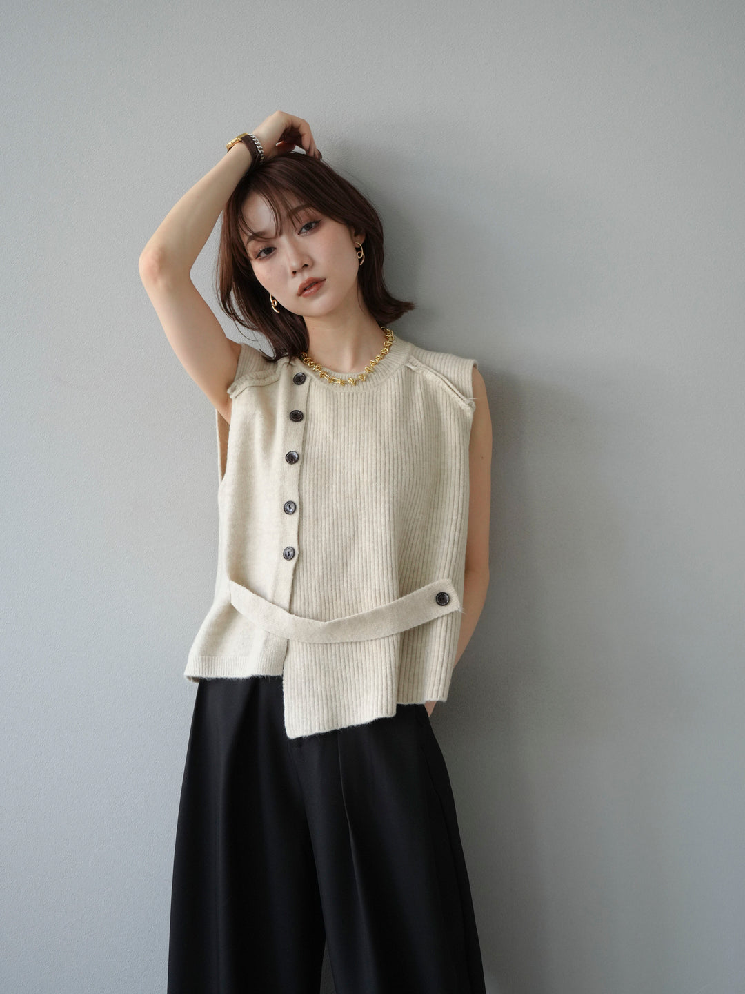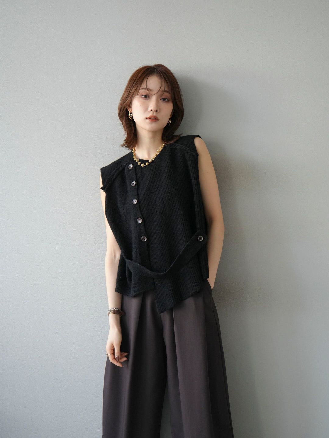 [予約]ゴールドボタンコンパクトニットベスト/ブラック