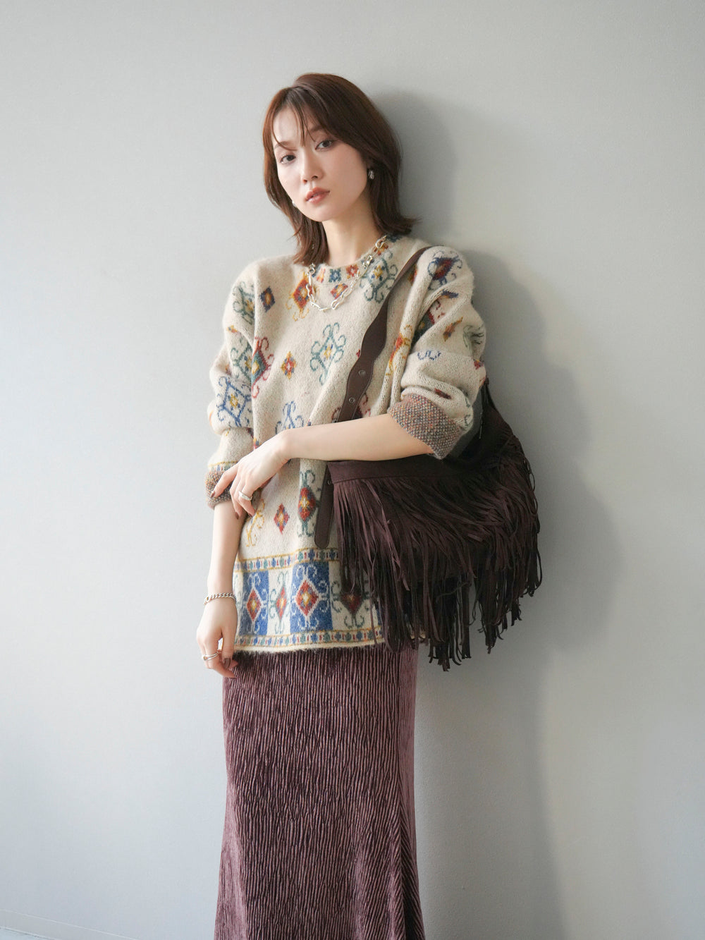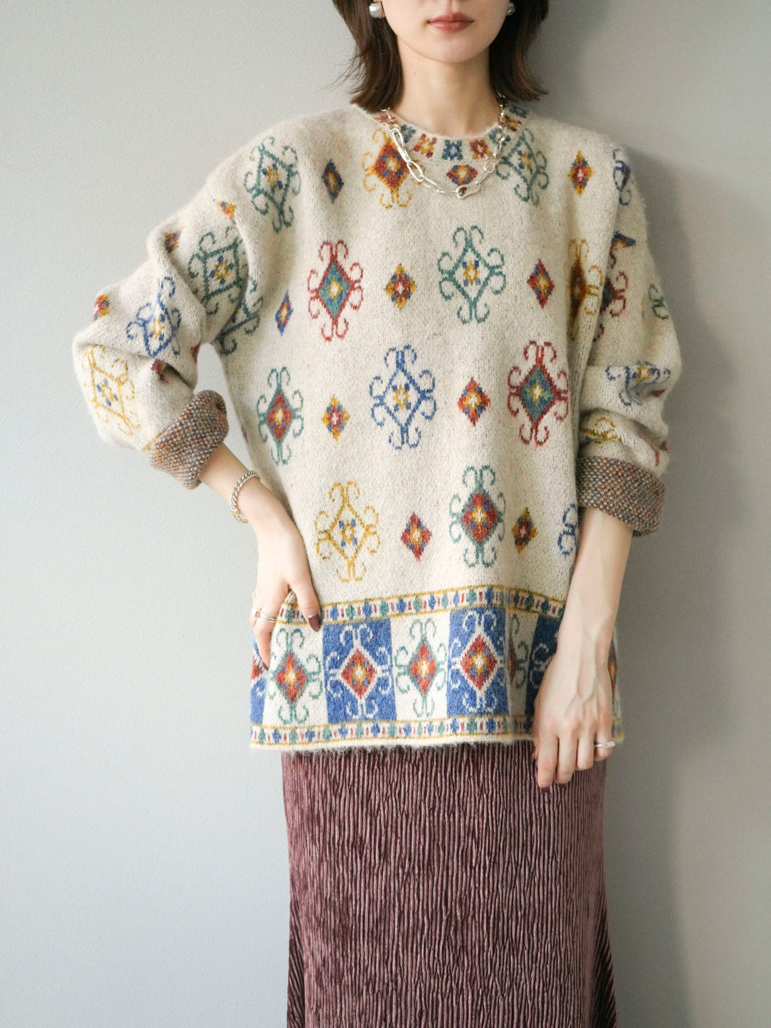 [予約]ヴィンテージ柄オーバーニットプルオーバー/アイボリー
