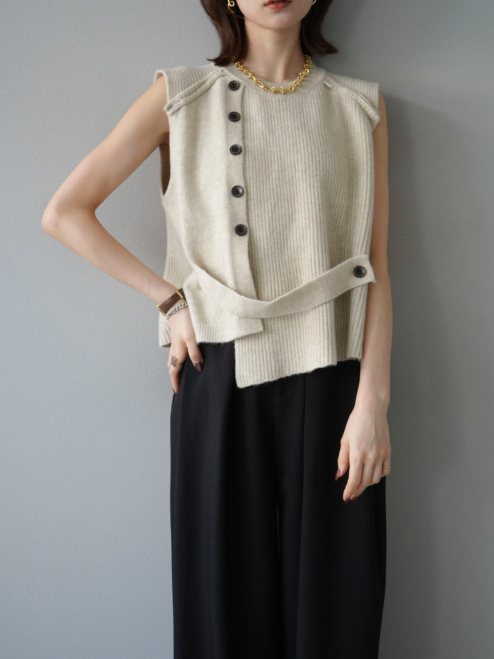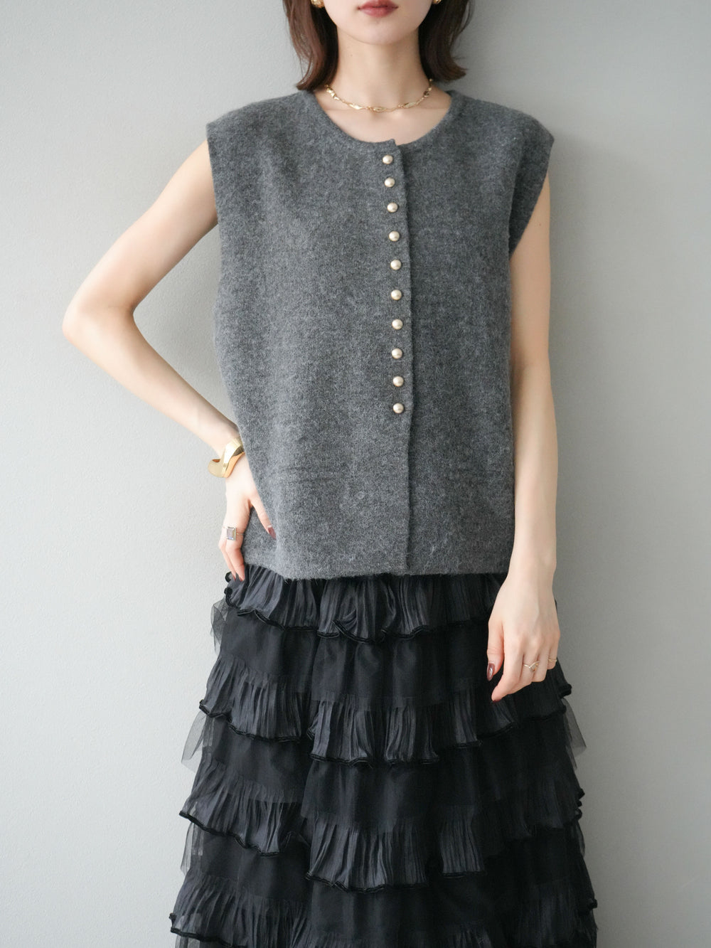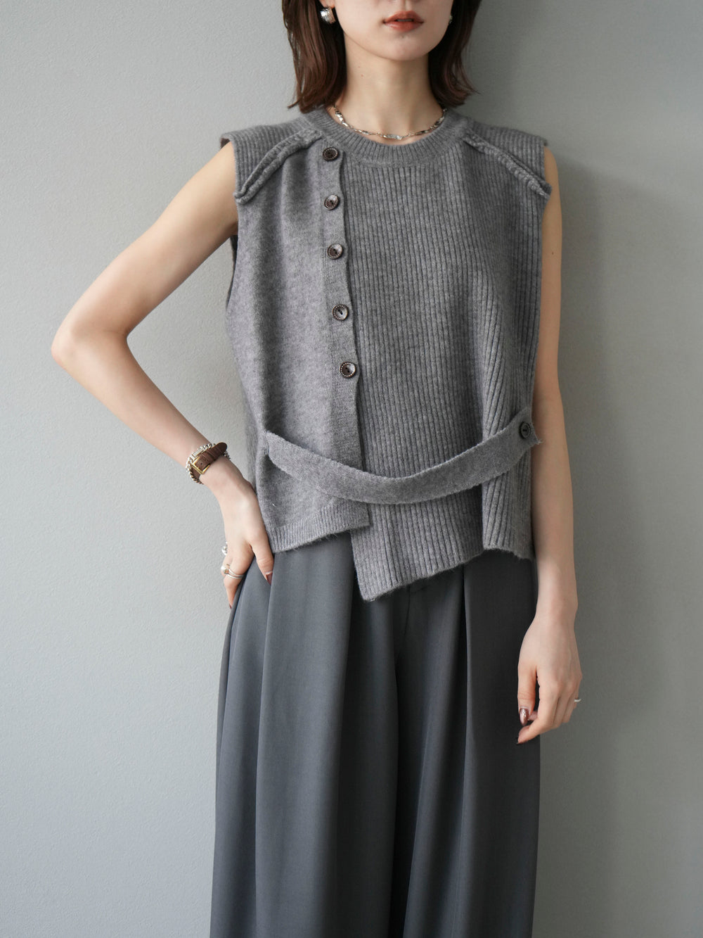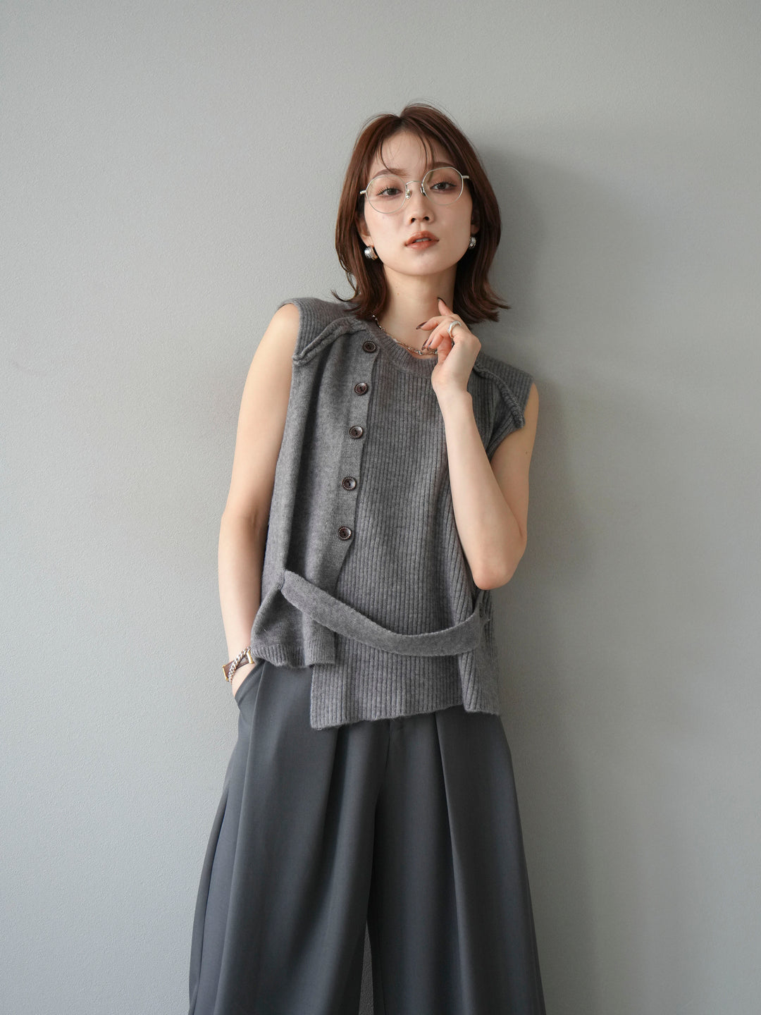 [予約]ゴールドボタンコンパクトニットベスト/ダークグレー