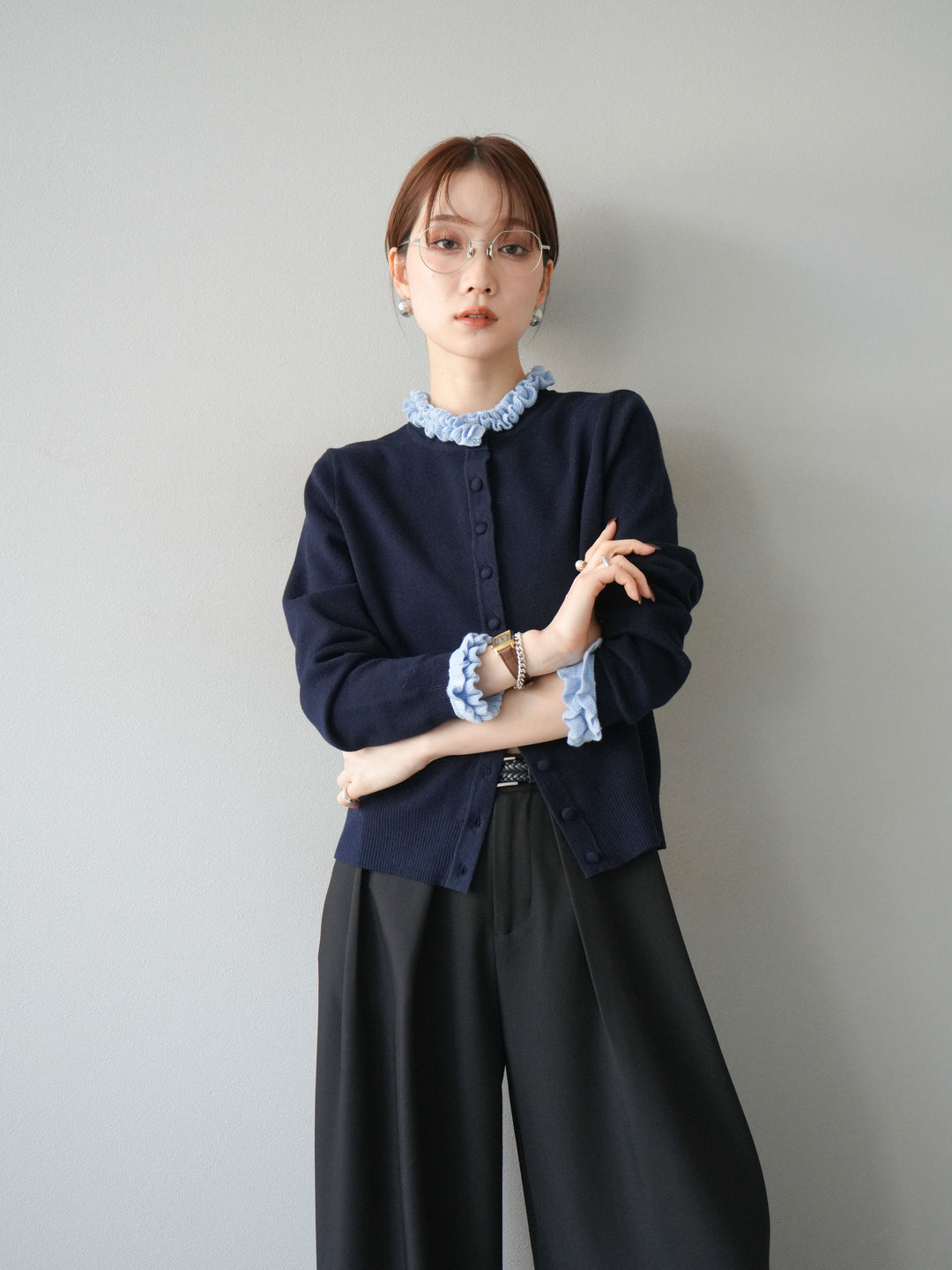 [予約]フリルデザインコンパクトニットカーディガン/ネイビー