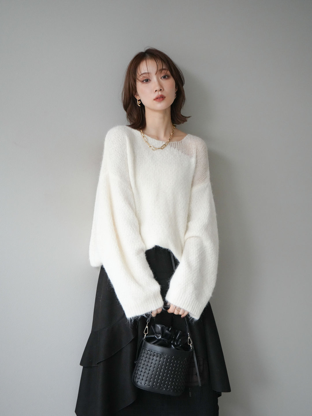 [予約]ネック透かし編みニットプルオーバー/ホワイト