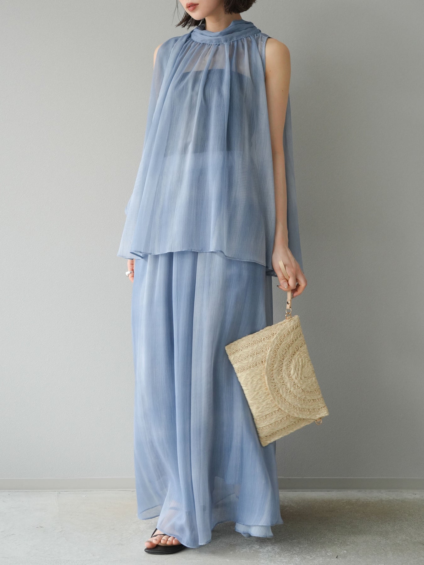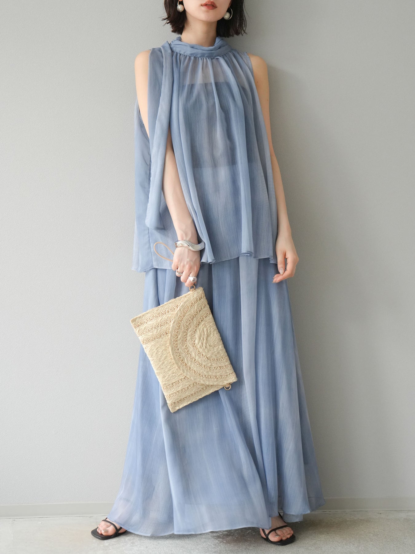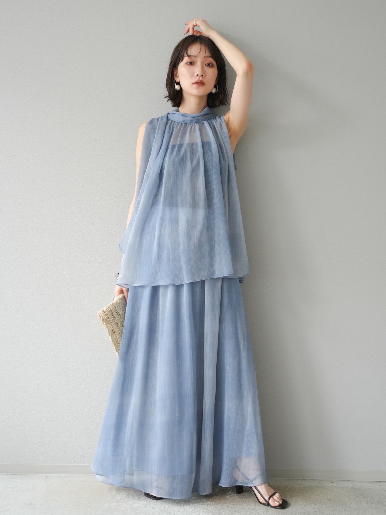 [SET]ニュアンスシアーホルターネックブラウス+ニュアンスシアーフレアスカート(2set)