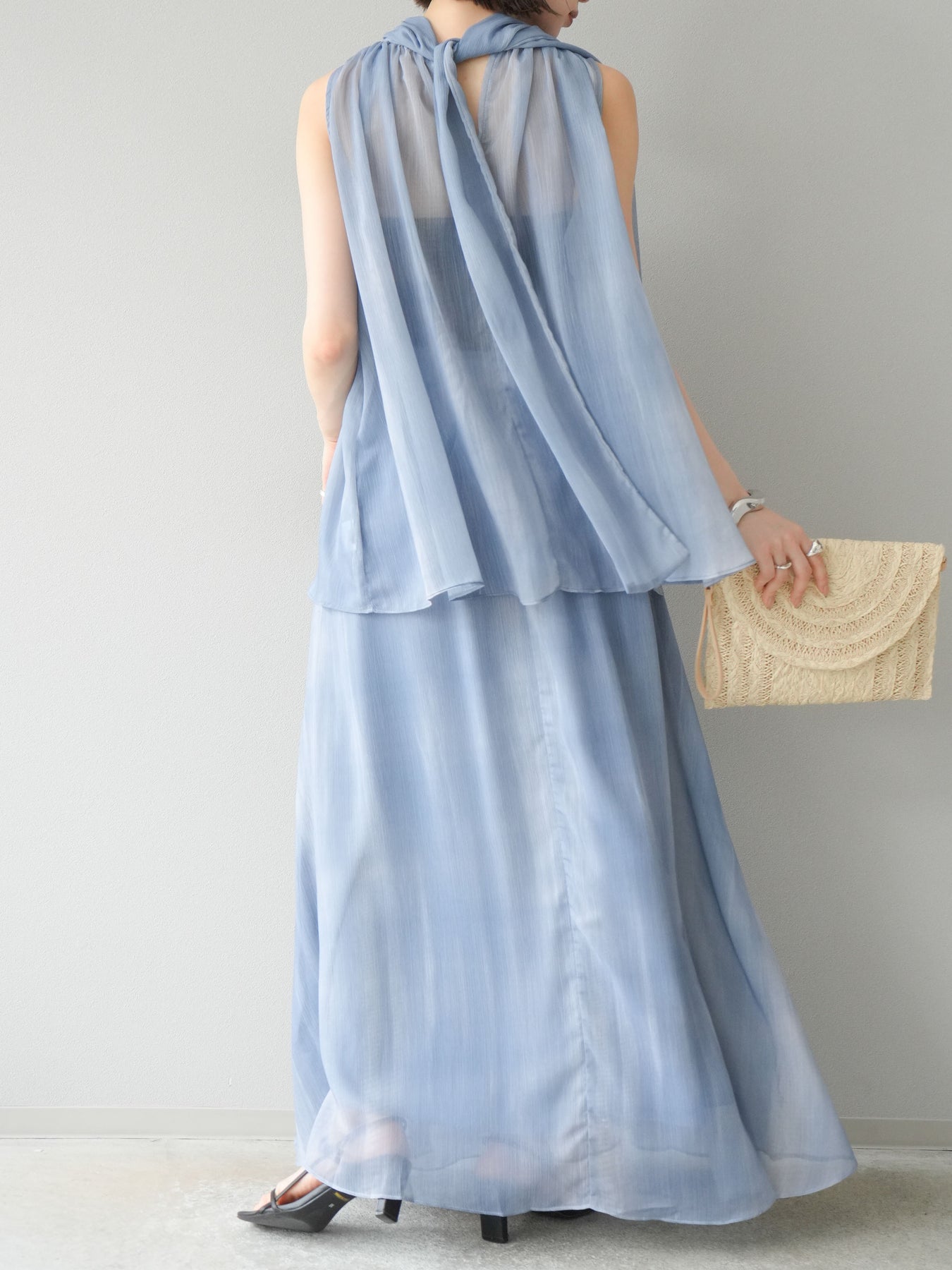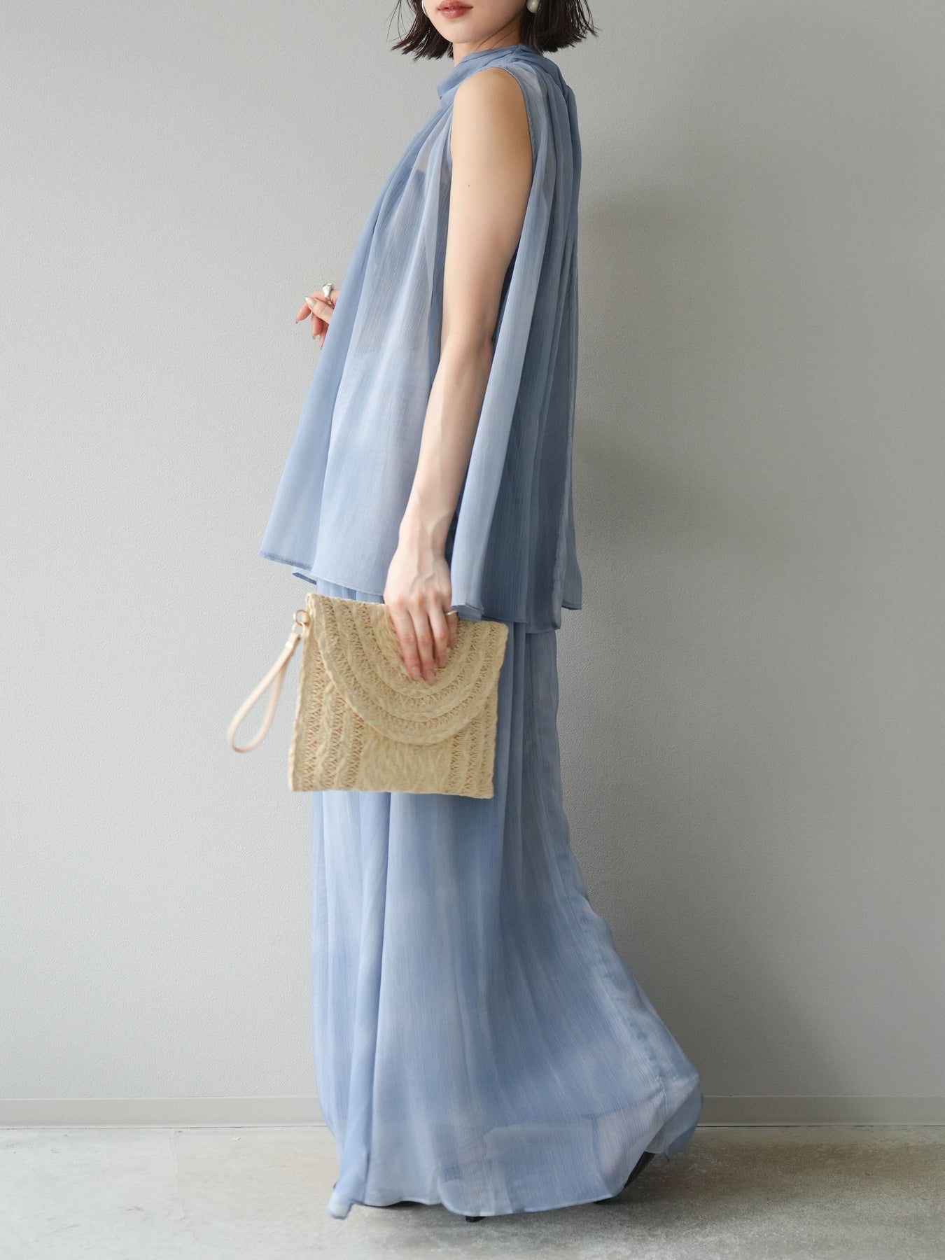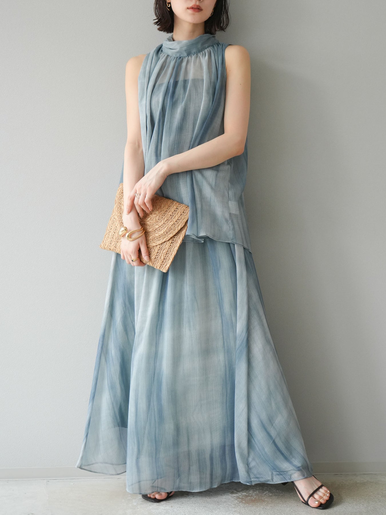 [SET]ニュアンスシアーホルターネックブラウス+ニュアンスシアーフレアスカート(2set)